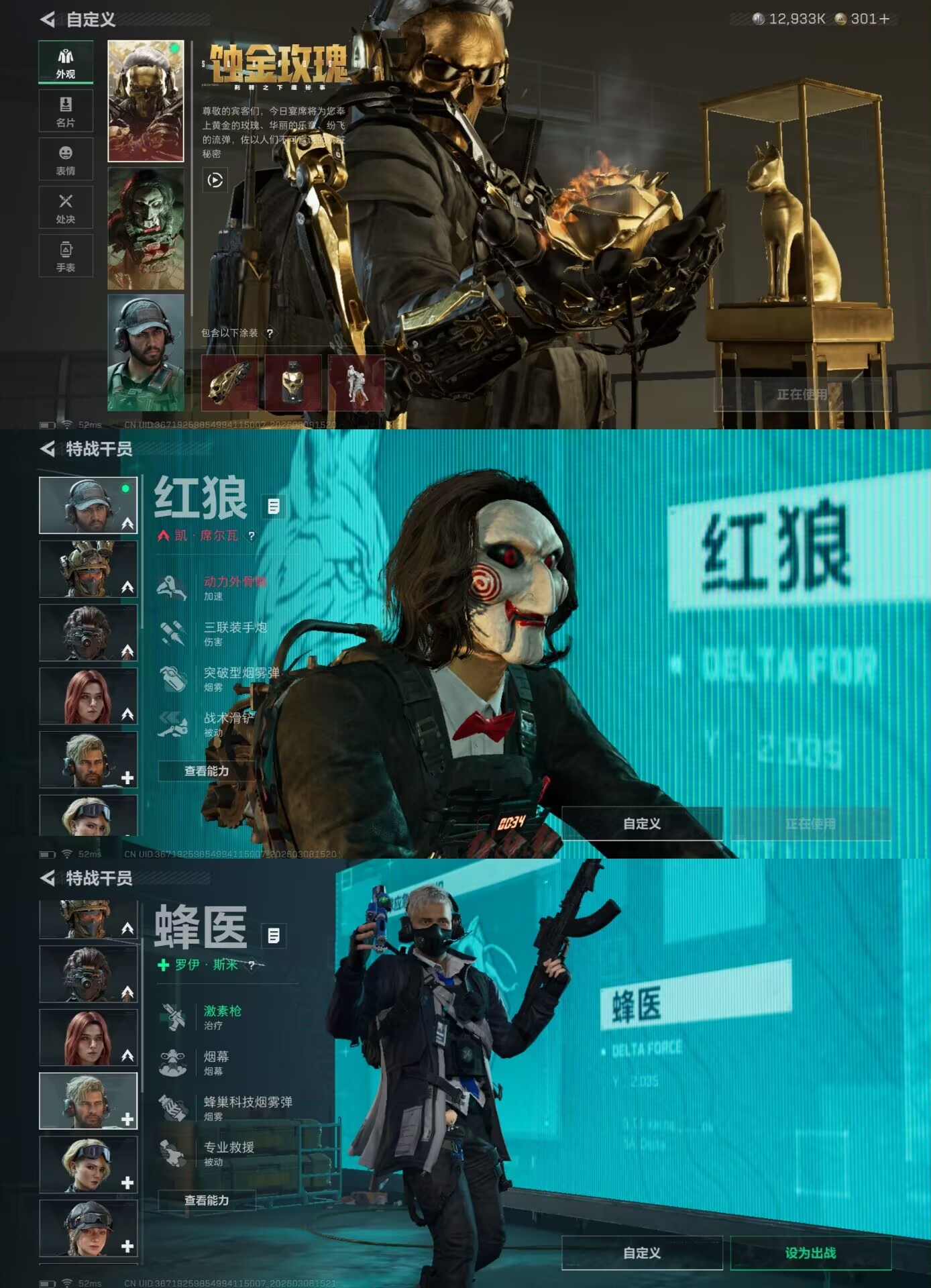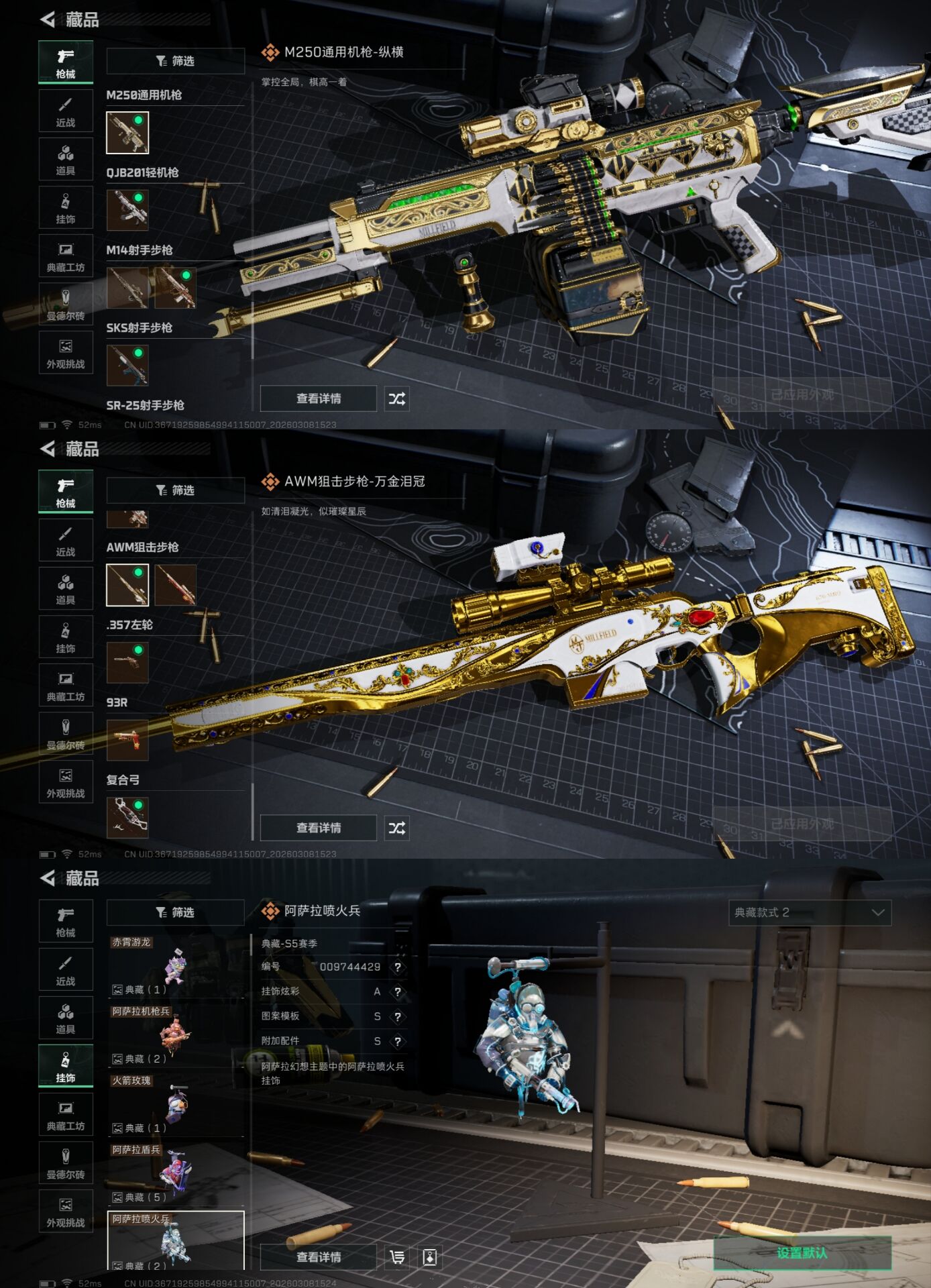 QE5 猛攻号 60级 蚀金玫瑰 炫彩威小龙 处刑者 总资产 61.8M 59发AWM子弹 0违规1太阳 哈夫币:1293W 传说武器35 史诗武器35 武器皮肤251 烽火60级:黑鹰Ⅱ 战场:军士长Ⅱ【干员皮肤6】 红狼蚀金玫瑰 露娜黑天际线 蜂医送葬人无题密令 红狼电锯惊魂 乌鲁鲁荒原猎手 露娜金牌射手 【安全箱】高级安全箱 【特勤处等级】 仓库LV.7 靶场LV.6 训练中心LV.6