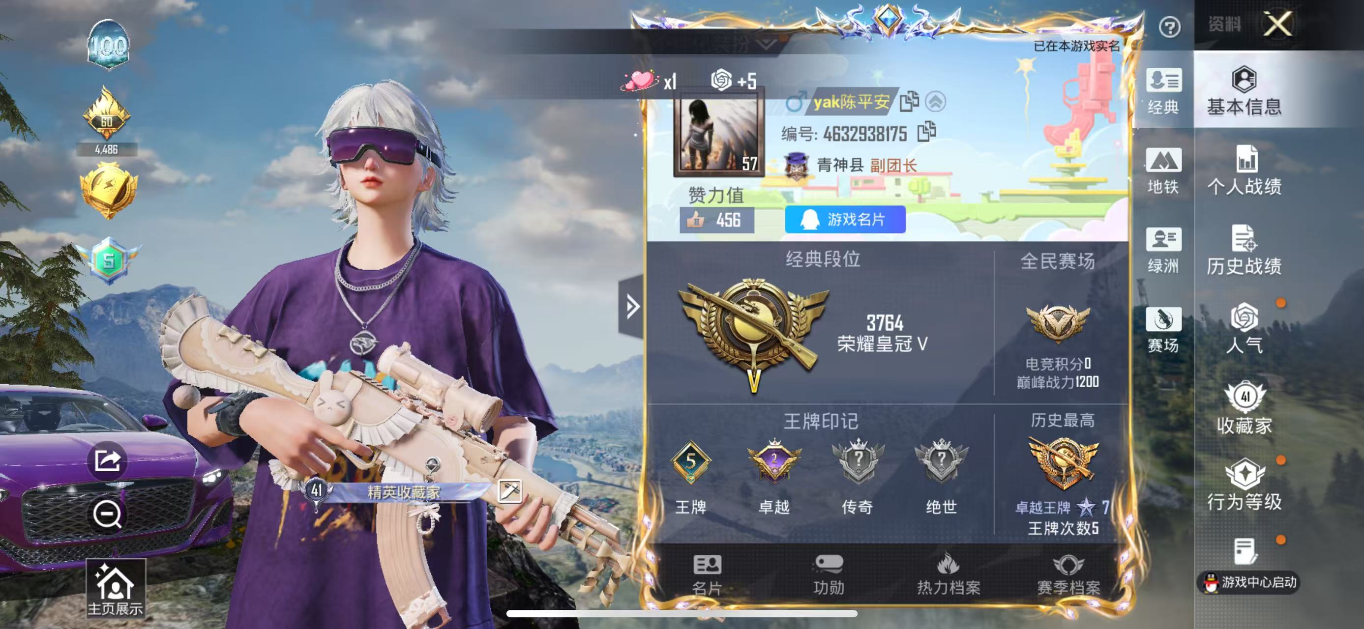 5王牌印记-1粉装-6特效枪-1载具-29405热力值-66套装-102枪皮-2卓越印记