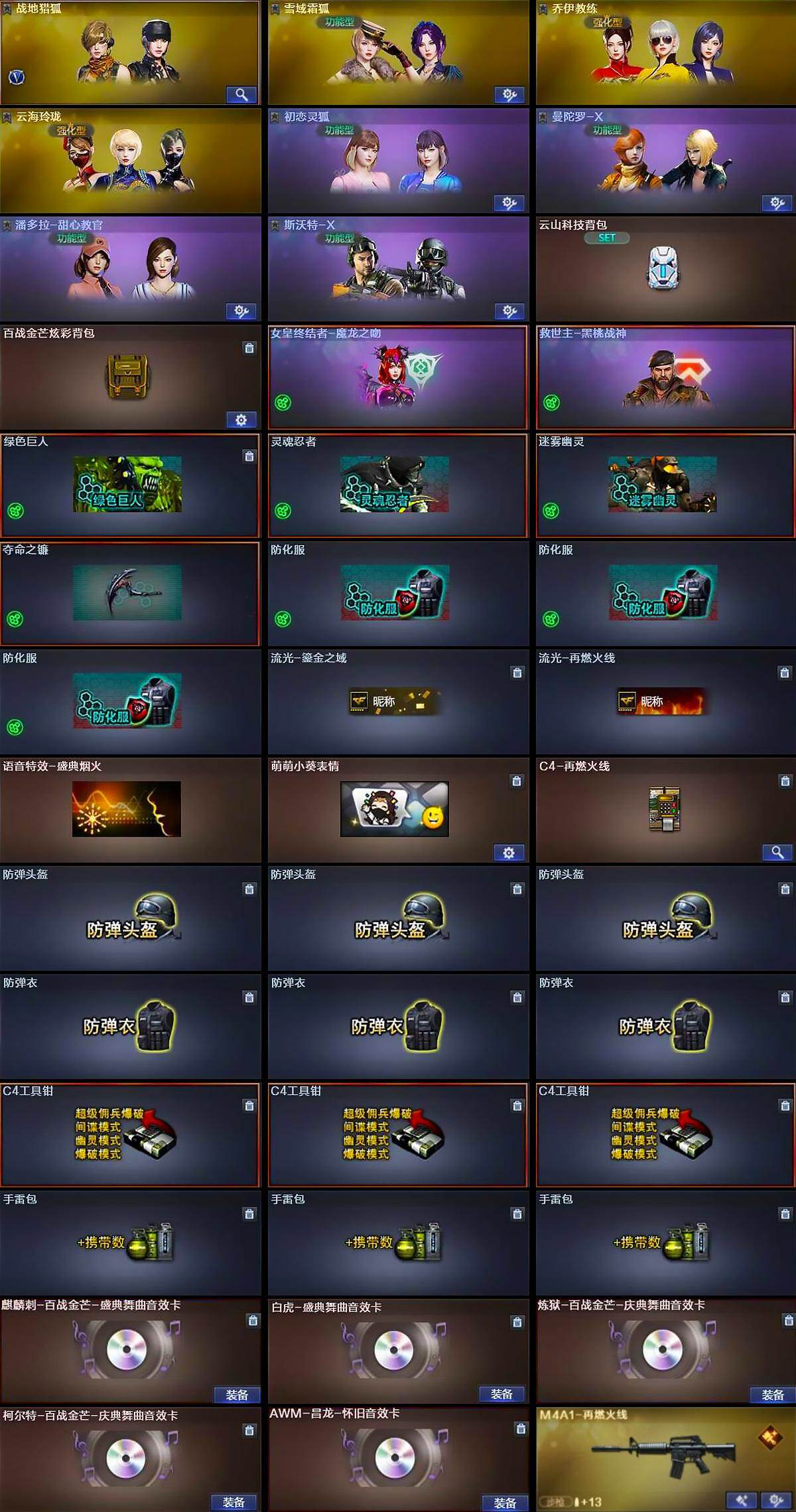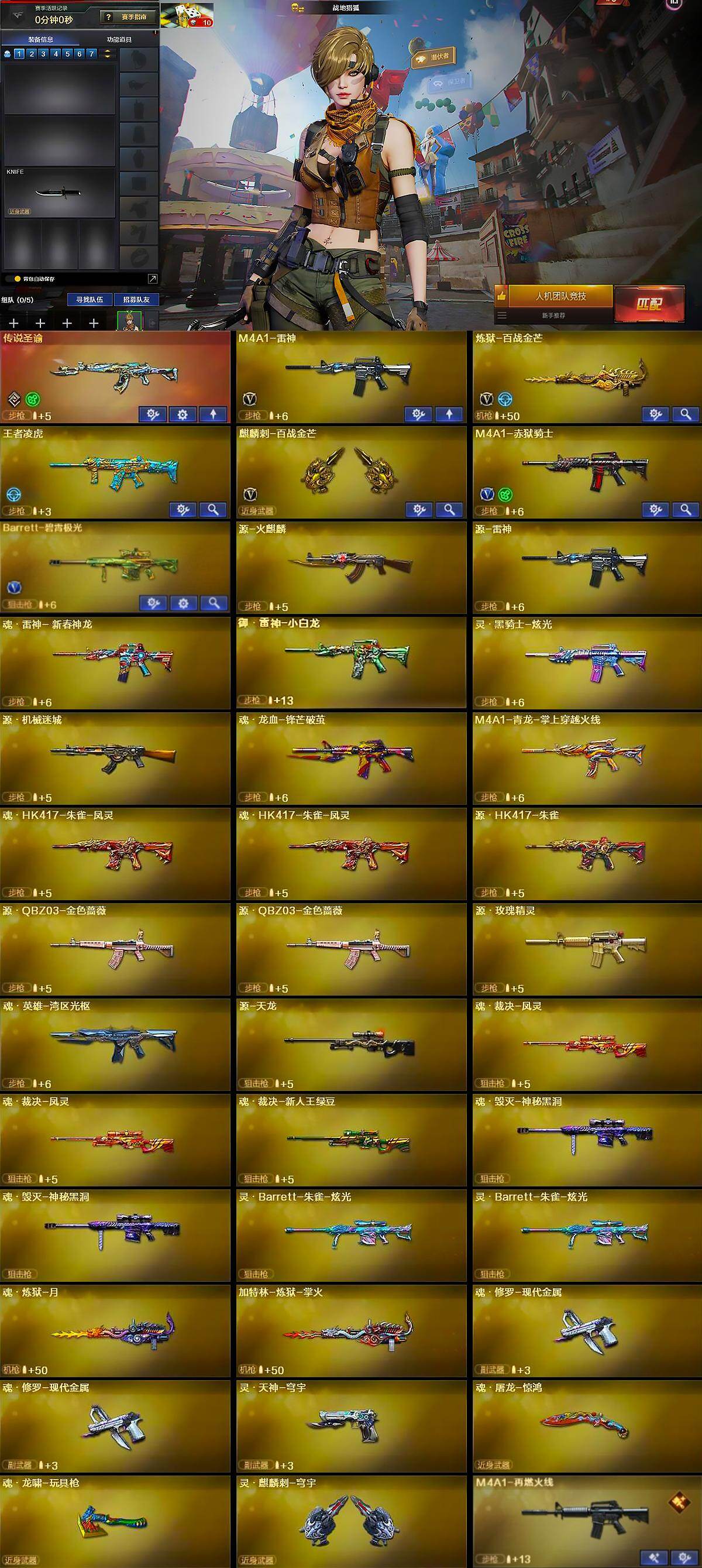 【ky5490】四川一区-13V-1王者武器数-0炫金武器数【传说武器】:传说圣谕【热门武器】:传说圣谕【王者炫金武器】:王者凌虎【音效卡】:麒麟刺-百战金芒-盛典舞曲音效卡,白虎-盛典舞曲音效卡,炼狱-百战金芒-庆典舞曲音效卡,柯尔特-百战金芒-庆典舞曲音效卡,AWM-昌龙-怀旧音效卡【皮肤】:M4A1-再燃火线,轻型军用手斧-再燃火线【角色】:战地猎狐,雪域霜狐,乔伊教练,云海玲珑,初恋灵狐,曼陀罗-X,潘多拉-甜心教官,斯沃特-X,智影【英雄级武器】:M4A1-雷神,炼狱-百战金芒,麒麟刺