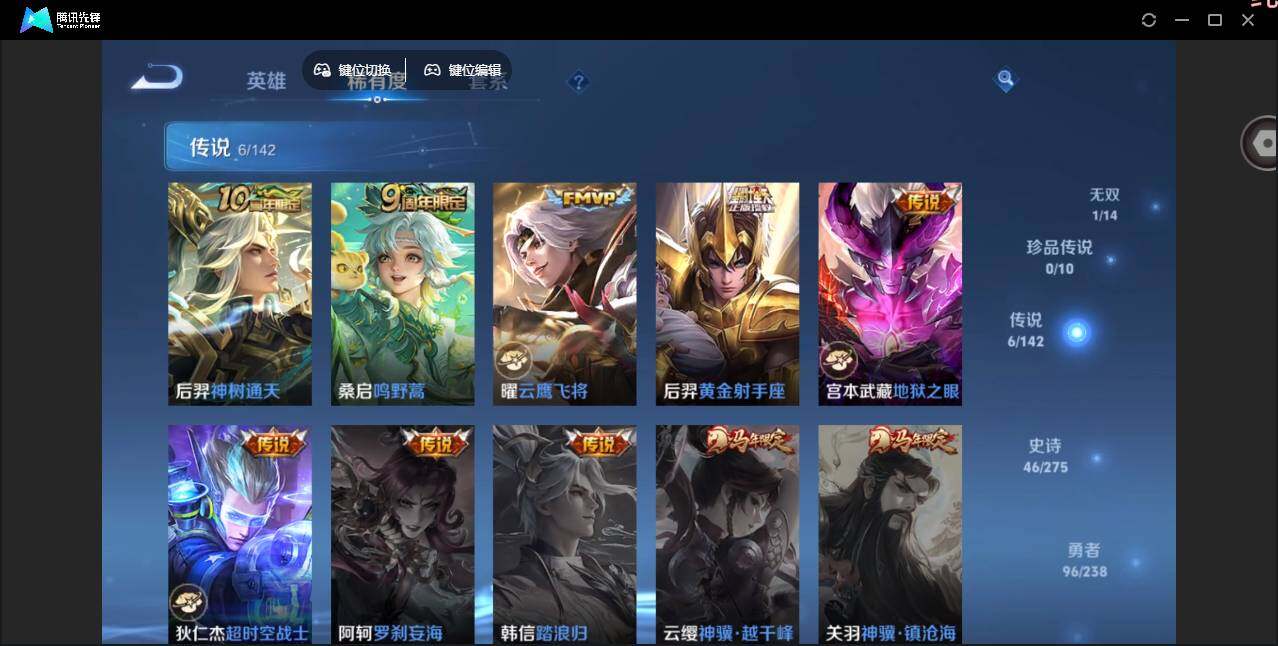 【传说皮肤】:后羿神树通天,桑启鸣野蒿,曜云鹰飞将,后羿黄金射手座,宫本武藏地狱之眼,狄仁杰超时空战士