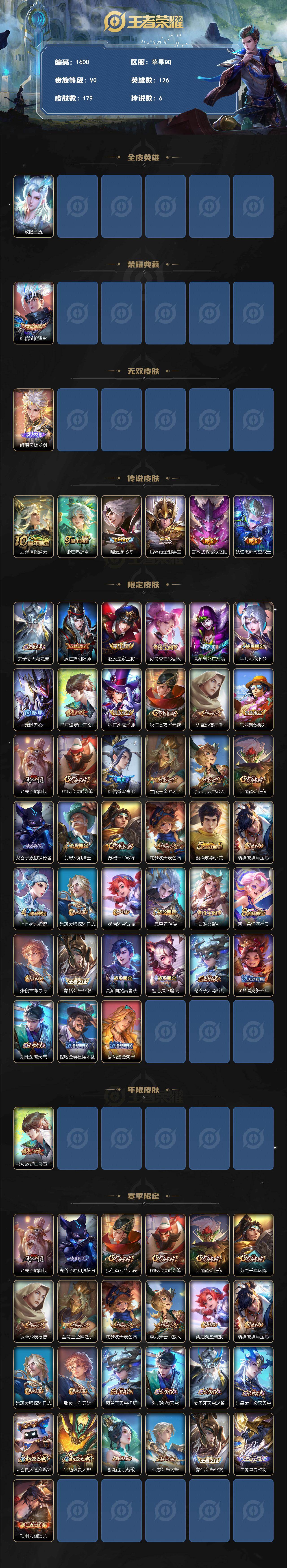 2618468 王者荣耀账号 苹果Q-V6-至尊星耀III段位-126英雄-179皮肤-1典藏皮肤-1无双-6传说-45史诗
