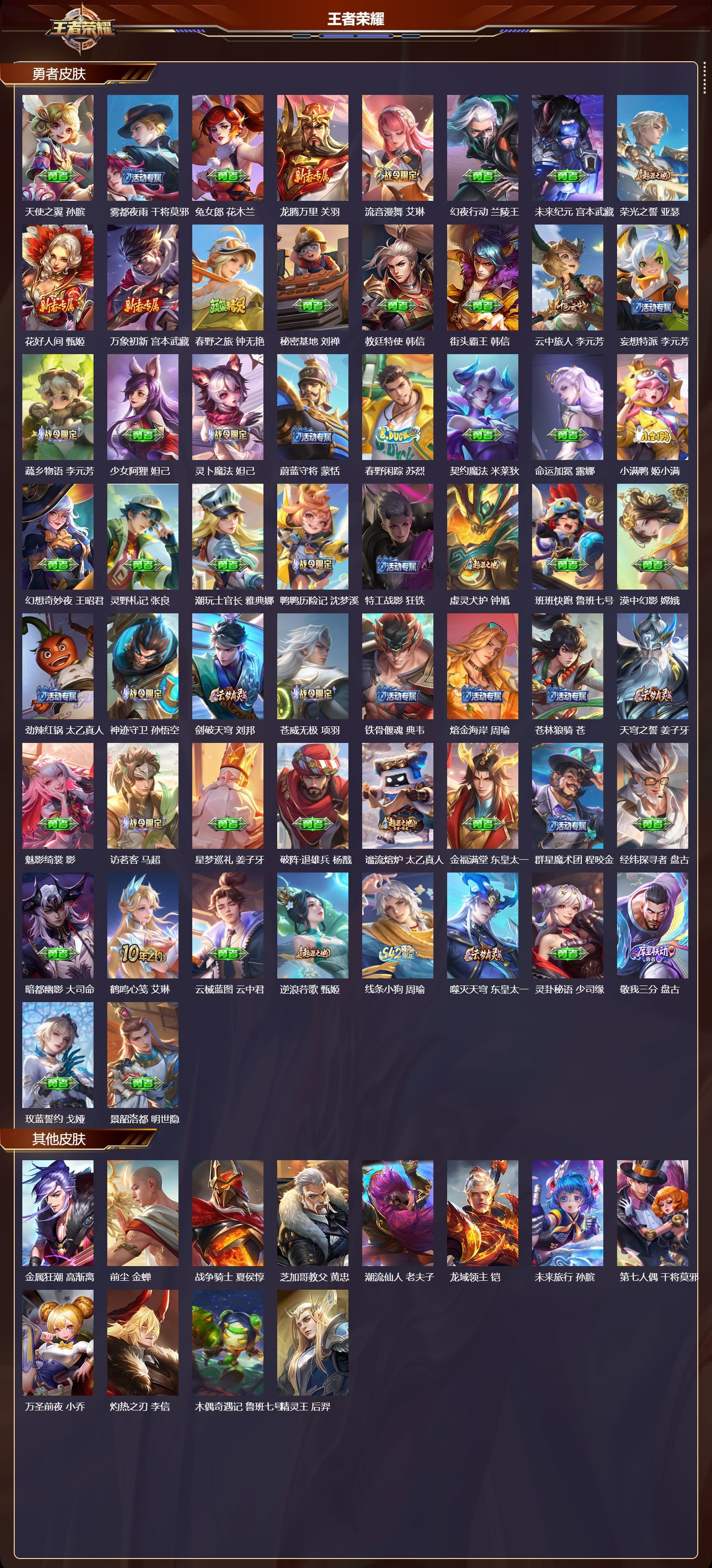 苹果QQ/至尊星耀/232皮肤/127英雄/1典藏/0珍品无双/0无双/3珍品传说/10传说/69史