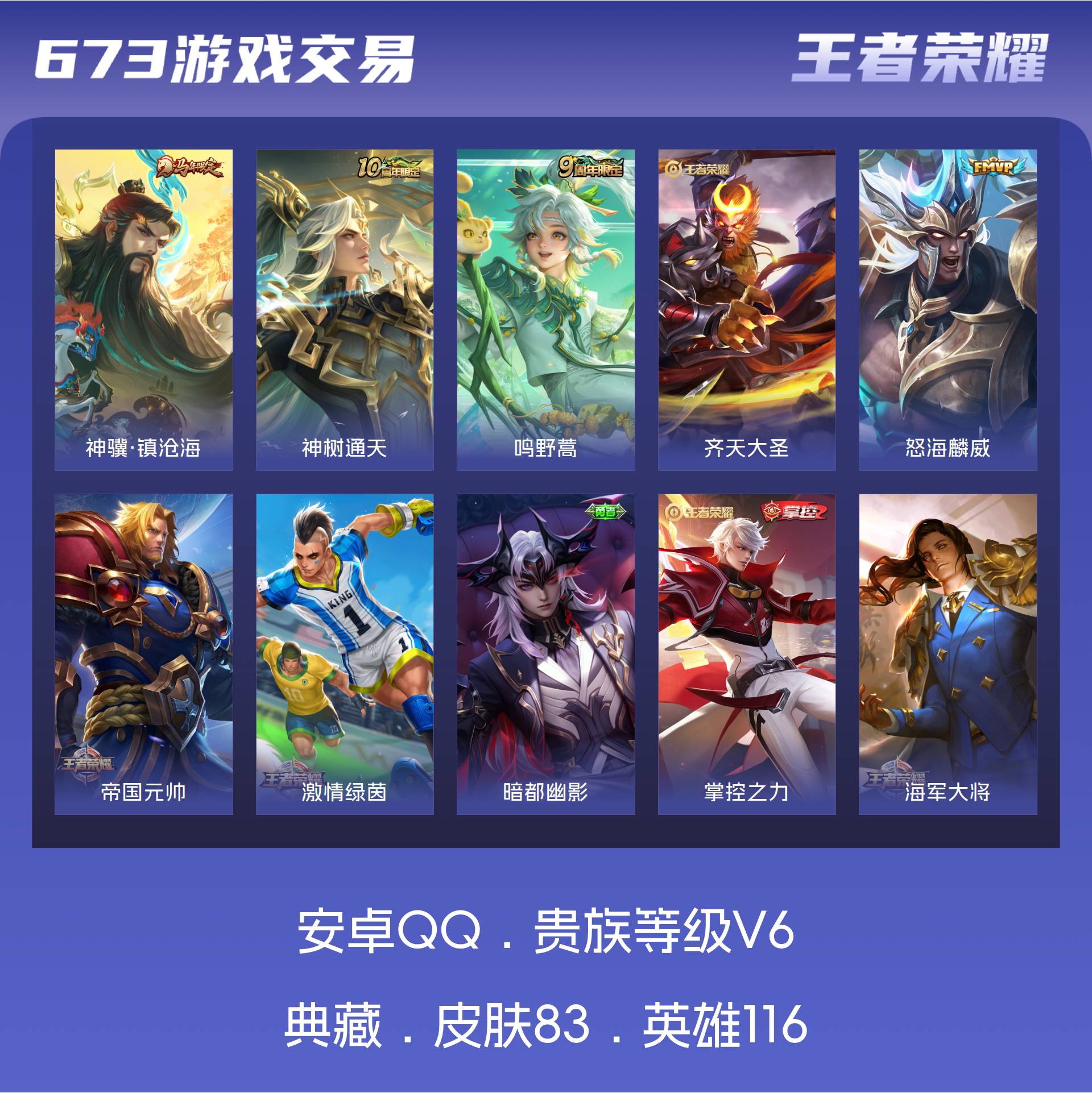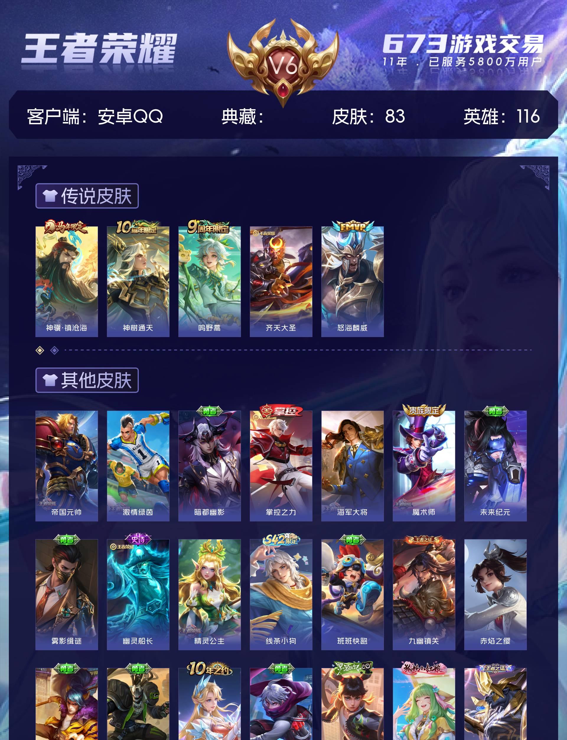 V6 皮肤83 英雄116 荣耀王者 星传说1 传说5
