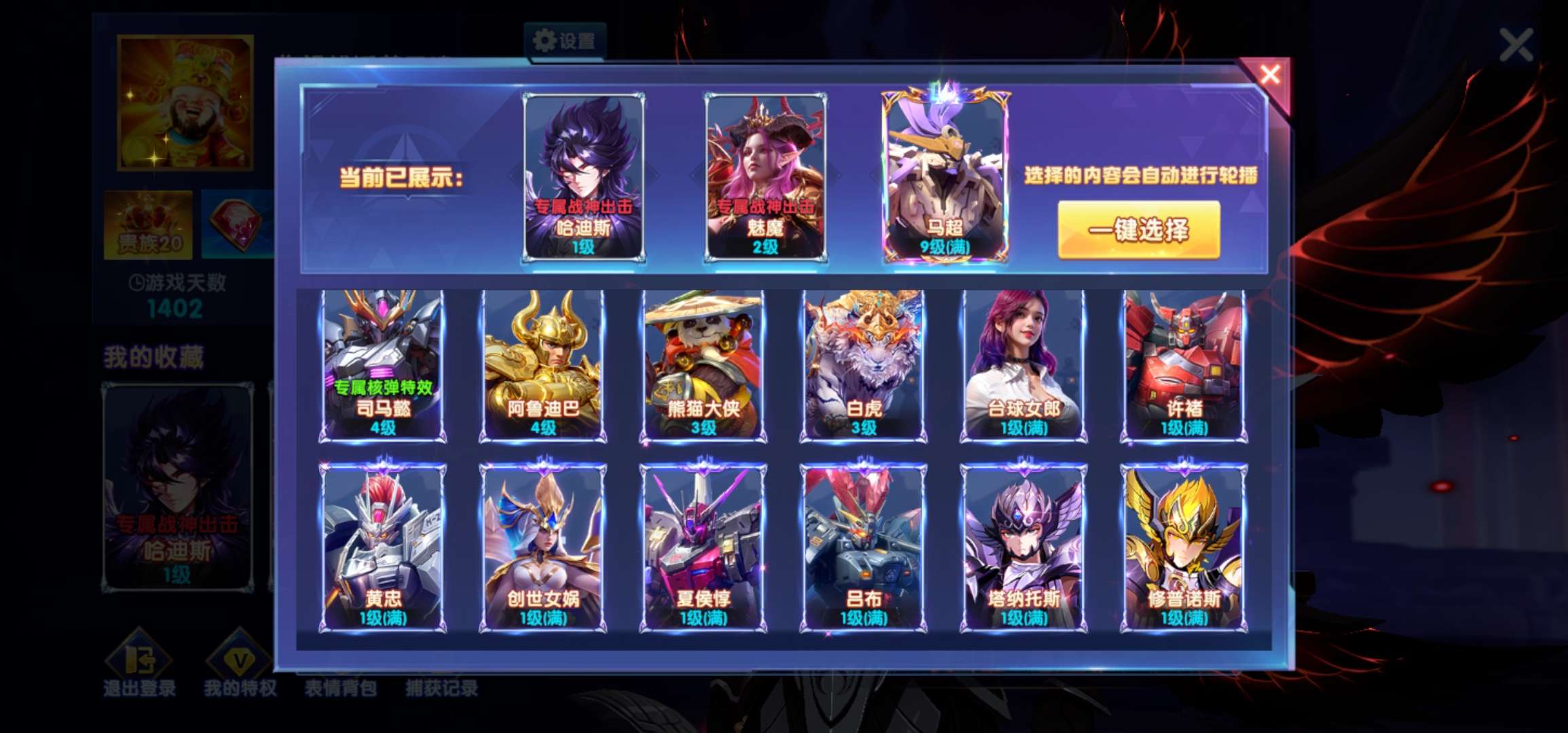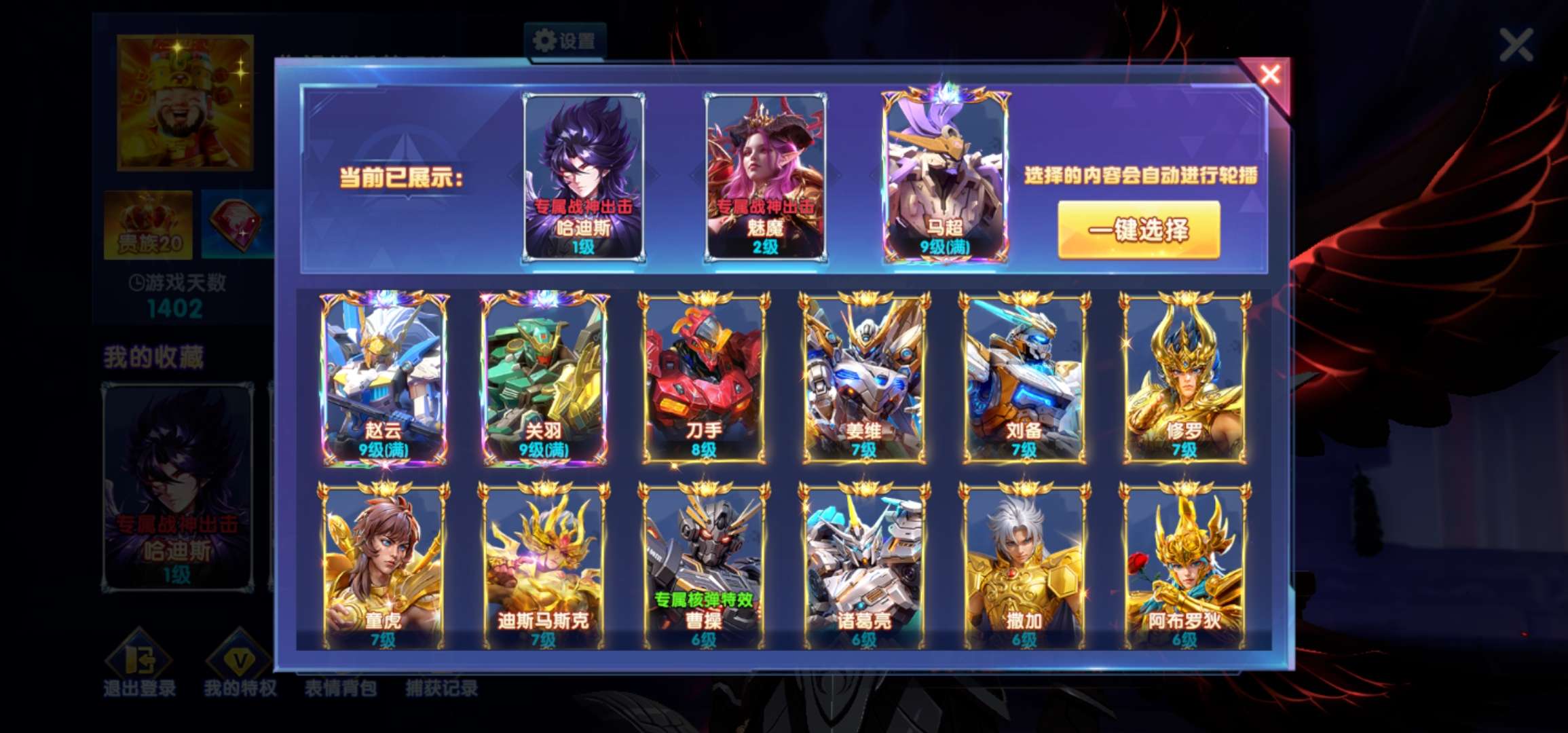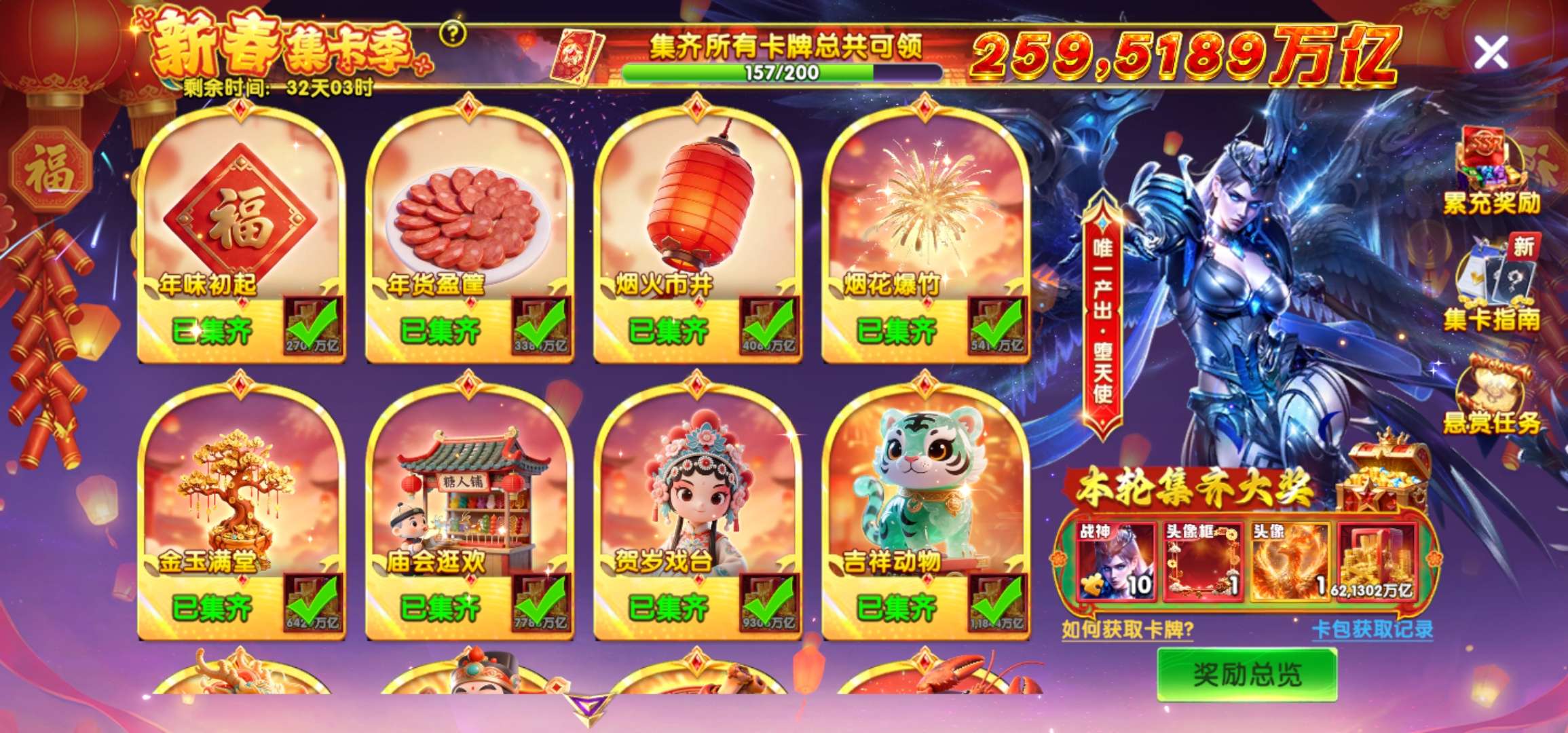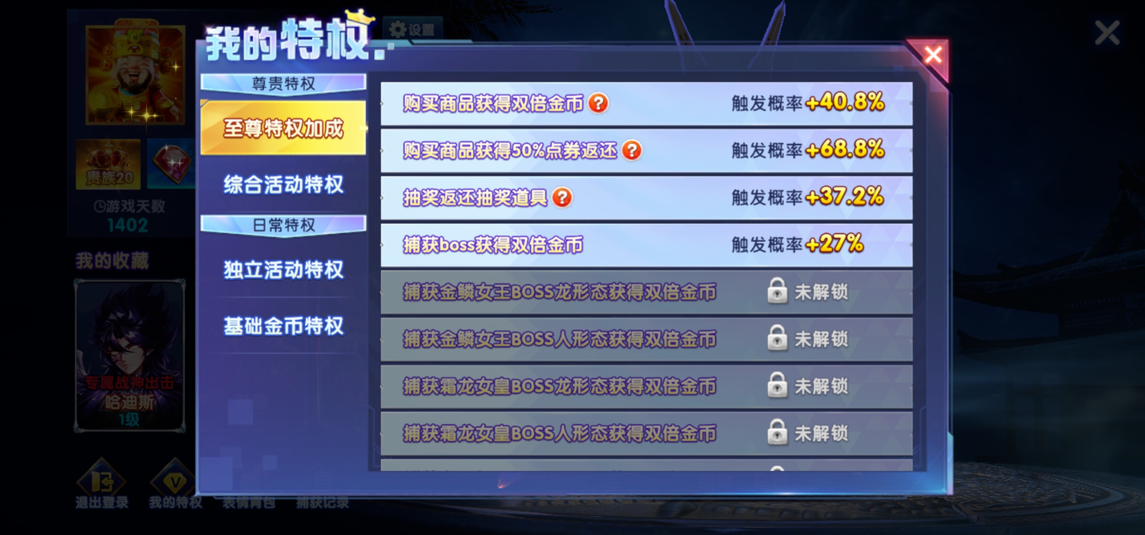 炼金炉6级,黄金鱼卡片翻倍。特权10级,过年充了6万。西游神器99机甲999山海689
