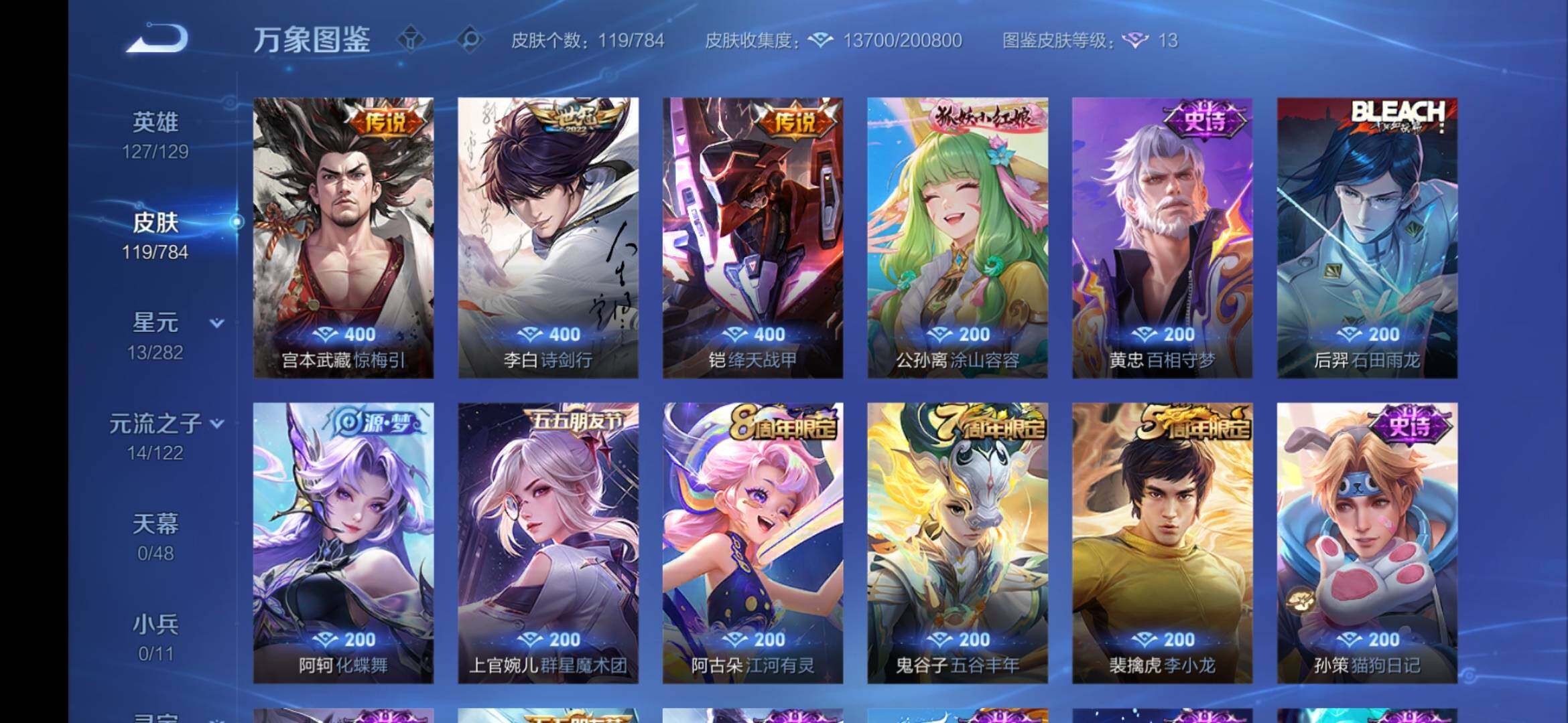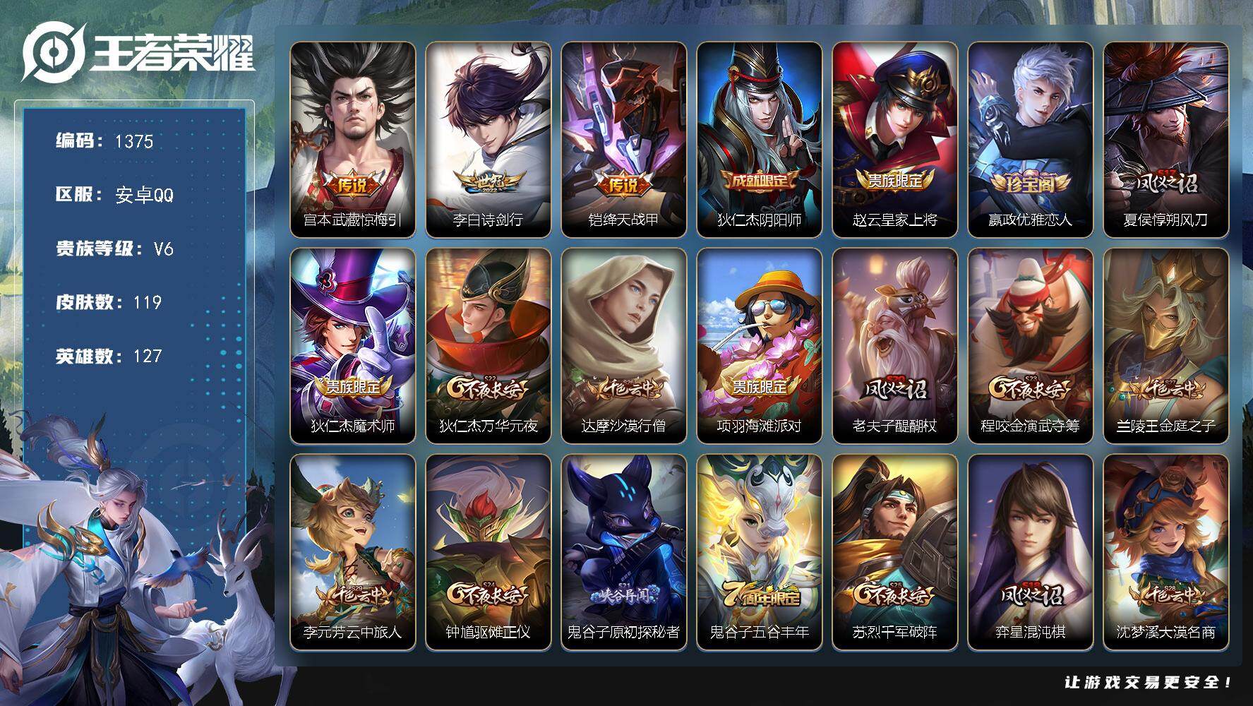 安卓Q-V6-127英雄-119皮肤-3传说-25史诗