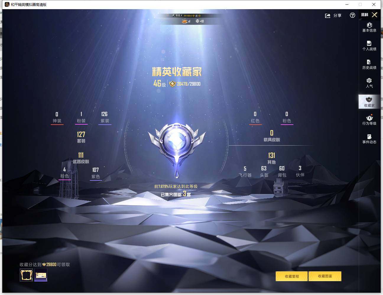 1粉装-4特效枪-0载具-1粉色飞行器-35555热力值-11王牌印记-127套装-127枪皮