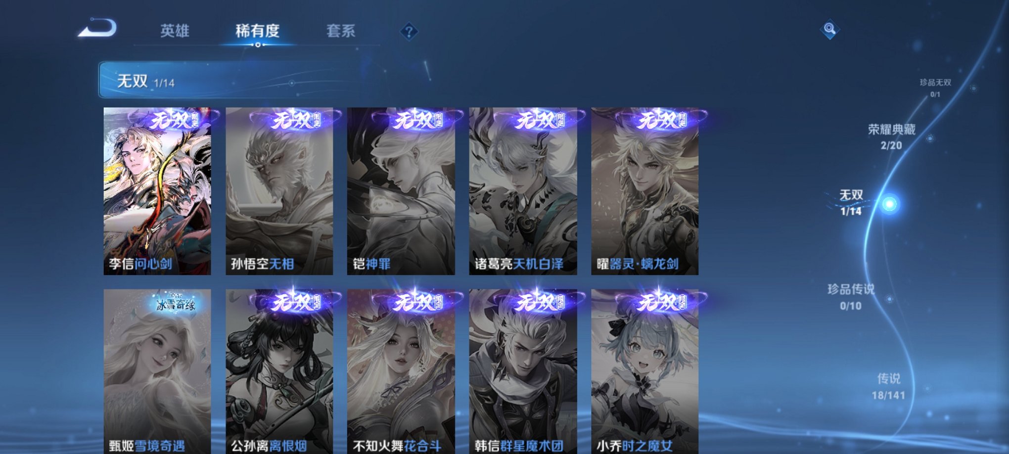 18传说340皮肤2水晶1无双2星元-127英雄-