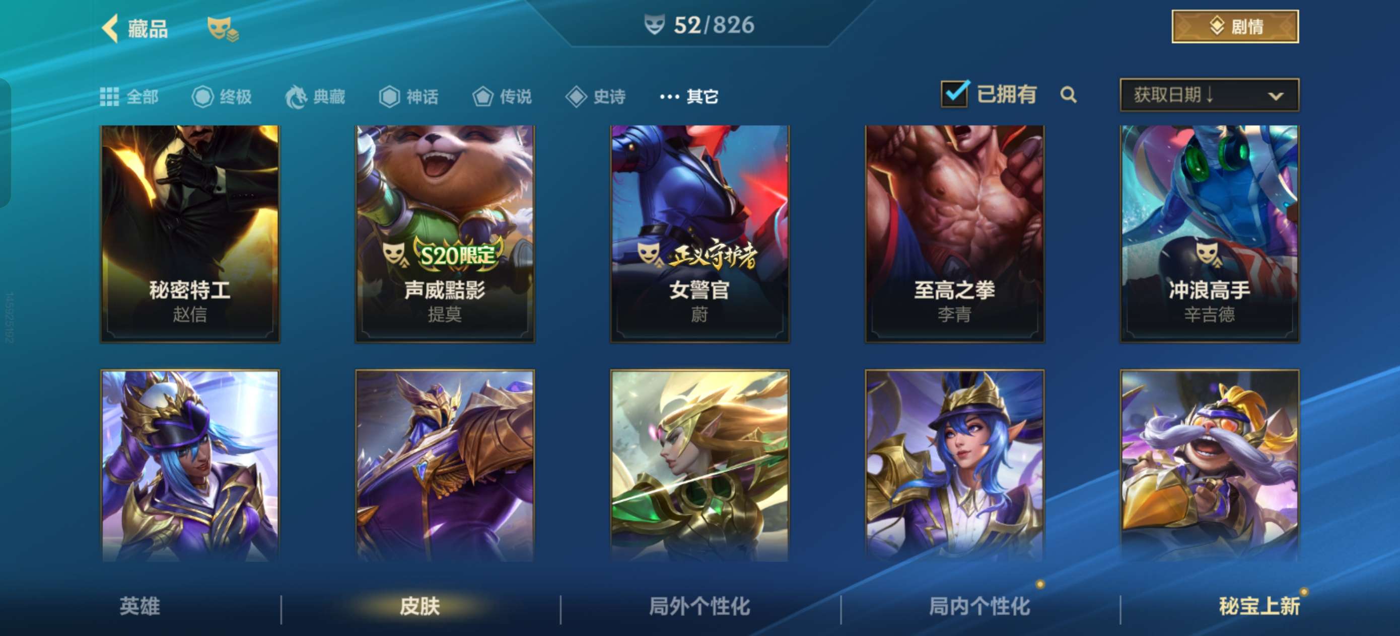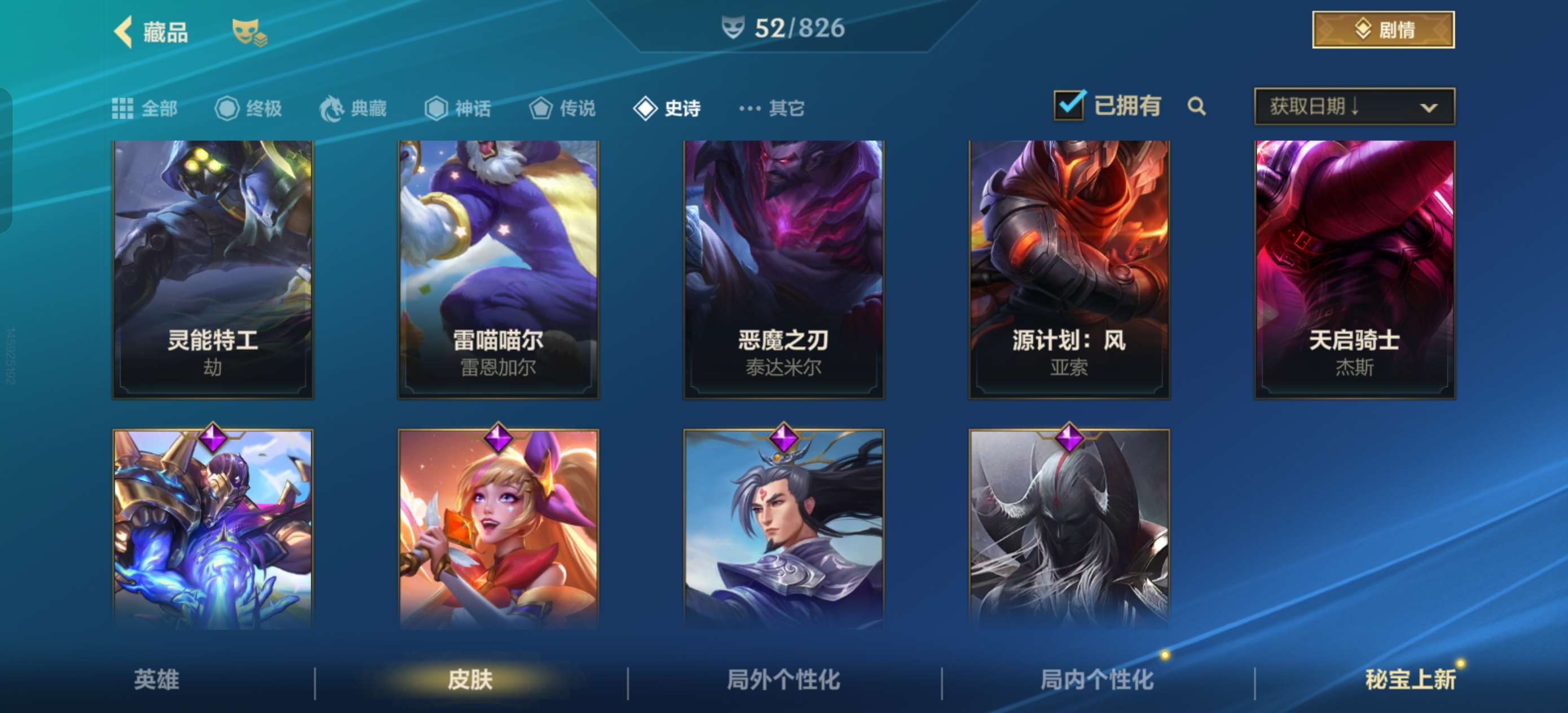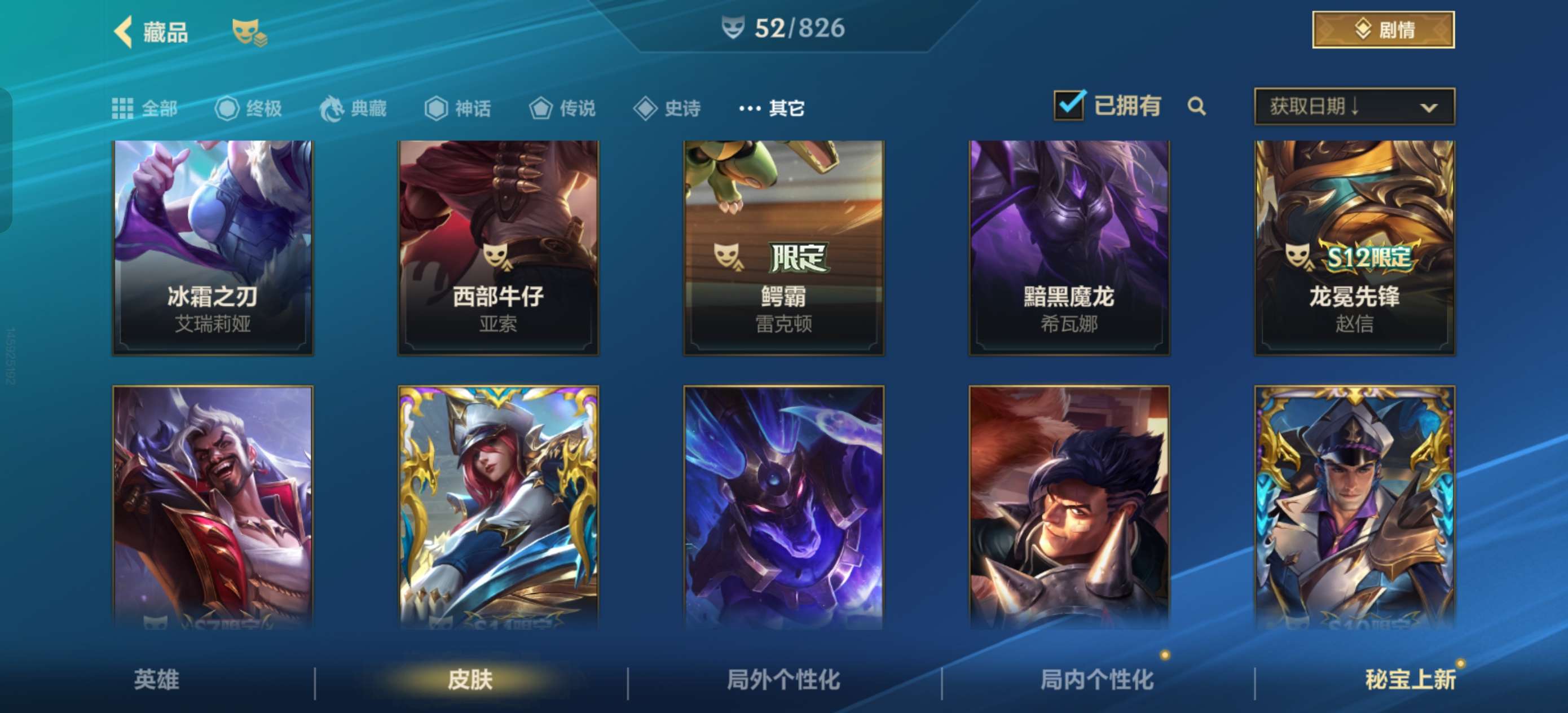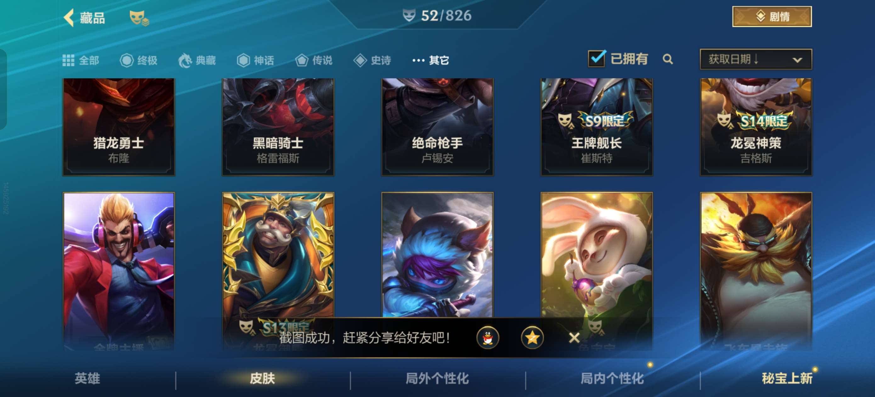 英雄联盟手游q区账号出售皮肤52等级89英雄57段位宗师有4个英雄宝箱没开