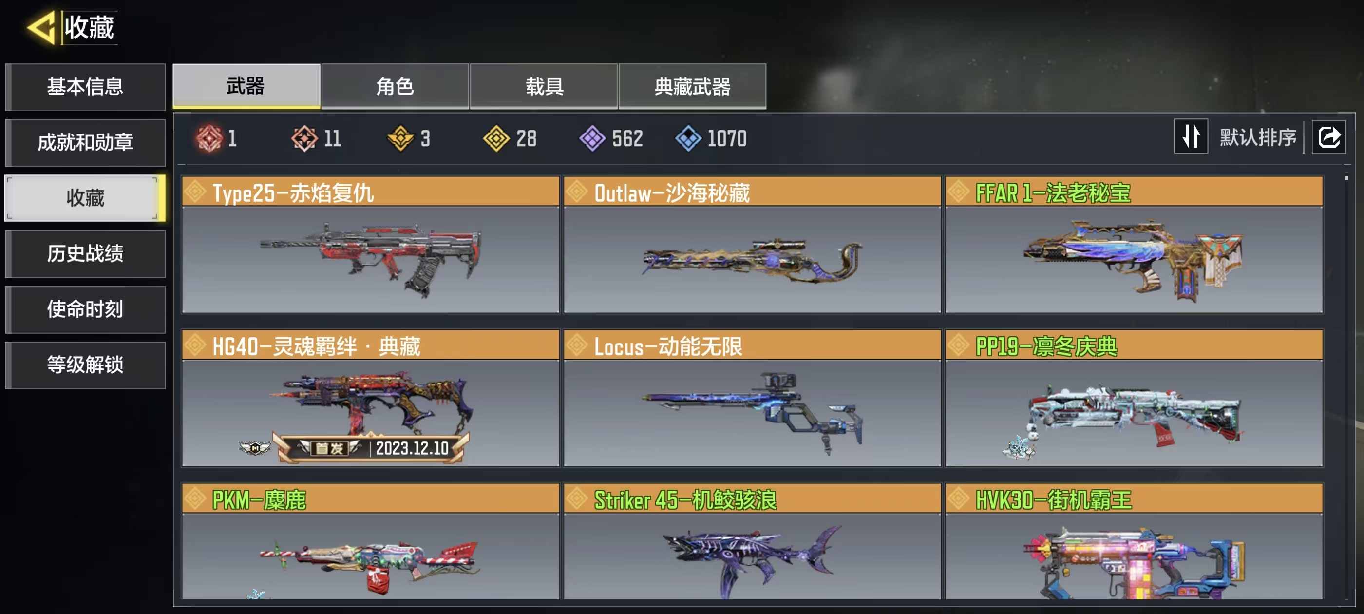 【典藏武器】AK117-火龙咆哮·典藏,HG40-灵魂羁绊·典藏,PPSh 41-龙晶·典藏,