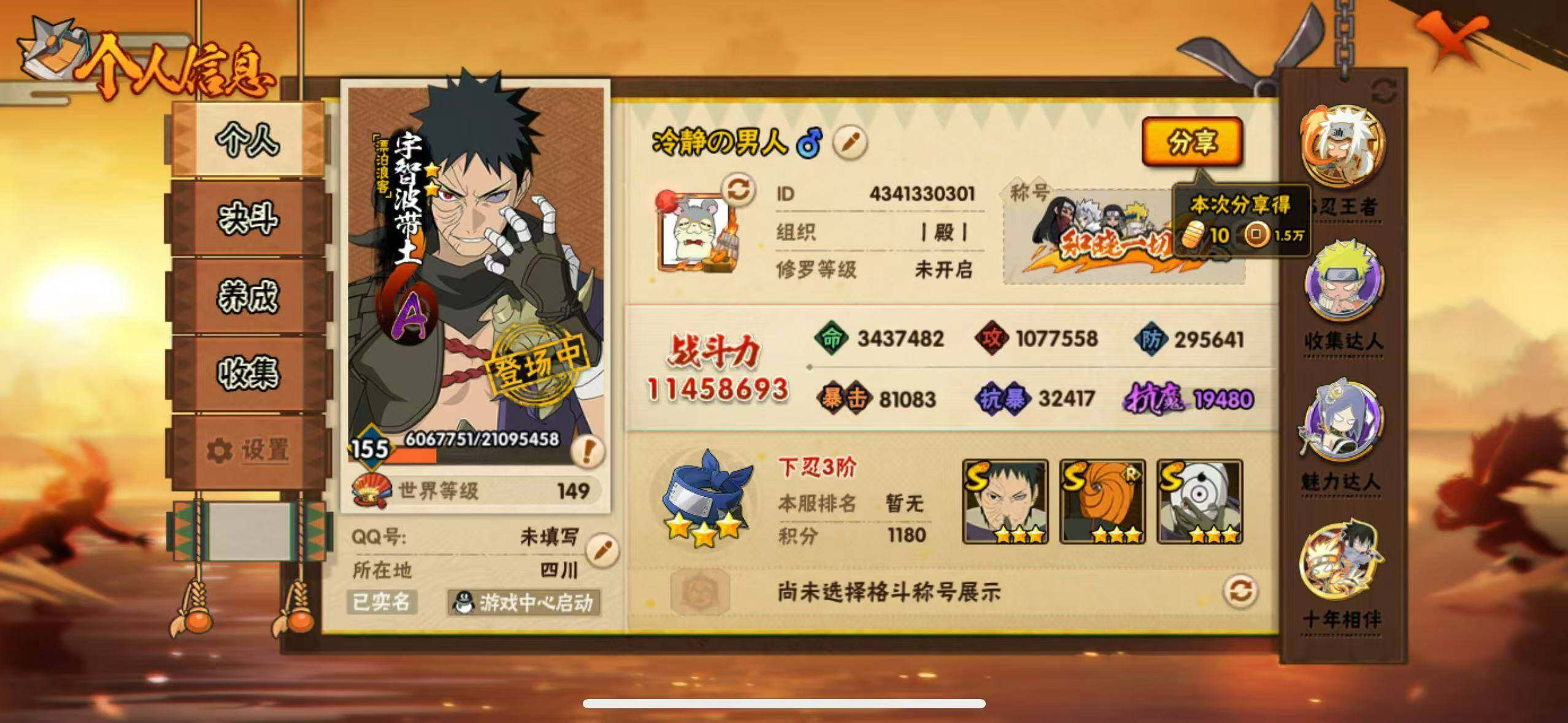 带土94片,艾74片,198忍法帖已买,连体王者 传说皮肤4
