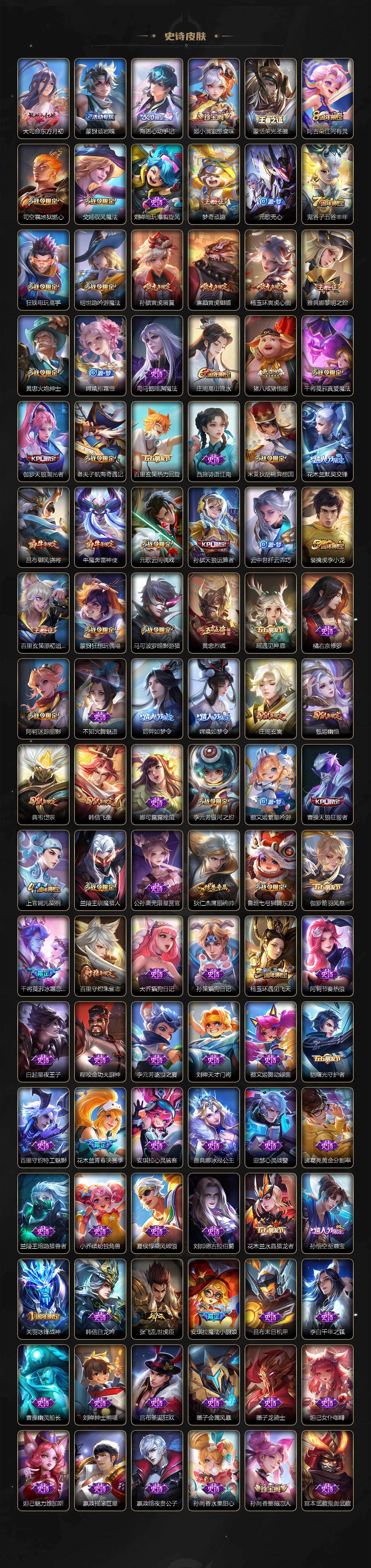 435皮-3典藏-3无双-1珍品传说-41传说-13全皮英雄-4改名卡