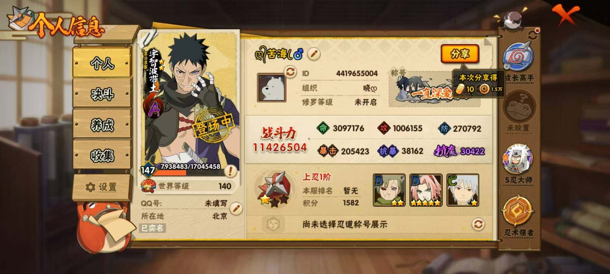 角色等级: