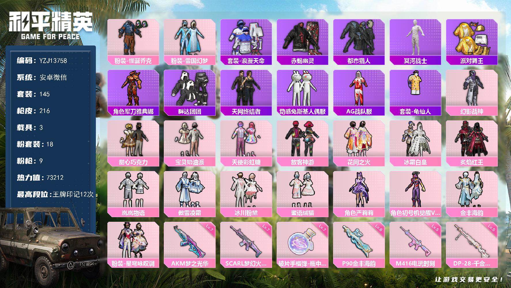 二五一六五二九_不可二次安卓V-8稀有4载具17粉装8特效枪11热门138套