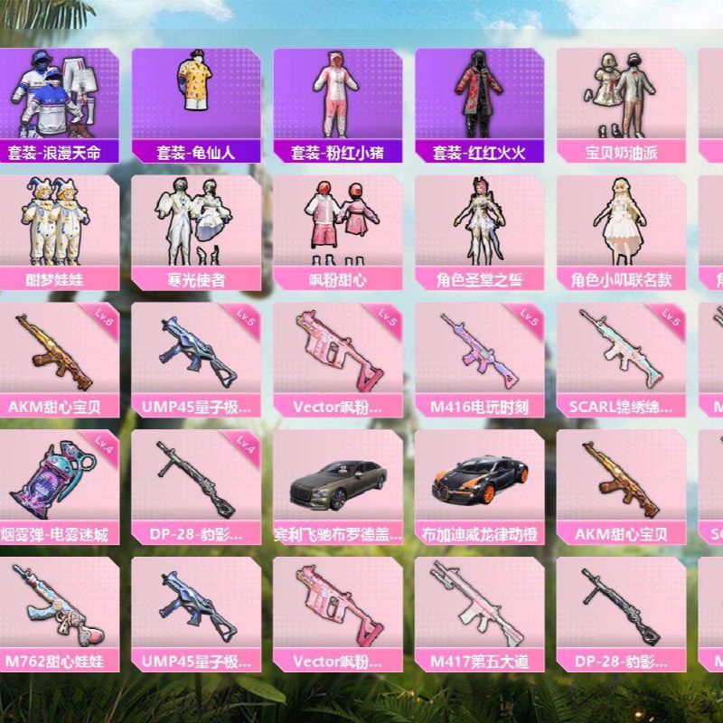 2516528_实名可改-安卓Q-1稀有2载具9粉装10特效枪14热门【精品公主号小叽联名款荧海星豚甜心两姐妹飒粉甜心暗夜风云纯白跃动馥郁金蕊午间小调情公主冬芋恋人莱茵河畔粉团憨憨软羊咩咩红红火火大橘为重天命6级AK甜心宝贝许愿神龙-伙伴3张改名卡】172套装244枪皮80675热力值14印记历史超级王牌12星【1稀有】浪漫天命【2载具】布加迪威龙(律动橙)宾利飞驰布罗德盖棕双色【9粉装】圣堂之誓