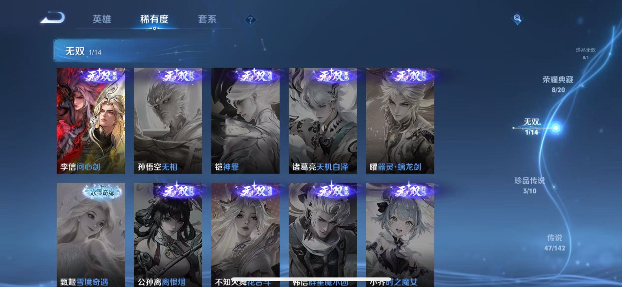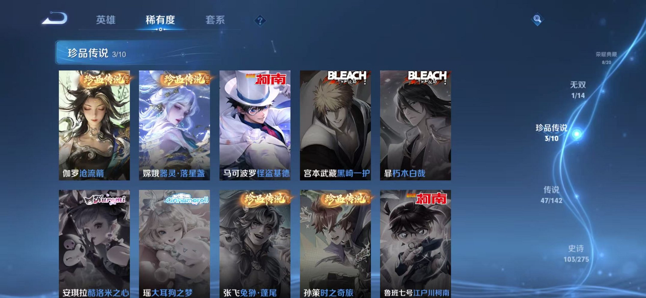 V10 紫瑶406皮肤8水晶1无双3星元3珍品47传说1天幕