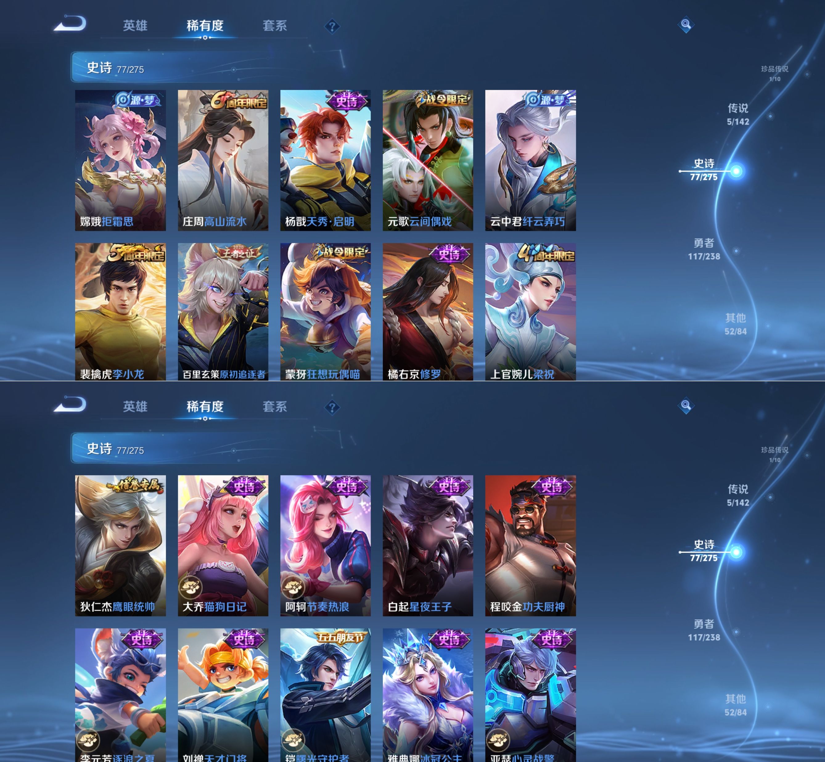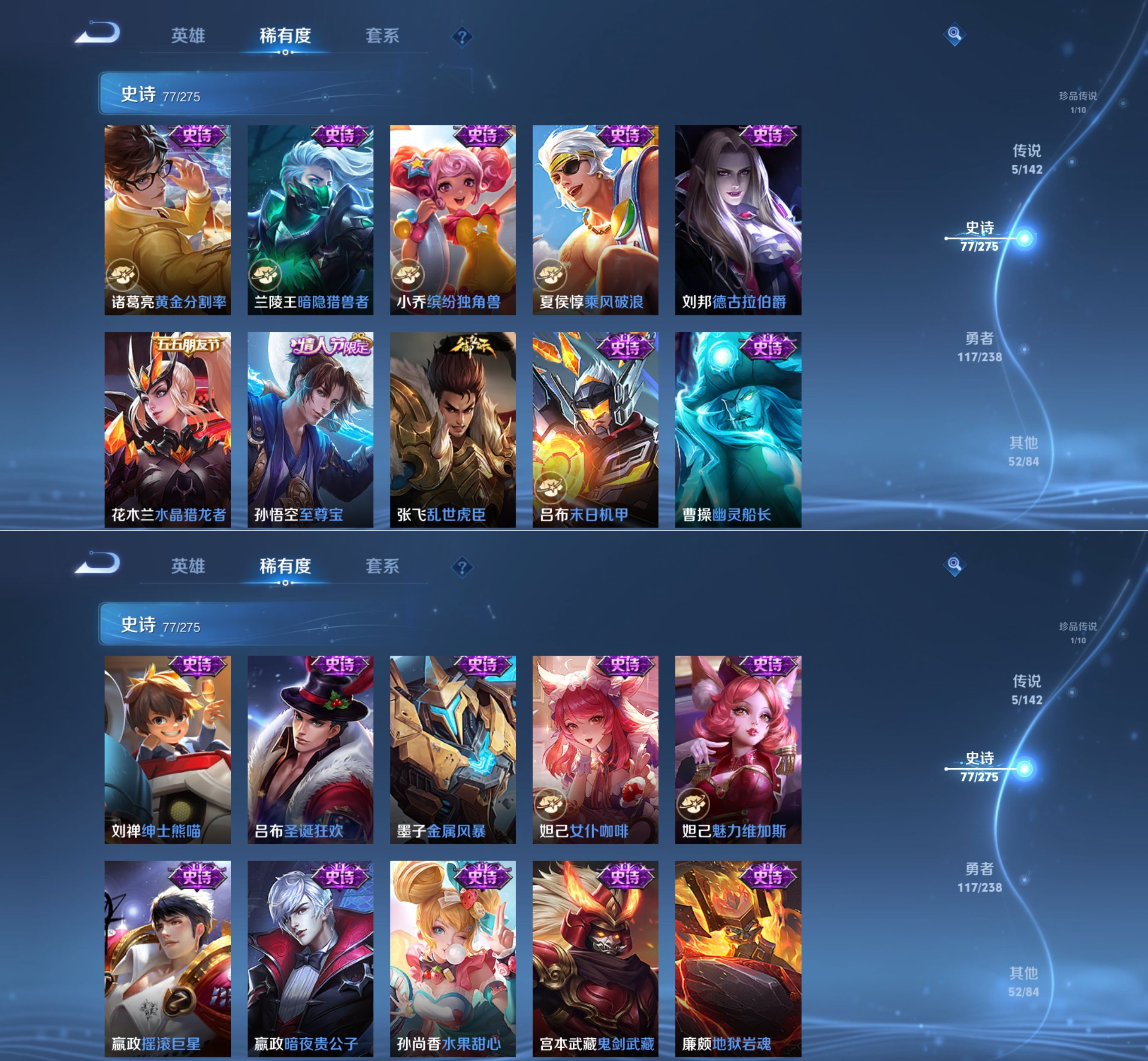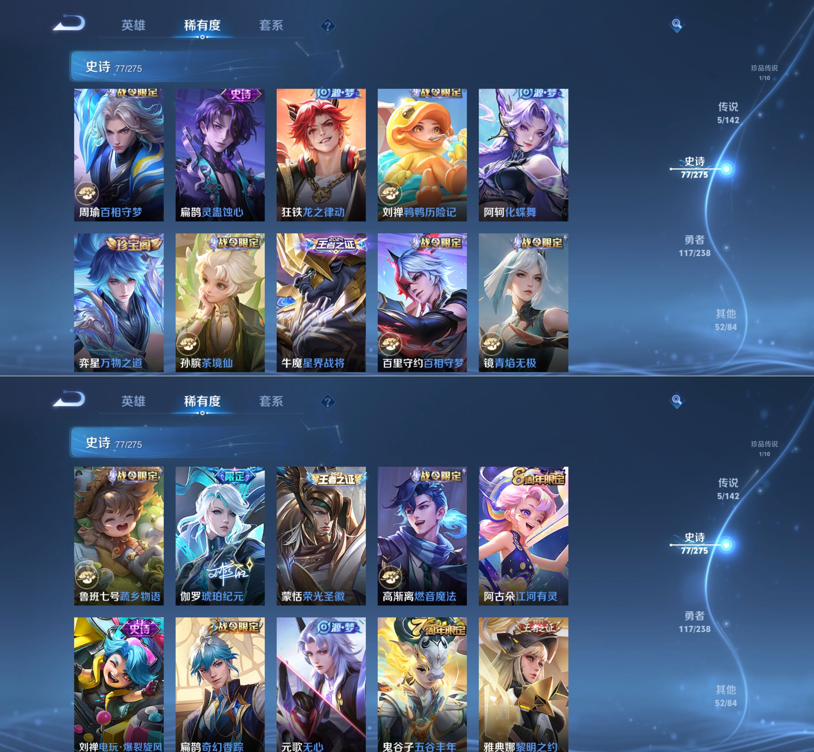 【史诗皮肤】 蔬乡物语 蔬乡物语 百晓客 茶境仙 星界战将 百相守梦 布丁狗之约 谧流熔炉 涂山容容 至尊宝 灵蛊蚀心 鸭鸭历险记 龙之律动 线条小狗 九幽镇关 青焰无极 百相守梦 踏浪烽翎 琥珀纪元 聚星闪耀 江河有灵 幻夜行动 荣光圣徽 百相守梦 巫
