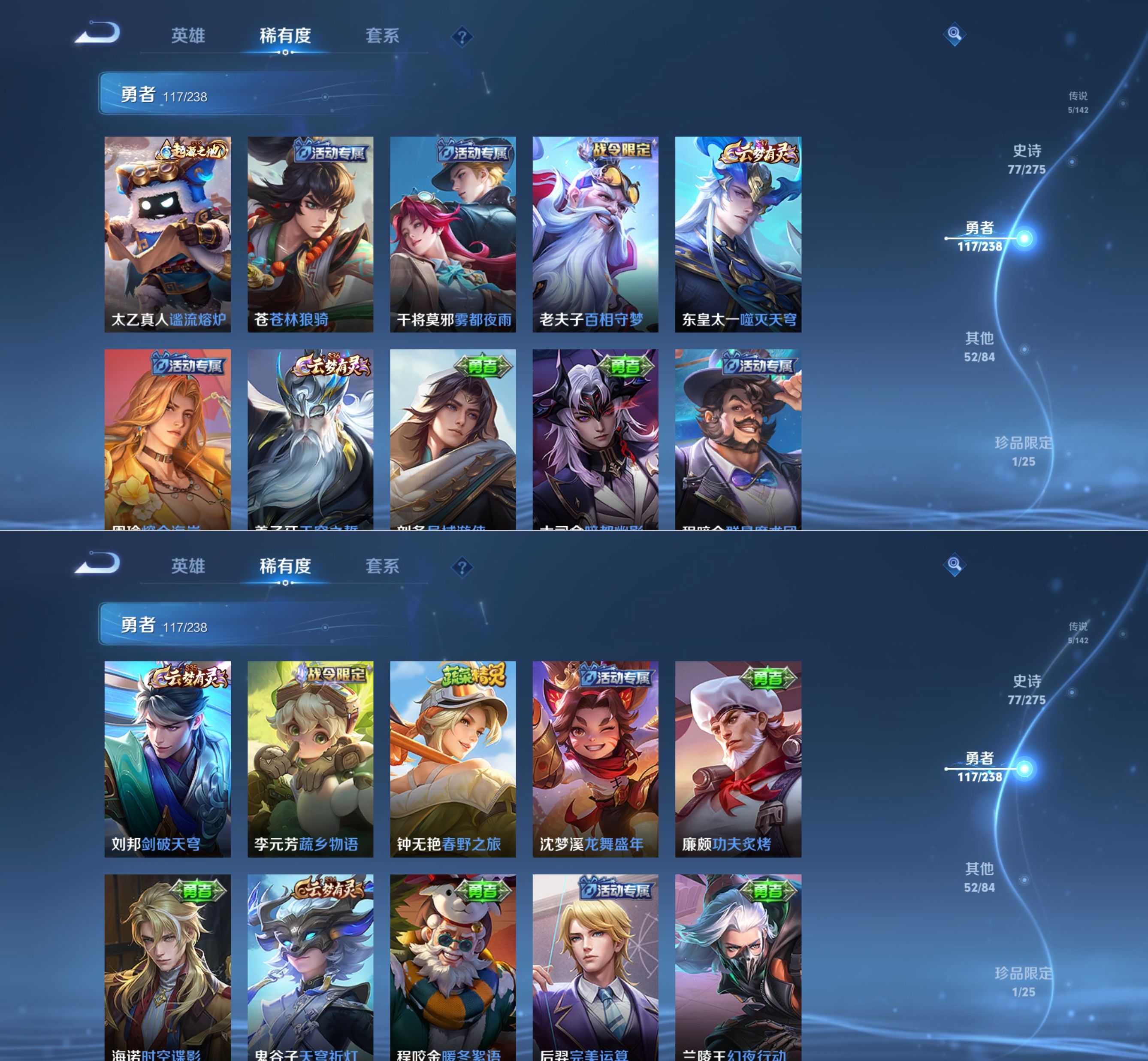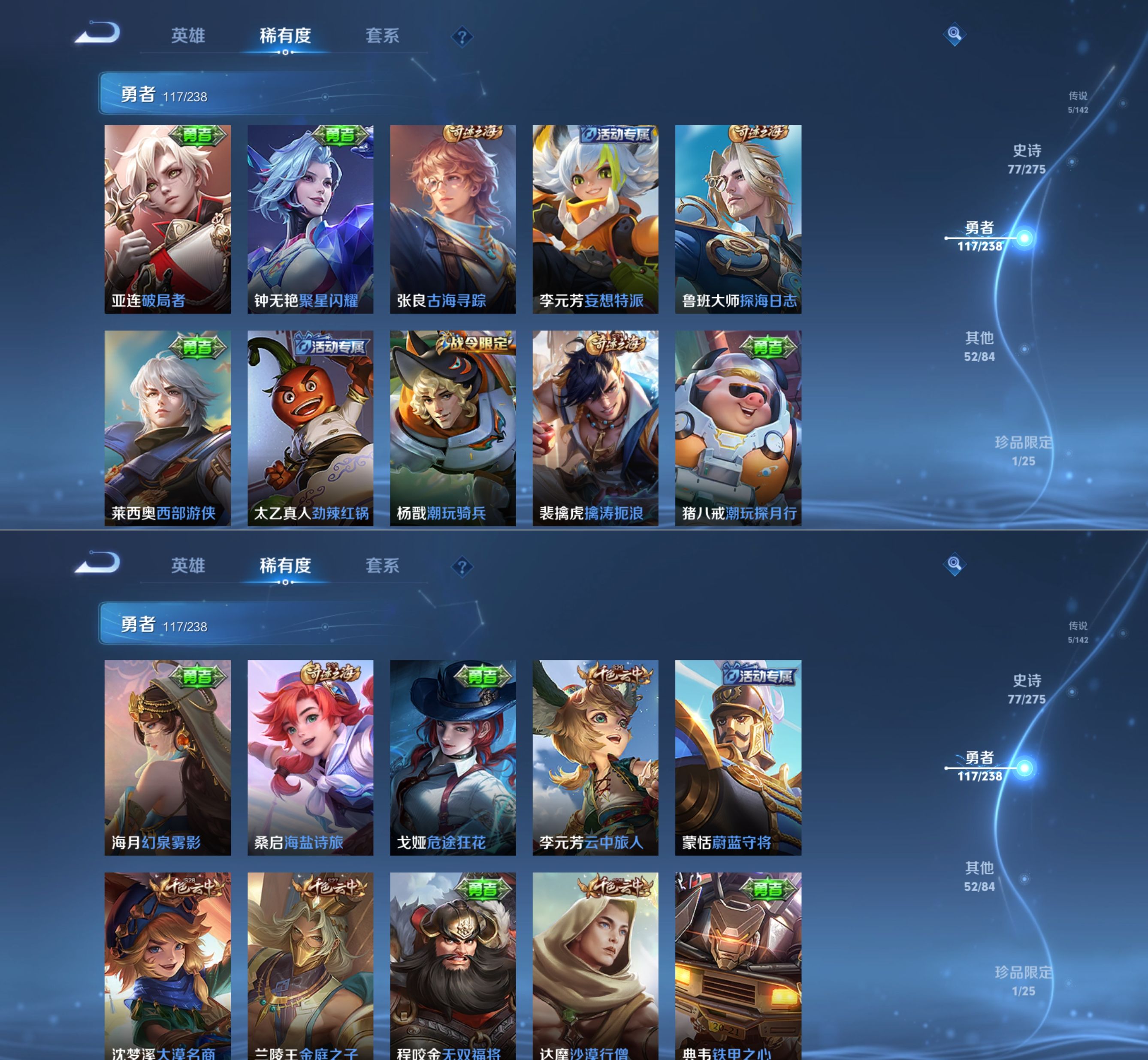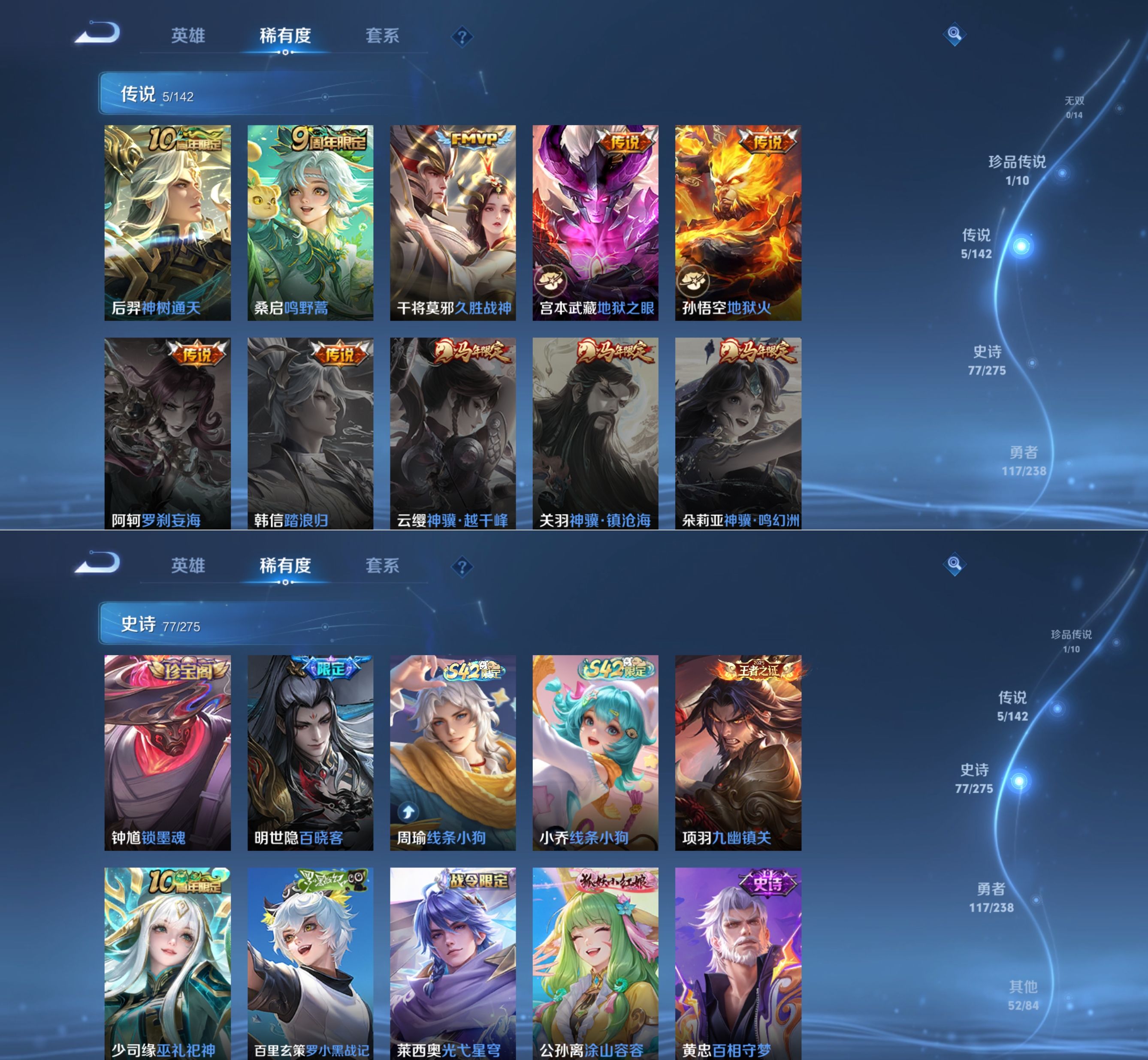 【史诗皮肤】 蔬乡物语 蔬乡物语 百晓客 茶境仙 星界战将 百相守梦 布丁狗之约 谧流熔炉 涂山容容 至尊宝 灵蛊蚀心 鸭鸭历险记 龙之律动 线条小狗 九幽镇关 青焰无极 百相守梦 踏浪烽翎 琥珀纪元 聚星闪耀 江河有灵 幻夜行动 荣光圣徽 百相守梦 巫