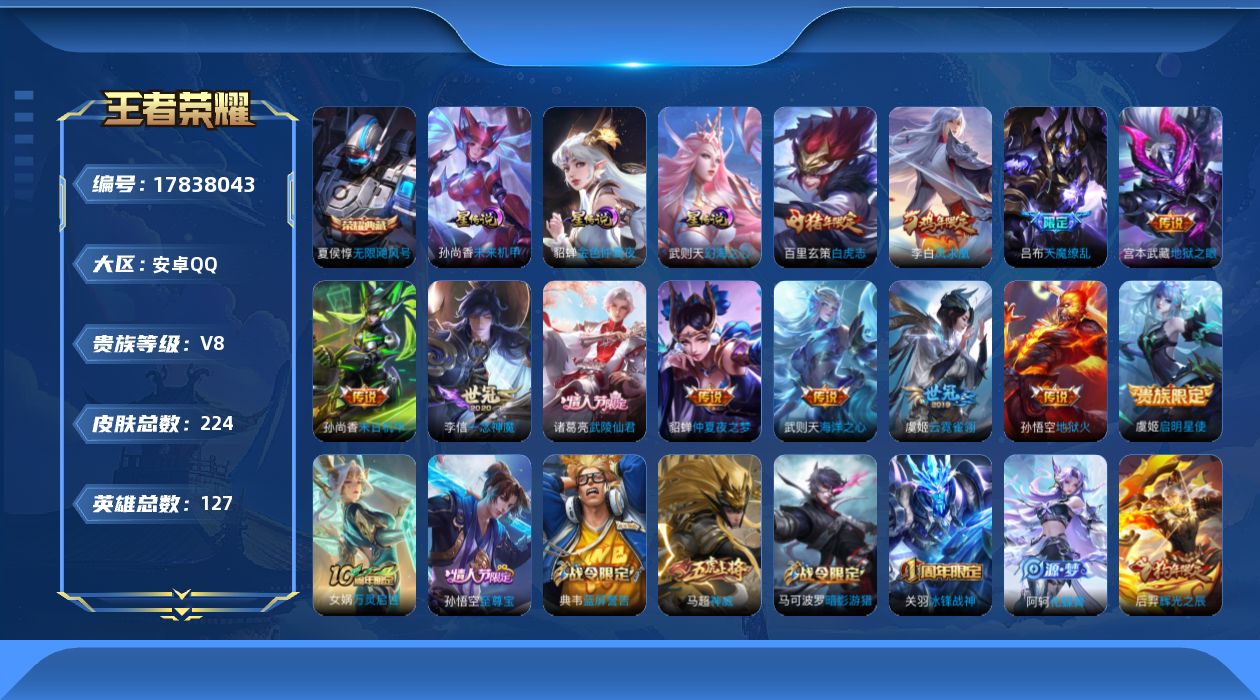 【精品号手慢无】3.25日可换绑 V8 2典藏 12传说 68史诗 武则天,无限飓风号 冰锋战神 天魔缭乱,神威 凤求凰,白虎志,朱雀志,至尊宝,武陵仙君 花花200+ 皮肤碎片283 星币3000+