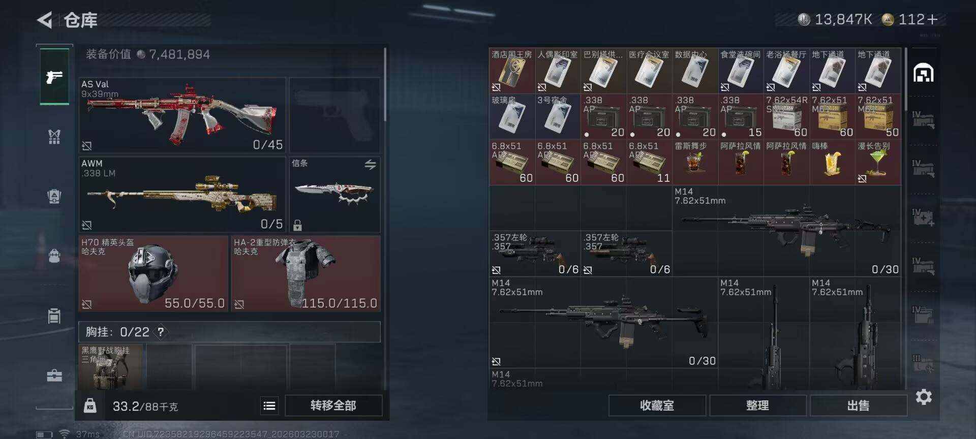 【SJZD3278】总资产(M):201M/哈夫币(K):13847K/哈夫币(K):13847K/传说枪皮数:47/全面战场等级:50_段位:上等兵/烽火地带等级:60_段位:黑鹰/露娜-黑·天际线/威龙-铁面判官/威龙-壮志凌云/蜂医-送葬人·无题密令/牧羊人-街头之王/无名-夜鹰/深蓝-不破誓约/红狼-电锯惊魂/露娜-金牌射手/近战-信条/近战-电锯惊魂/近战-黑鹰/AS Val突击步枪-悬赏令/AS Val突击步枪-悬赏令(优品A)/M4A1突击步枪-阿米娅/AKM突击步枪-锦绣/QBZ