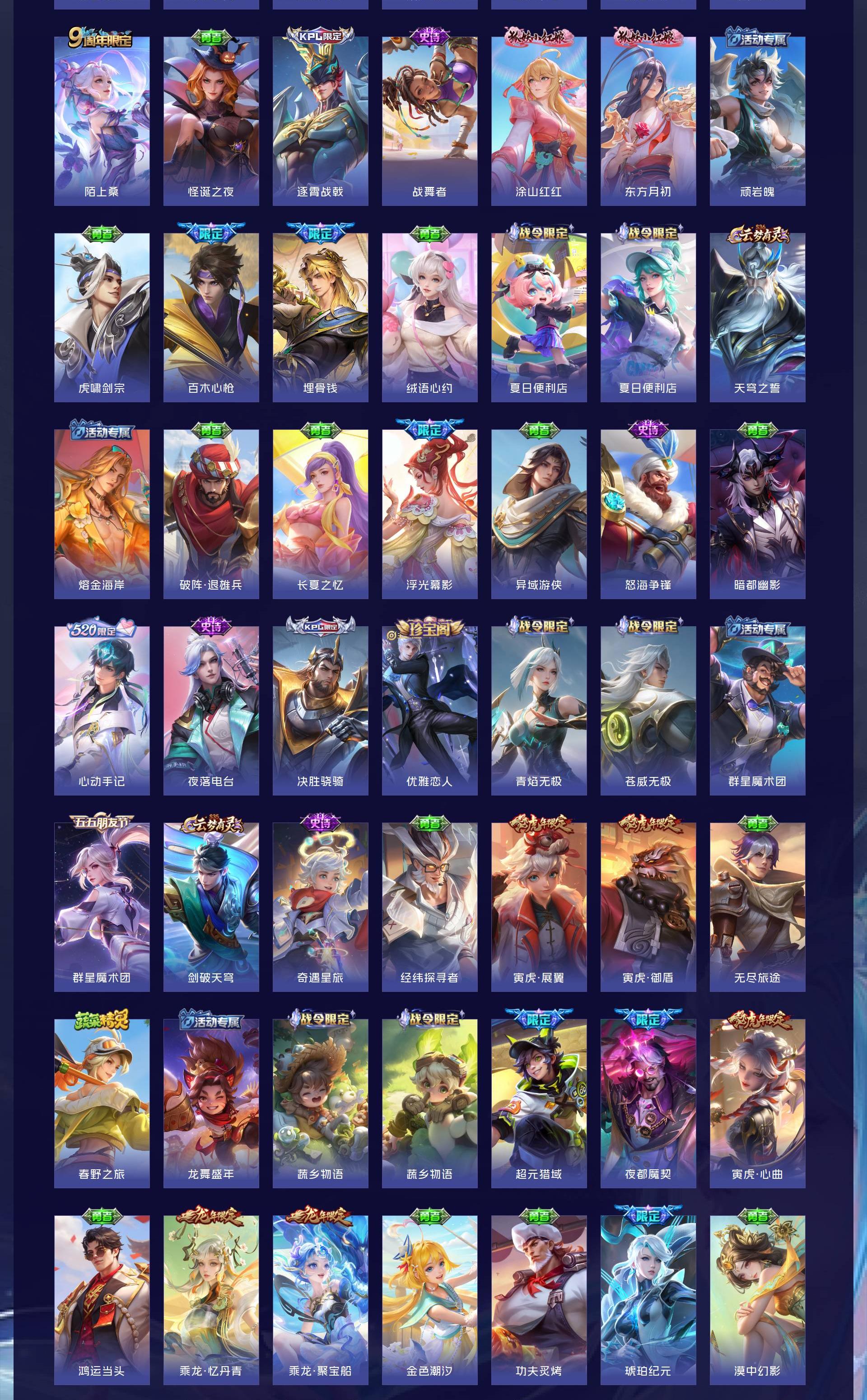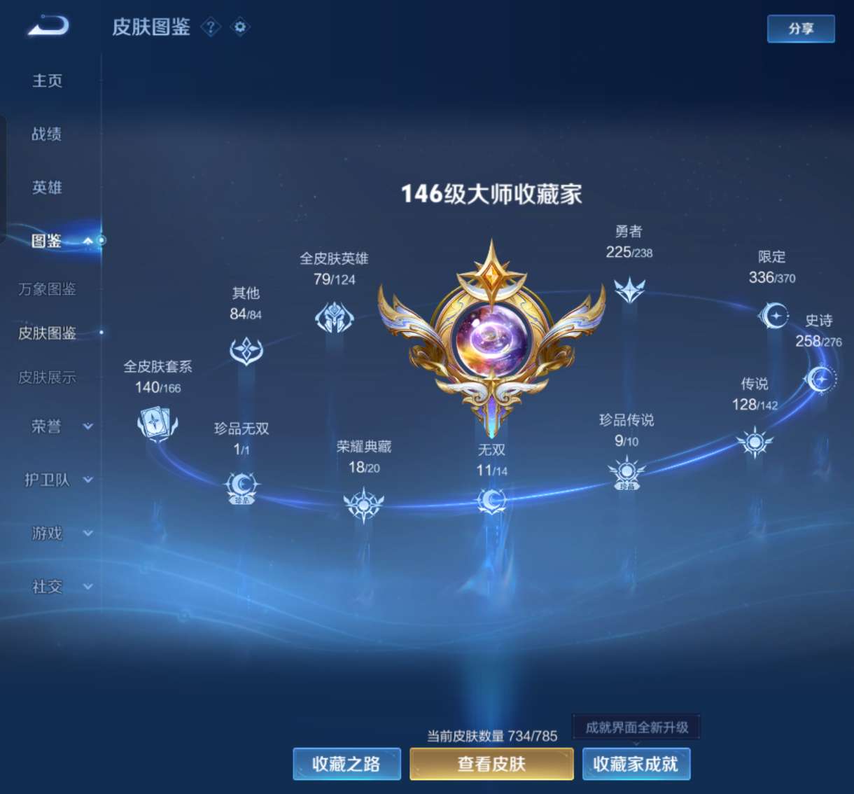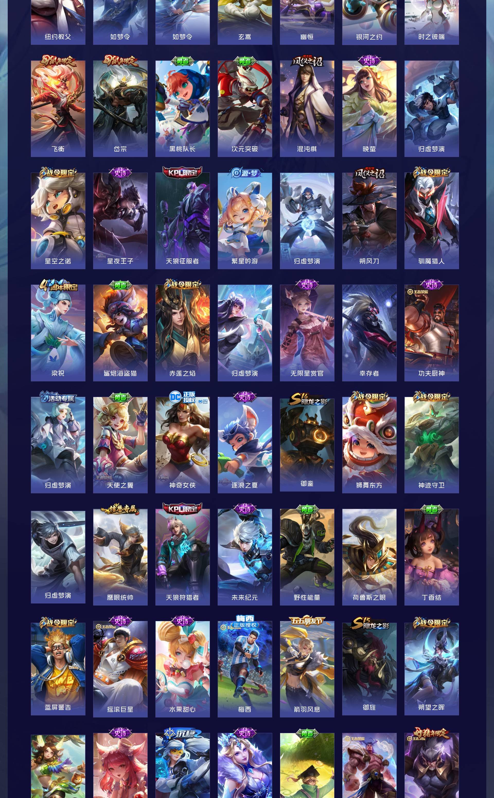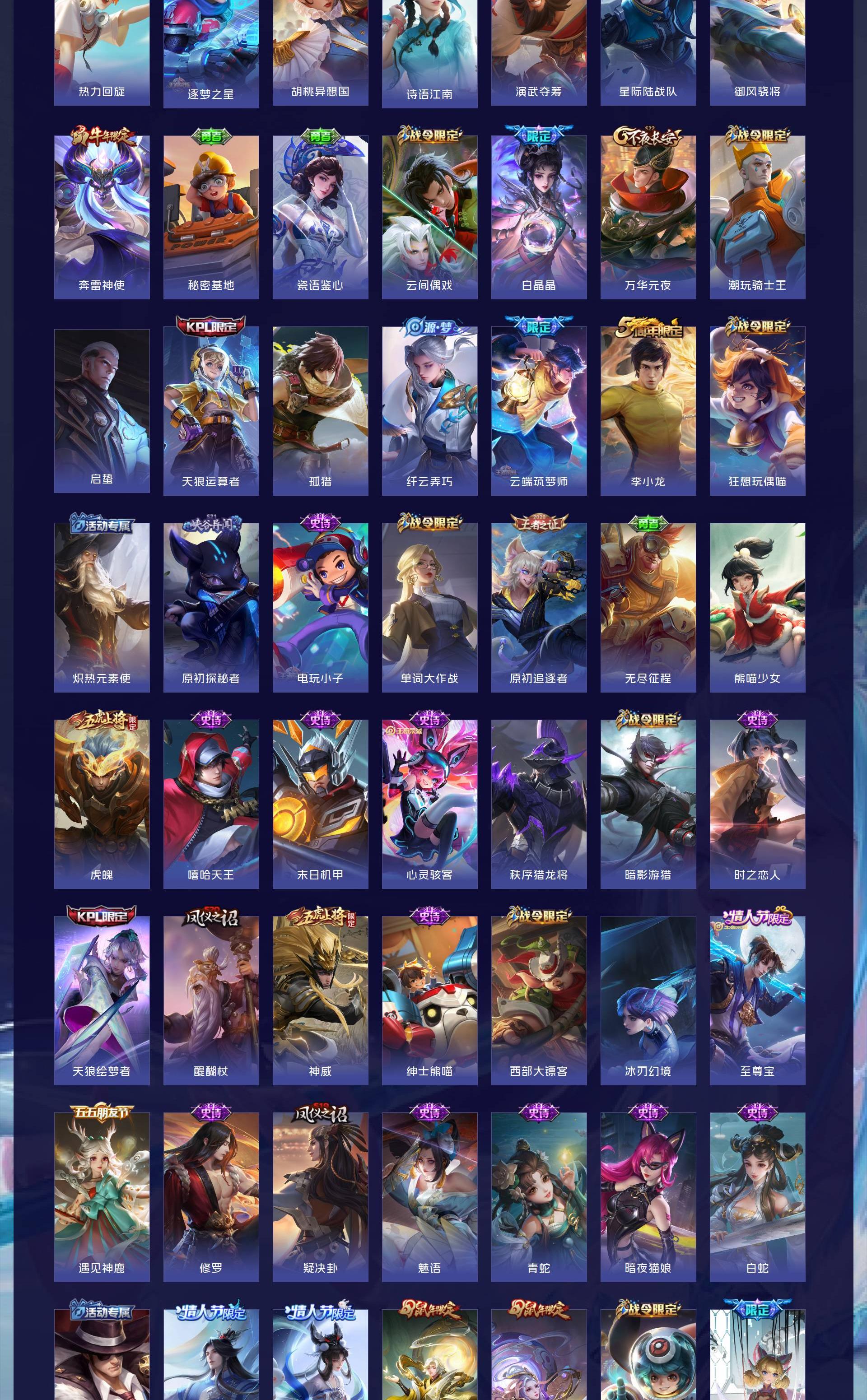 无双贵族 皮肤734 英雄129 尊贵铂金 荣耀典藏19 珍品无双1 无双皮肤11 珍品传说9 星传说22 传说128
