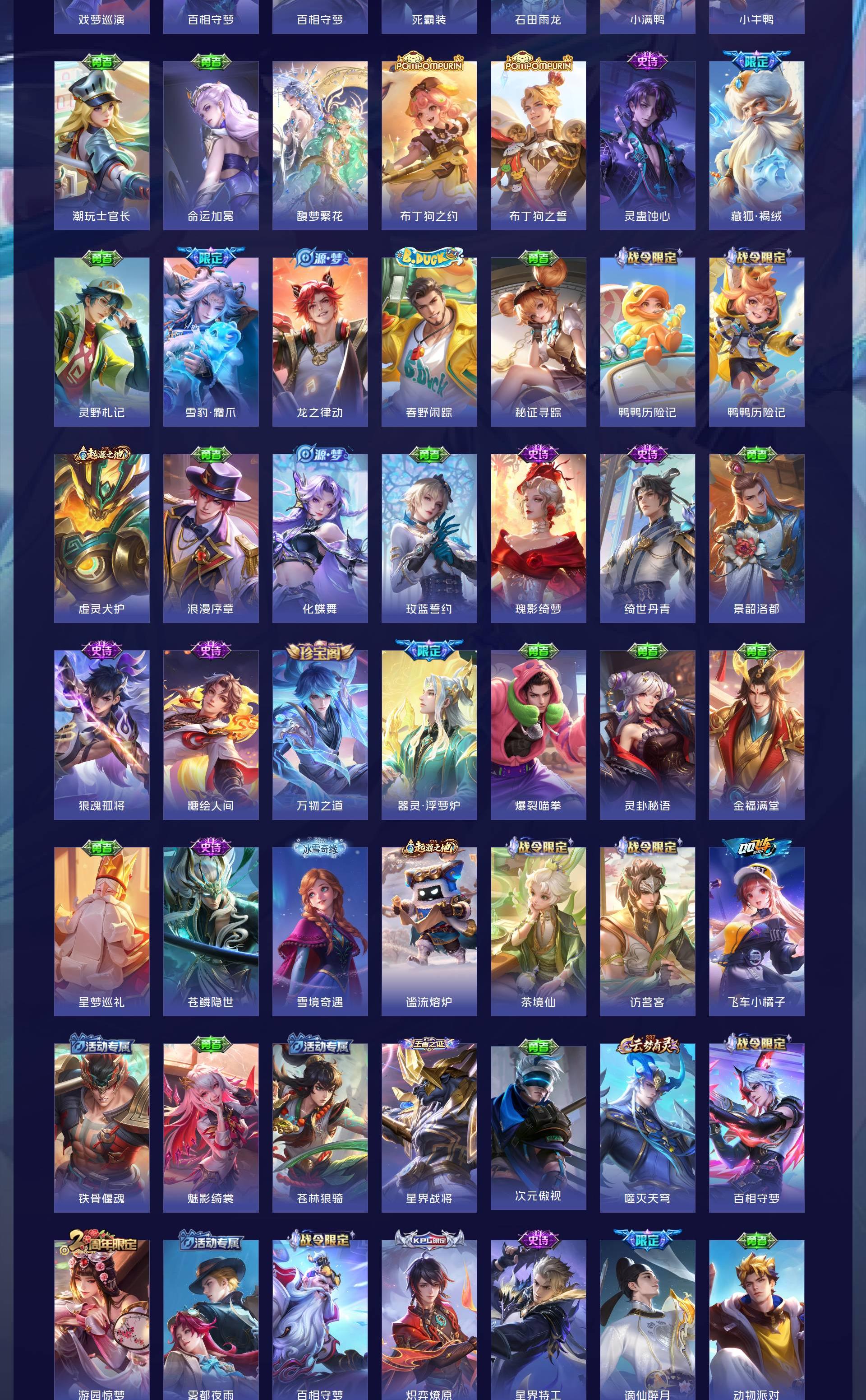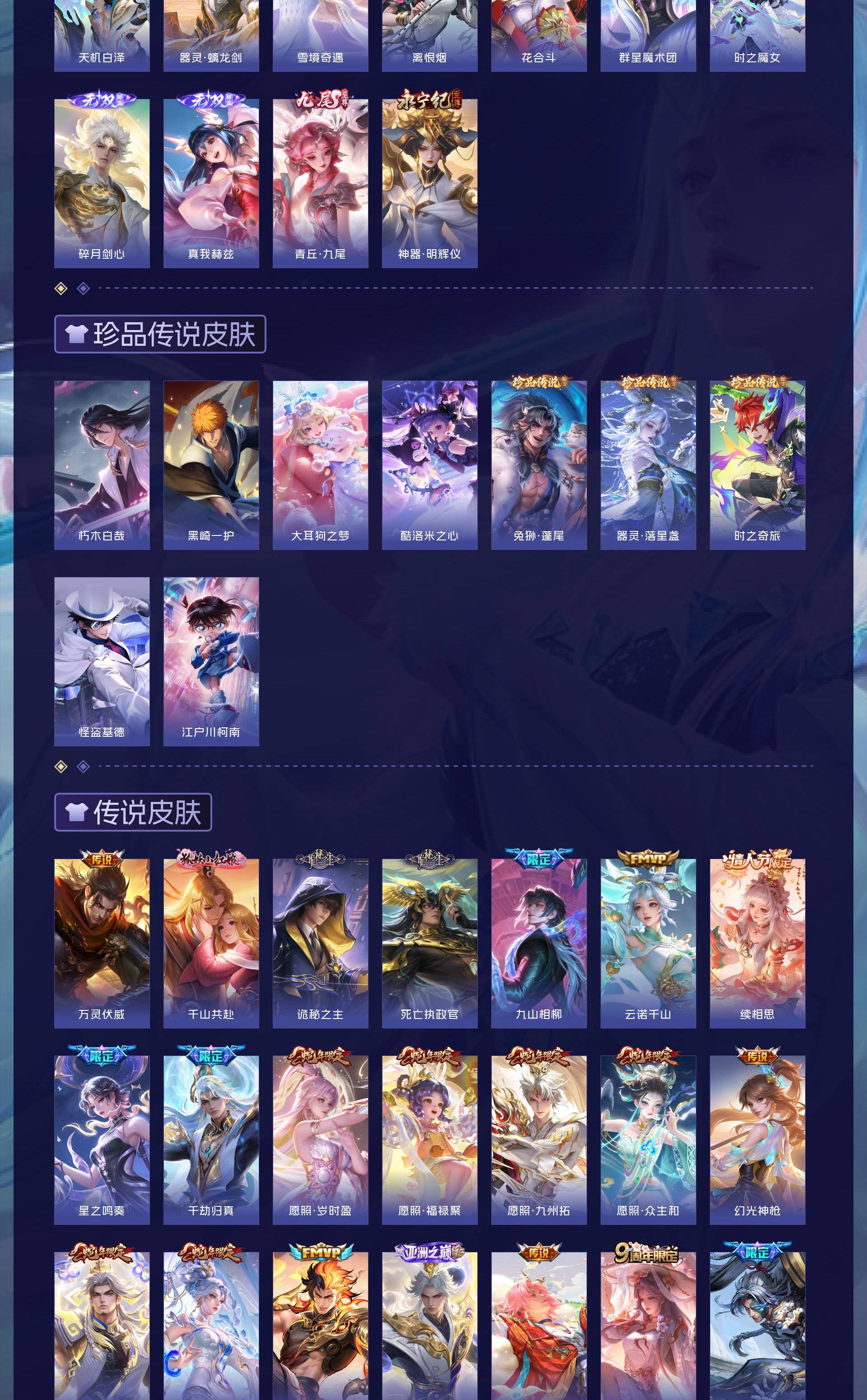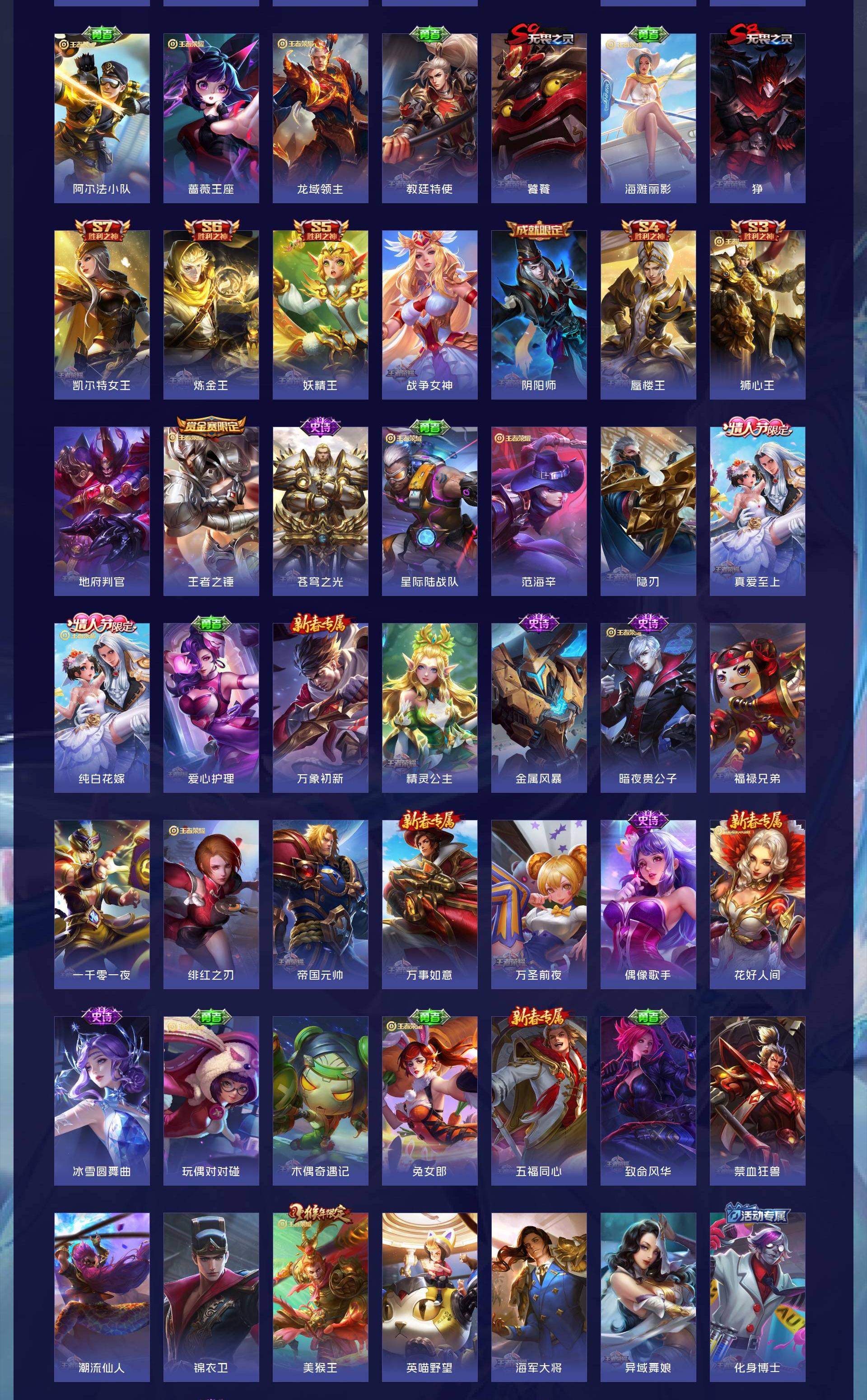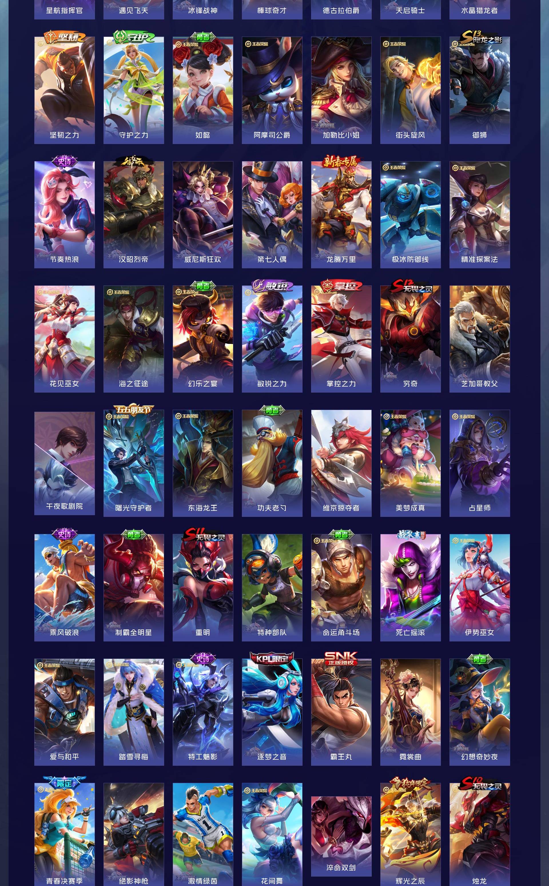 无双贵族 皮肤734 英雄129 尊贵铂金 荣耀典藏19 珍品无双1 无双皮肤11 珍品传说9 星传说22 传说128