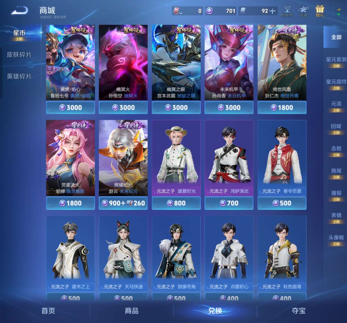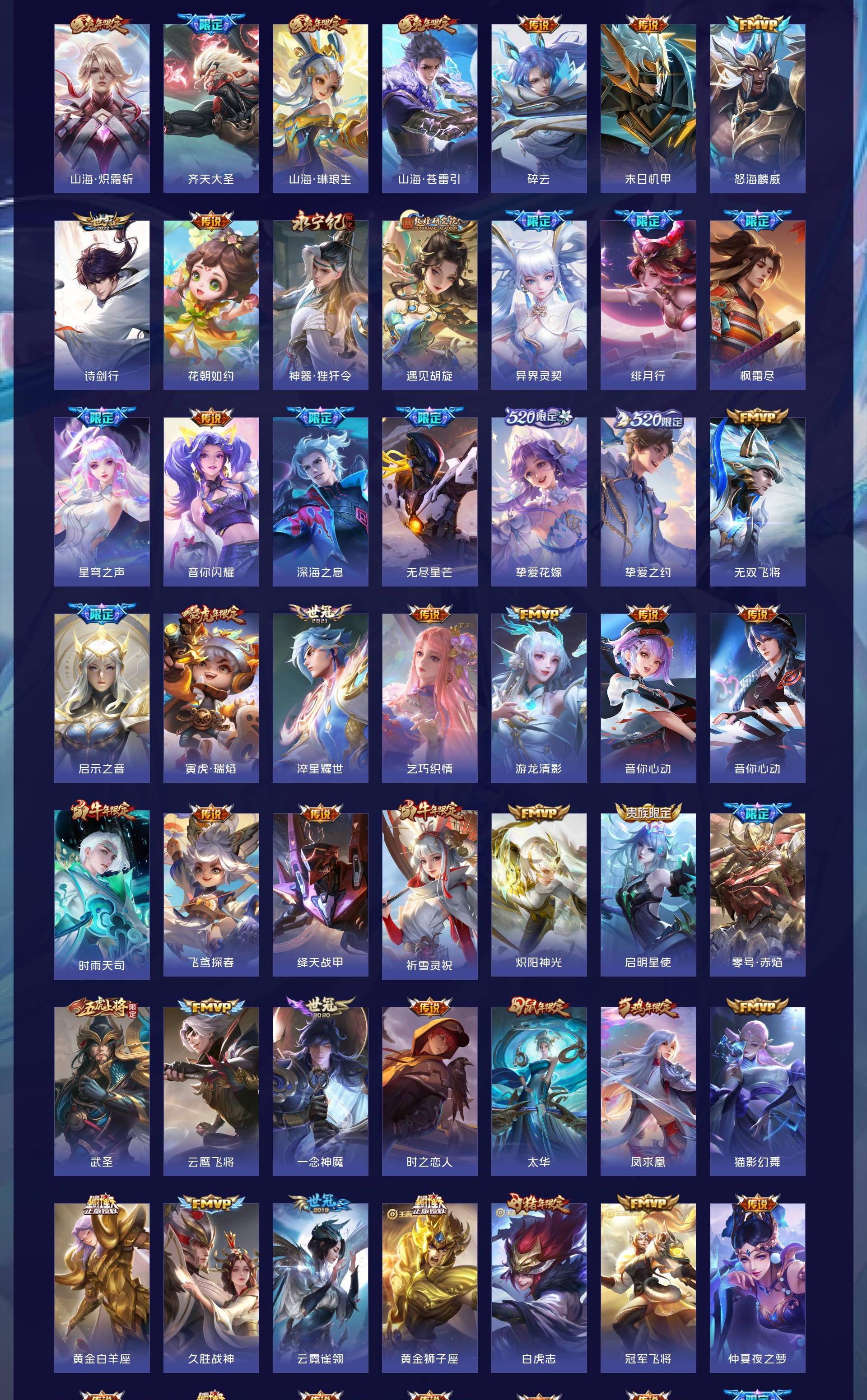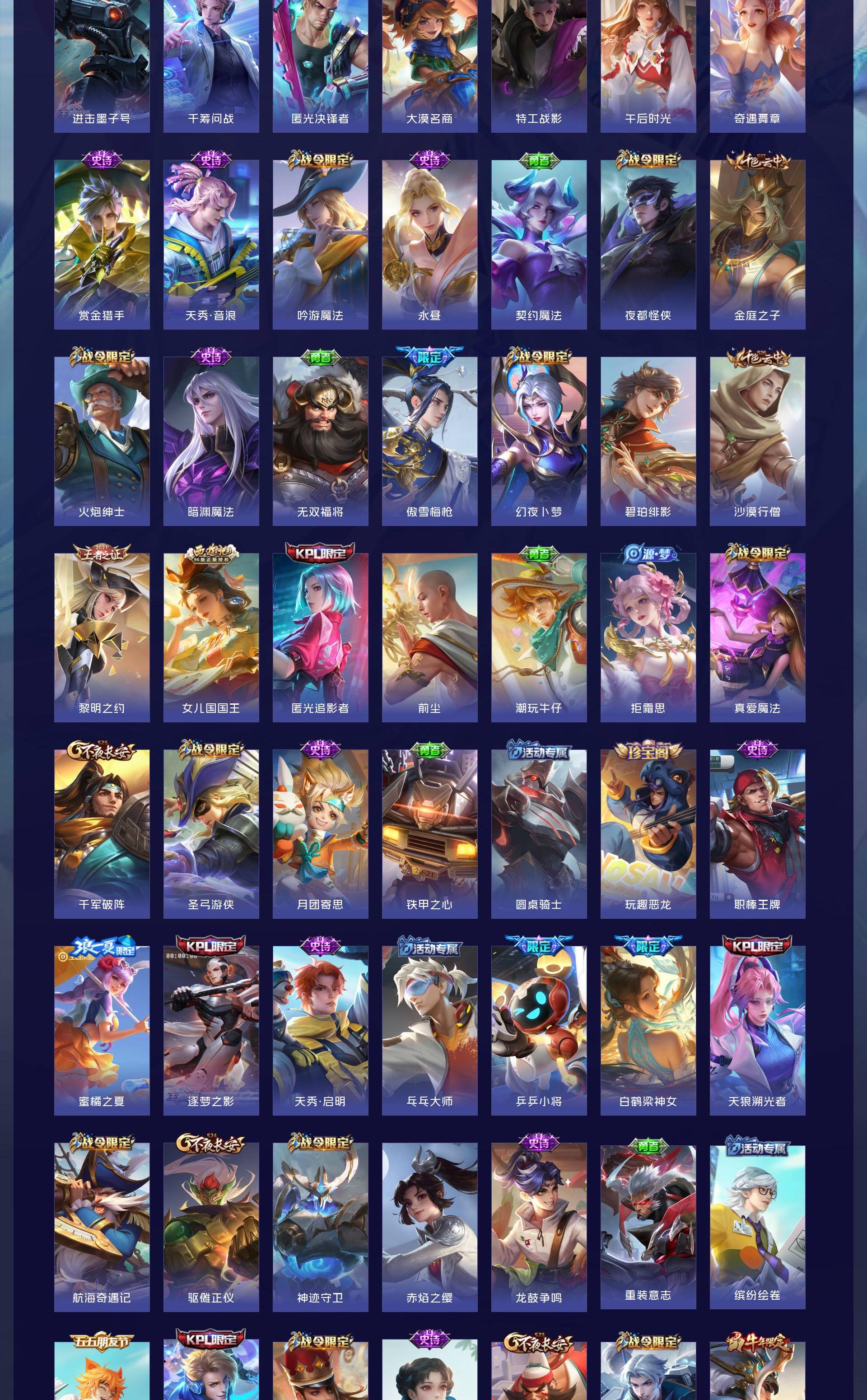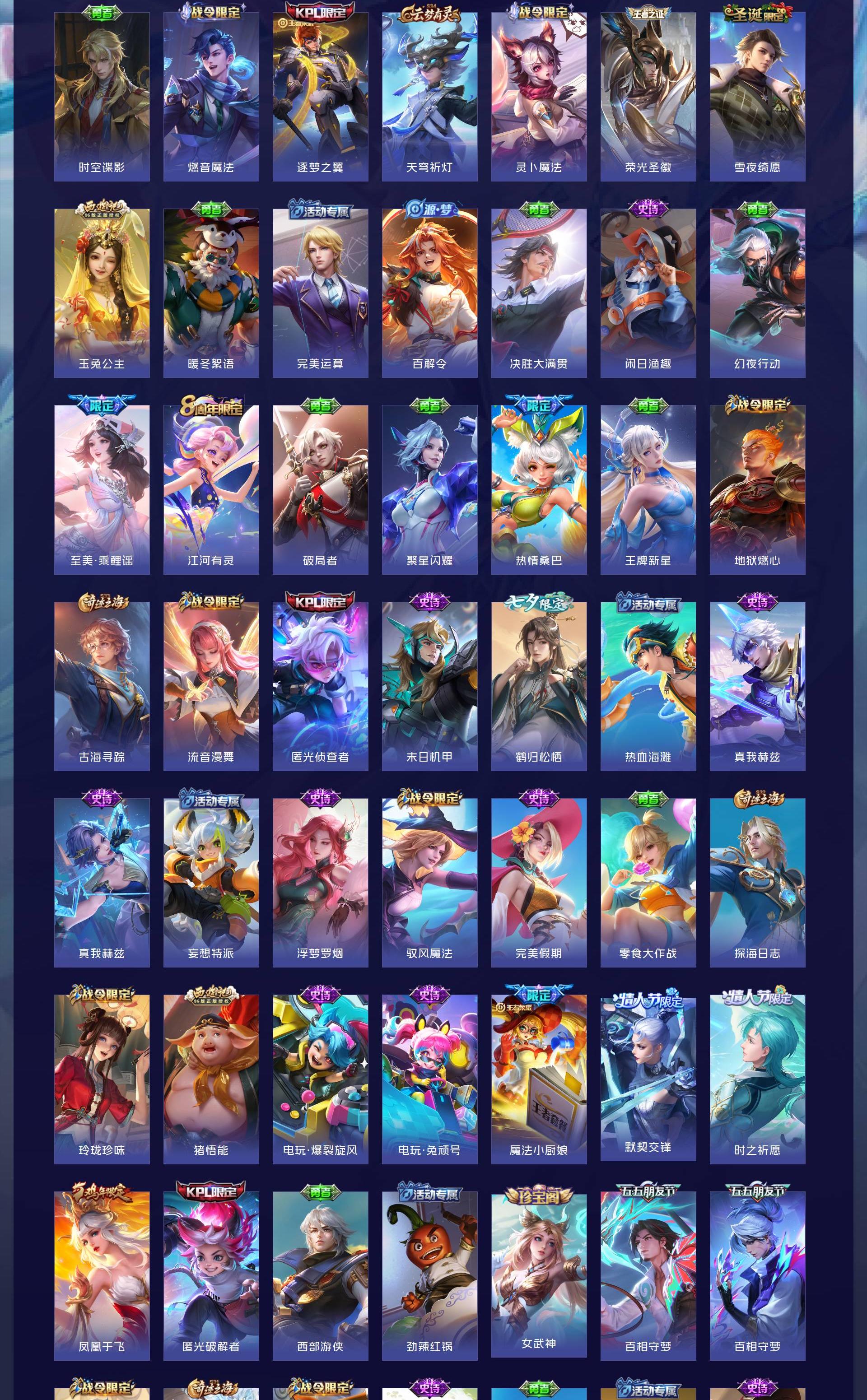 无双贵族 皮肤734 英雄129 尊贵铂金 荣耀典藏19 珍品无双1 无双皮肤11 珍品传说9 星传说22 传说128