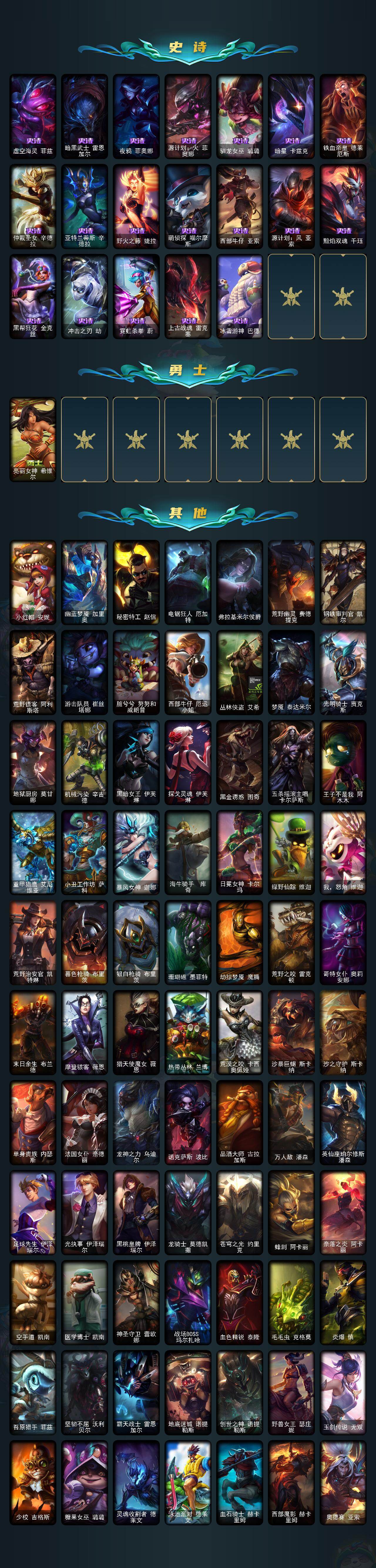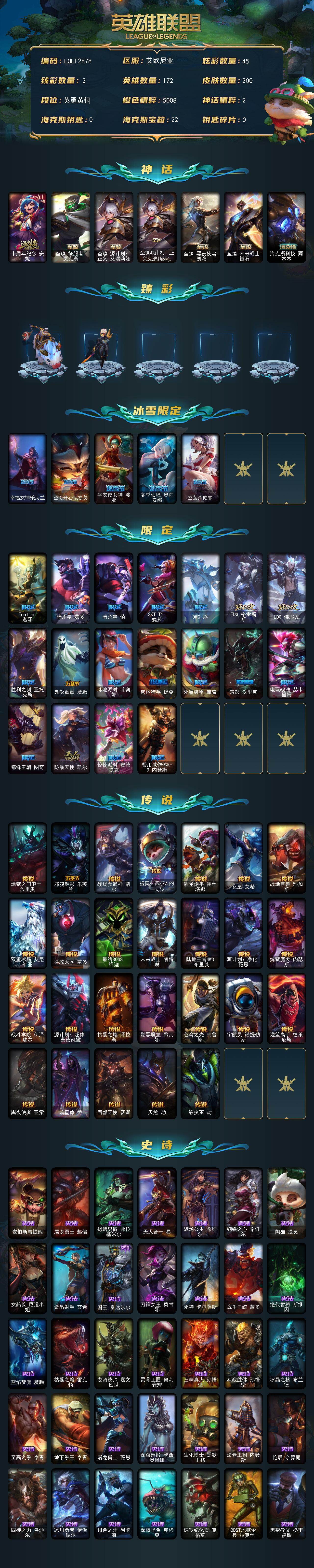 172英雄/200皮肤/7神话/23限定/2臻彩/45炫彩/
