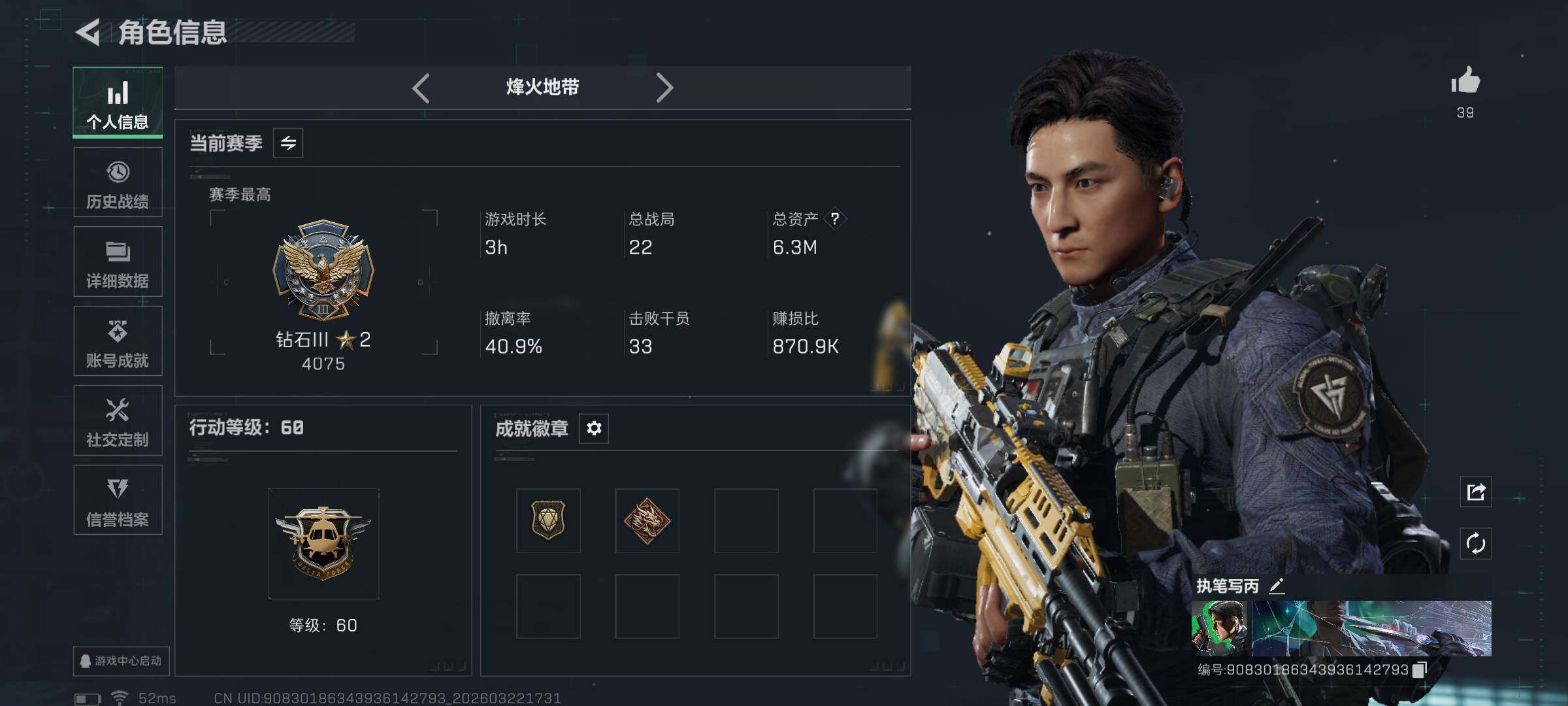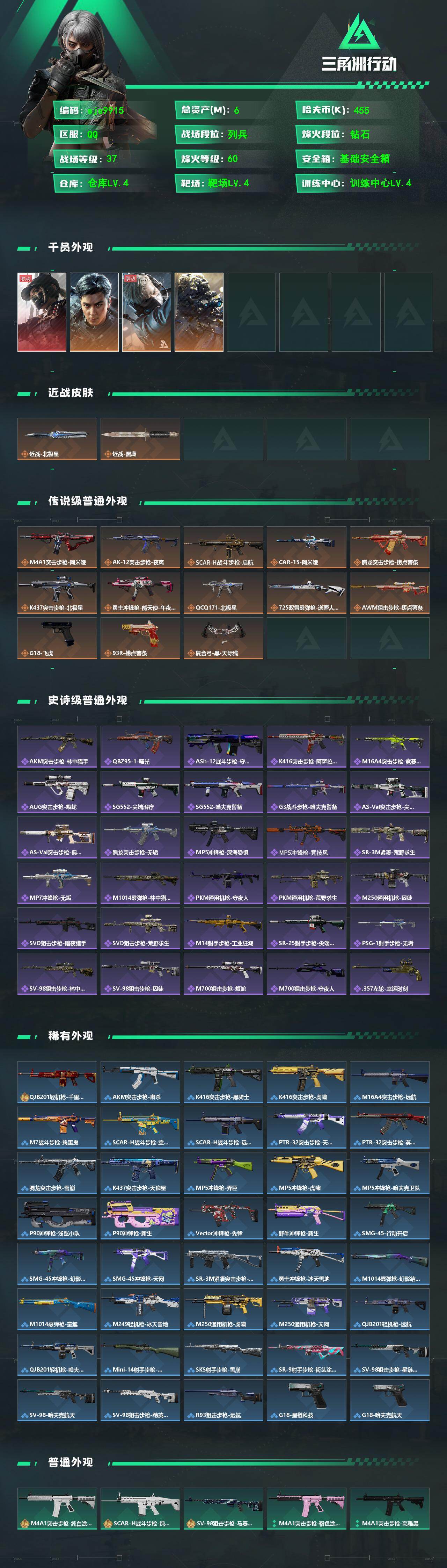 6m总资产-455k哈夫币-60烽火等级-钻石-37战场等级-列兵