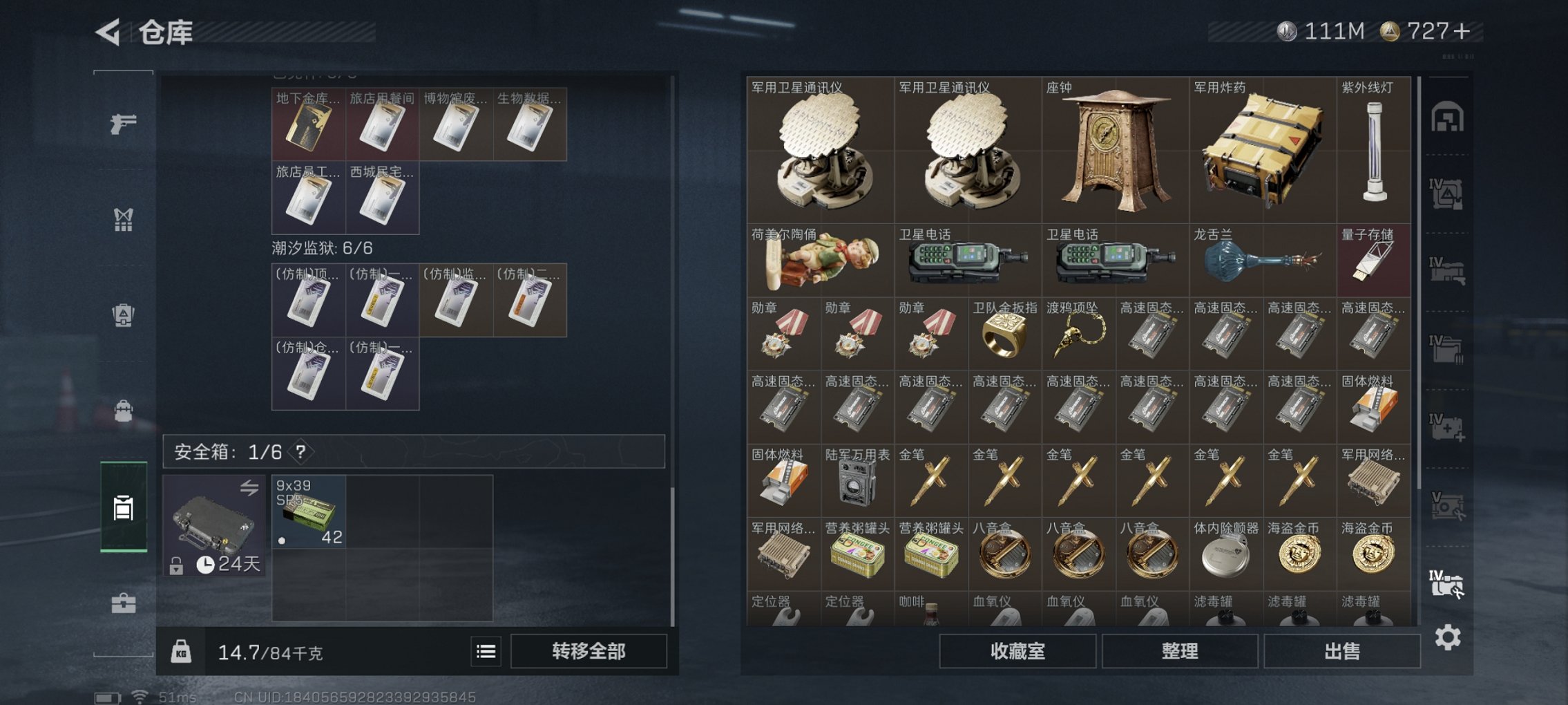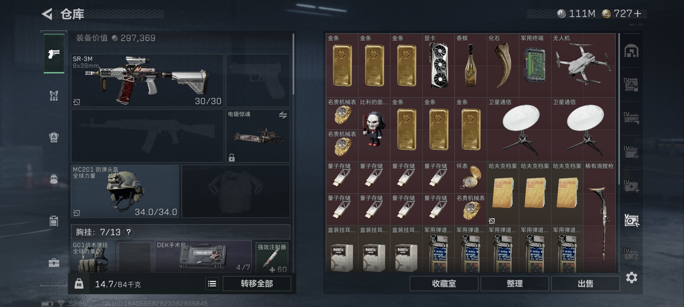 总资产284M【电锯惊魂 S7赛季高级安全箱 10颗AW子弹】哈夫币111,2