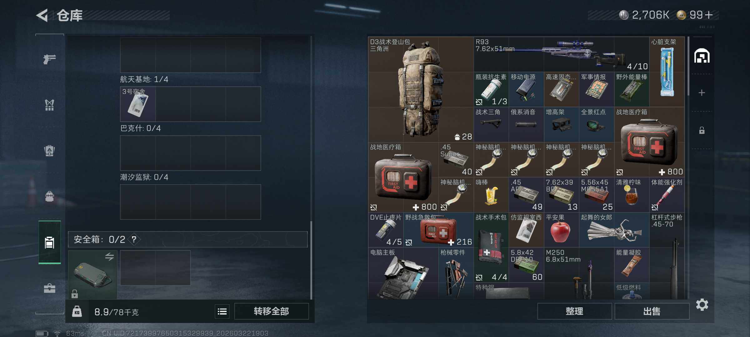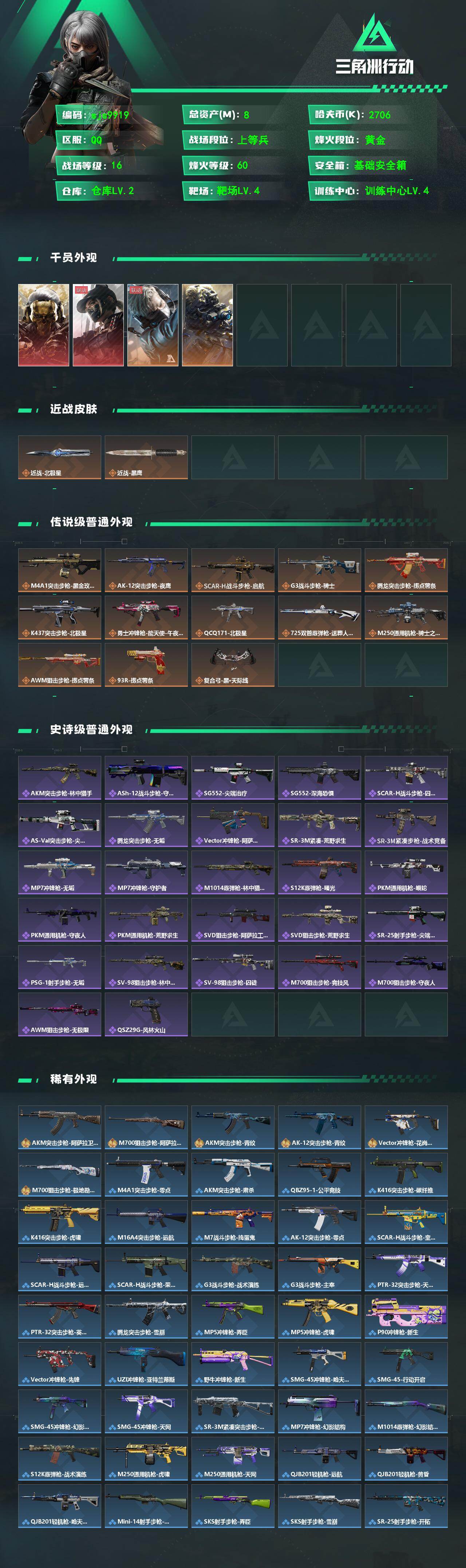 8m总资产-2706k哈夫币-60烽火等级-黄金-16战场等级-上等兵