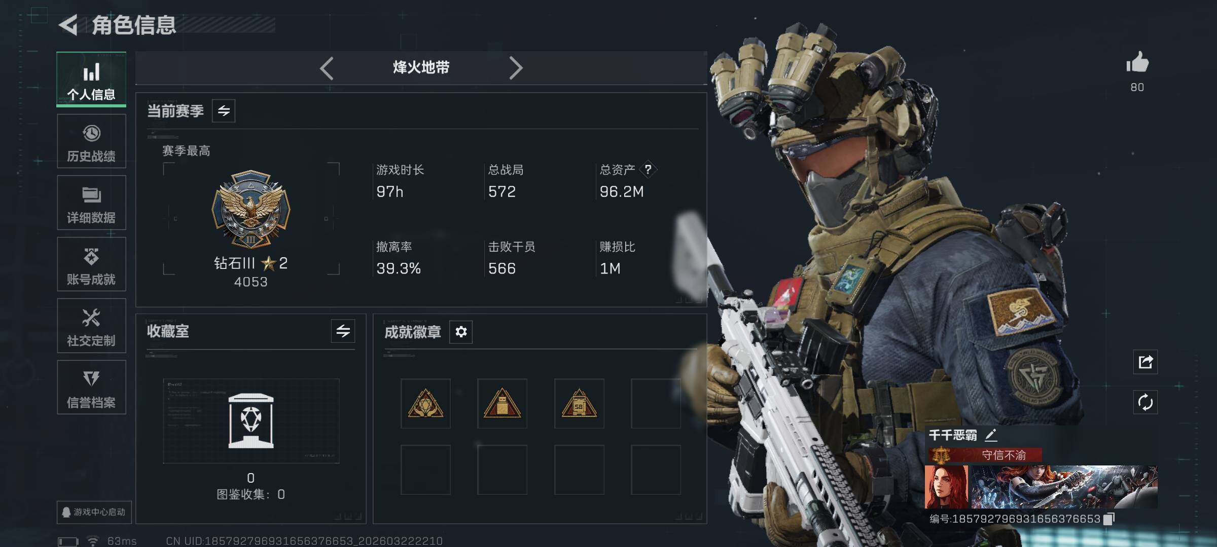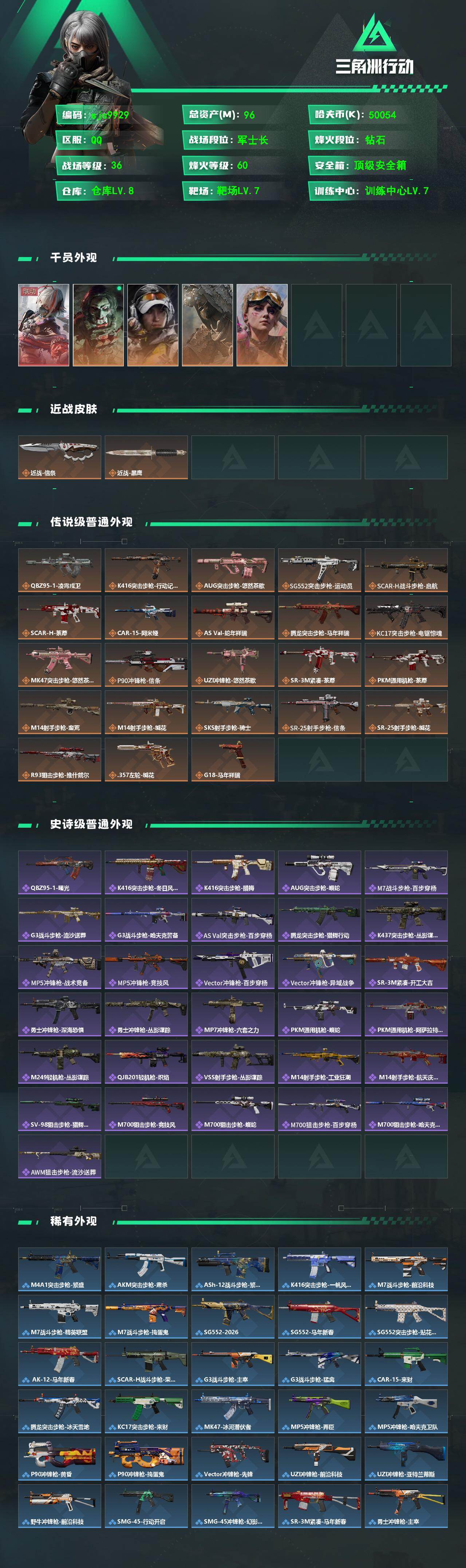 96m总资产-50054k哈夫币-60烽火等级-钻石-36战场等级-军士长