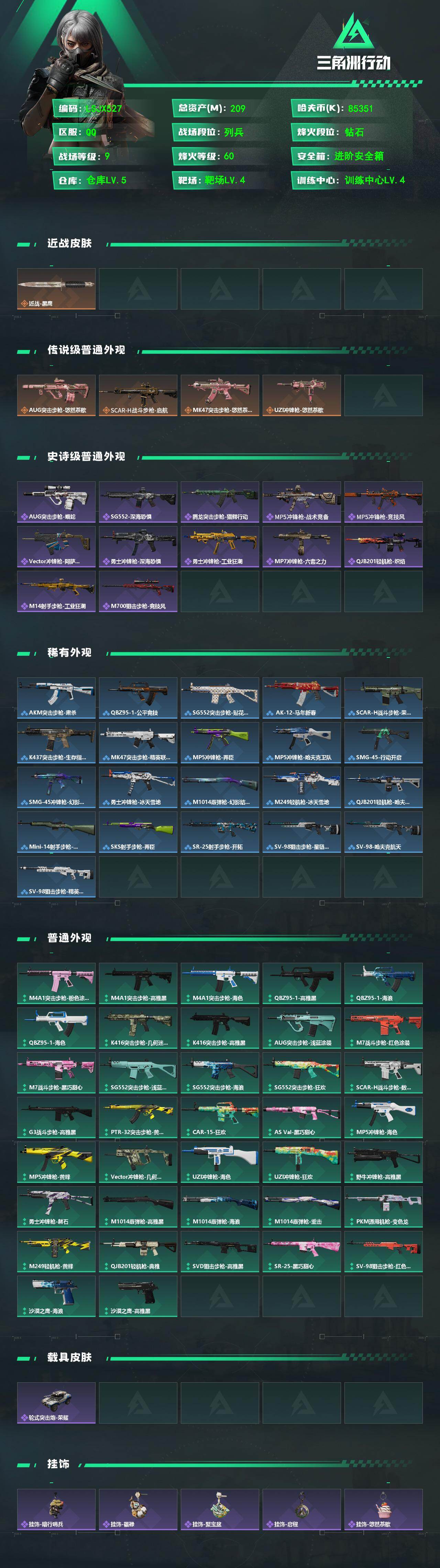 【特价出售/店主推荐】209m总资产-85351k哈夫币-60烽火等级-钻石-