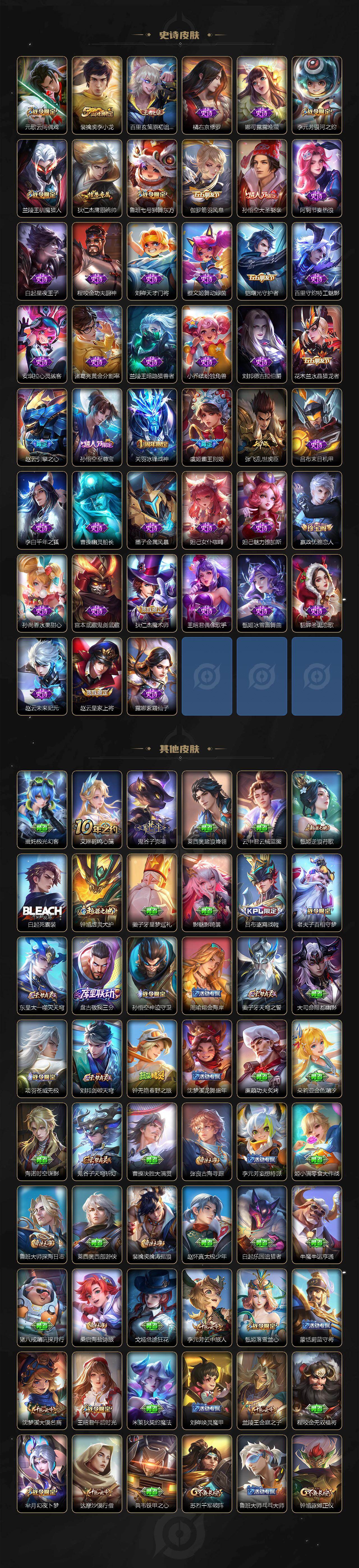 安卓Q-V6-最强王者段位-127英雄-272皮肤-1典藏皮肤-26传说-69史诗
