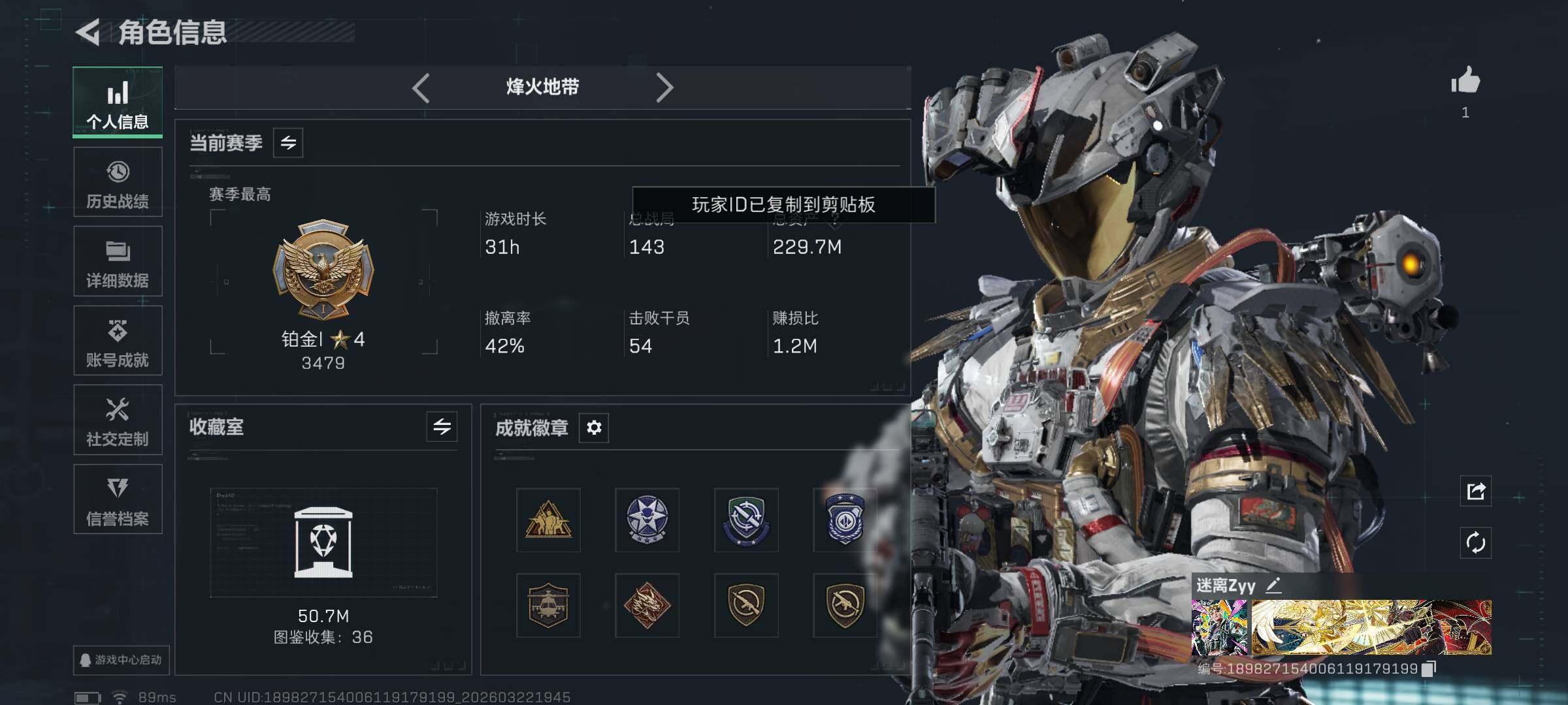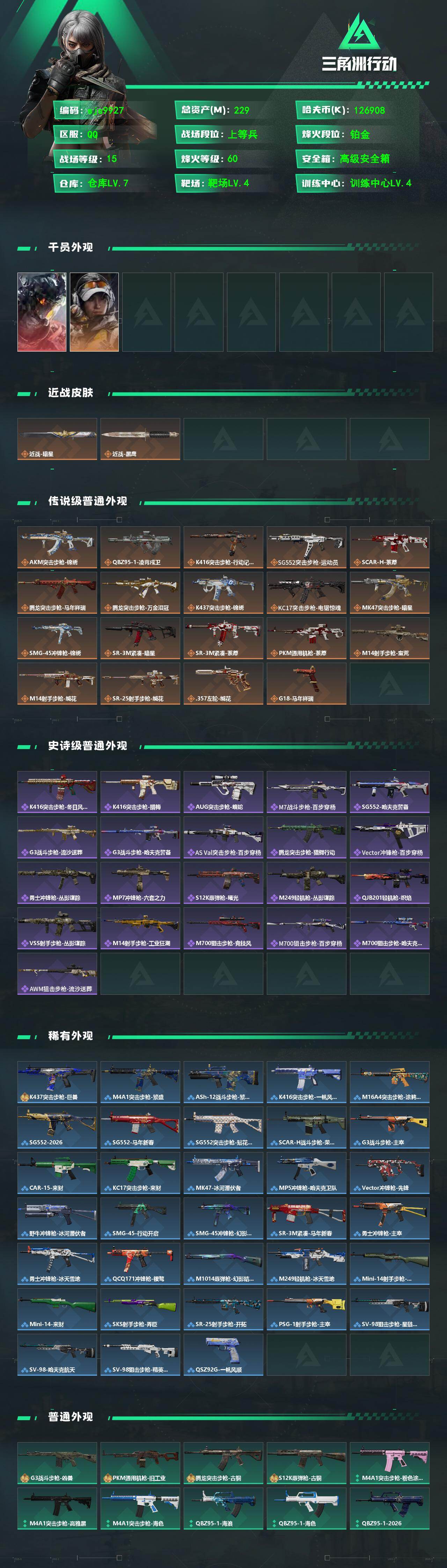 229m总资产-126908k哈夫币-60烽火等级-铂金-15战场等级-上等兵