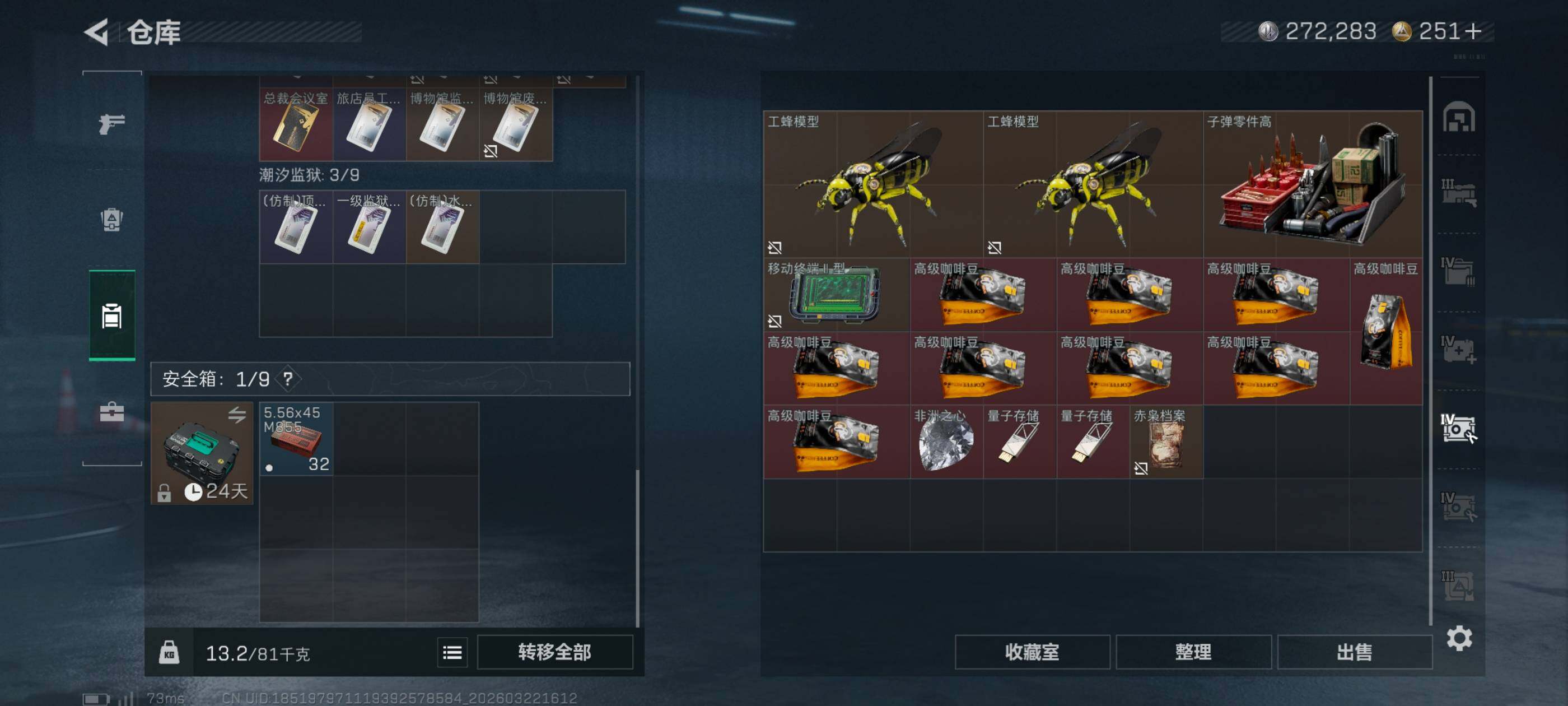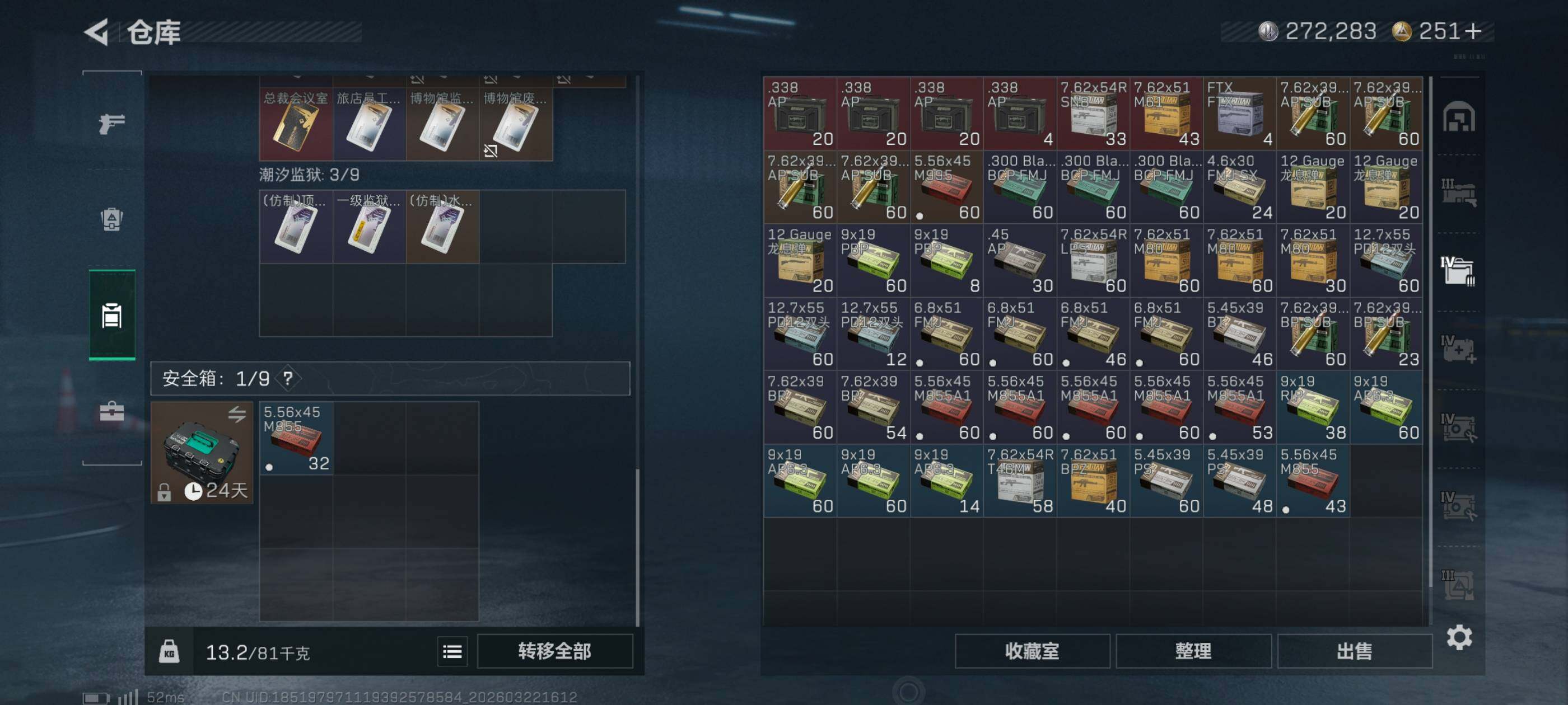 {特价出售}等级:60总资产:130.3M 纯币272283 红皮:黑天际线 刀皮 暗星 砖皮:优品 b k4 特勤处:仓库8,训练6,靶场5