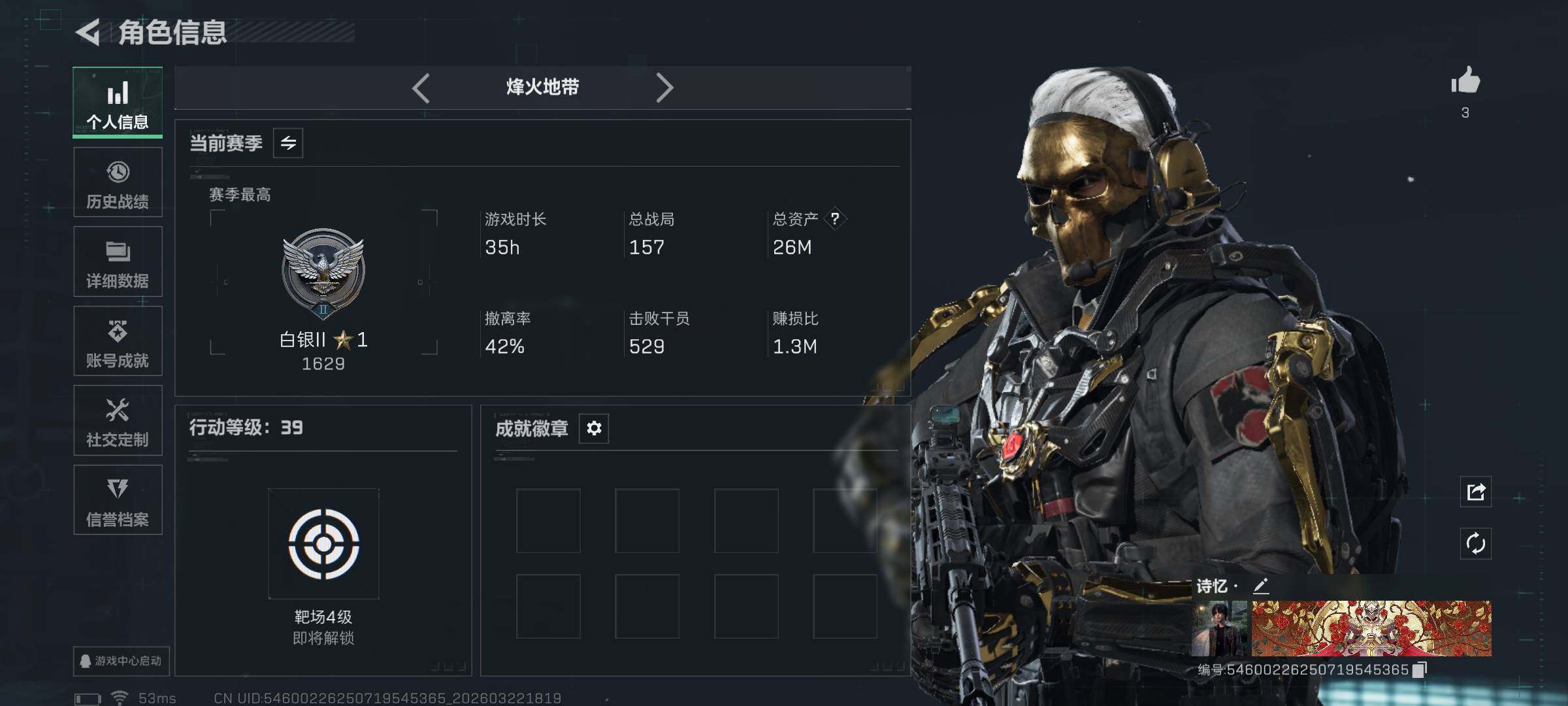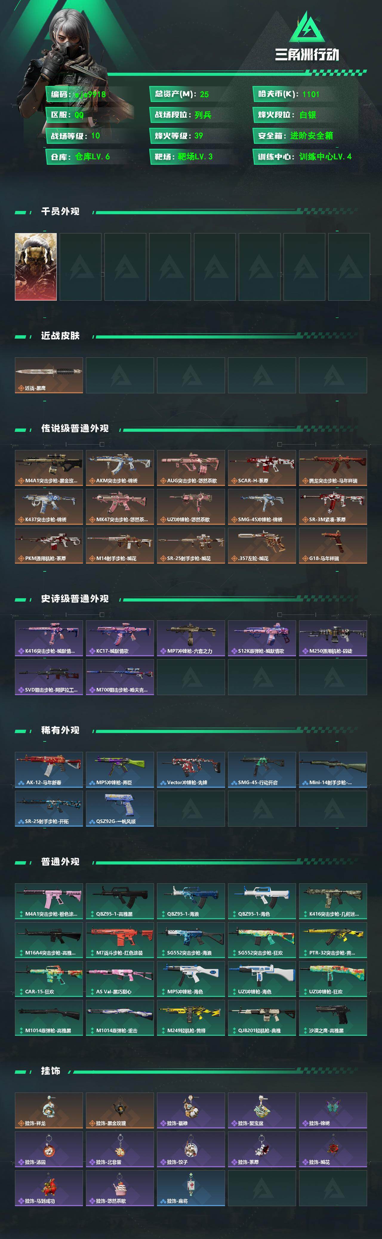 25m总资产-1101k哈夫币-39烽火等级-白银-10战场等级-列兵