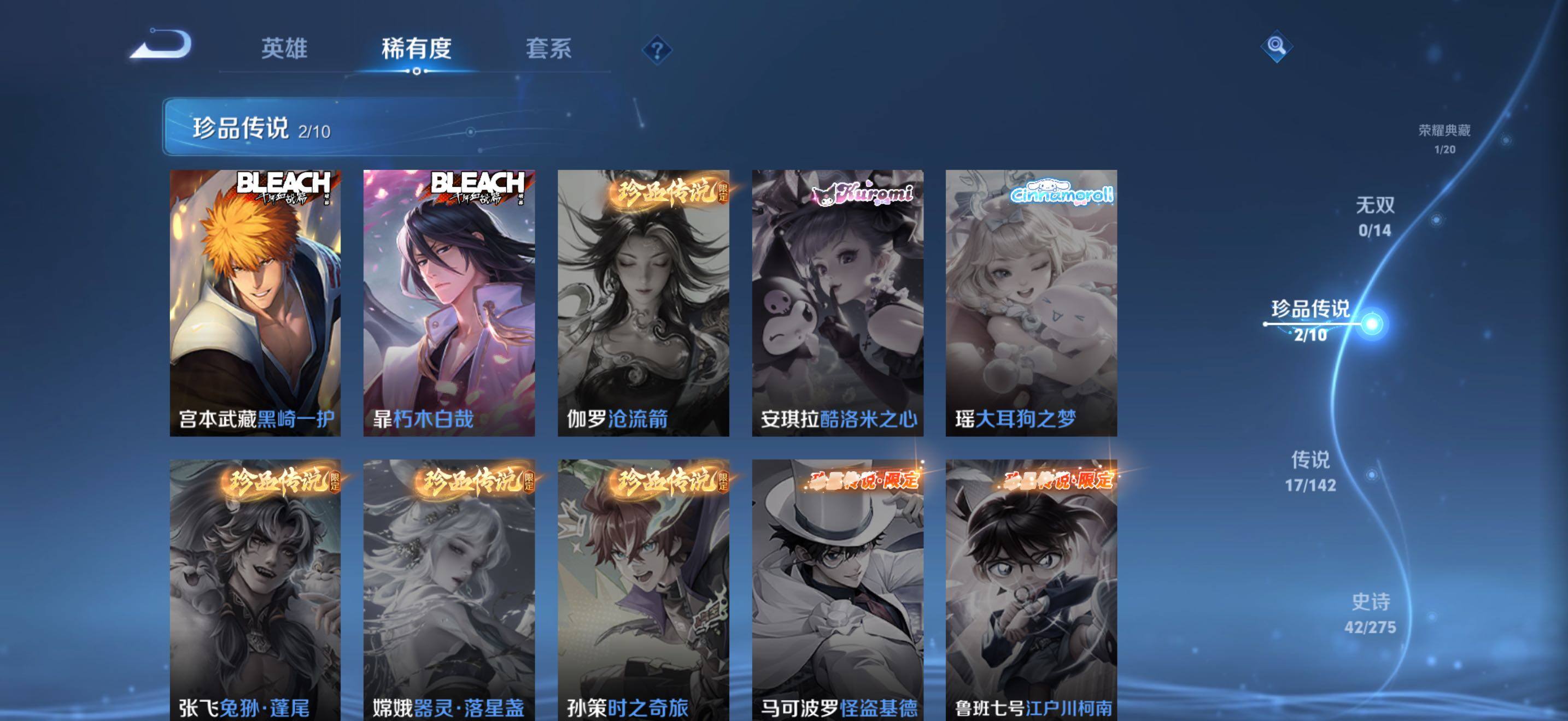 贵族8/皮肤157/典藏1/传说17/史诗41/英雄124/