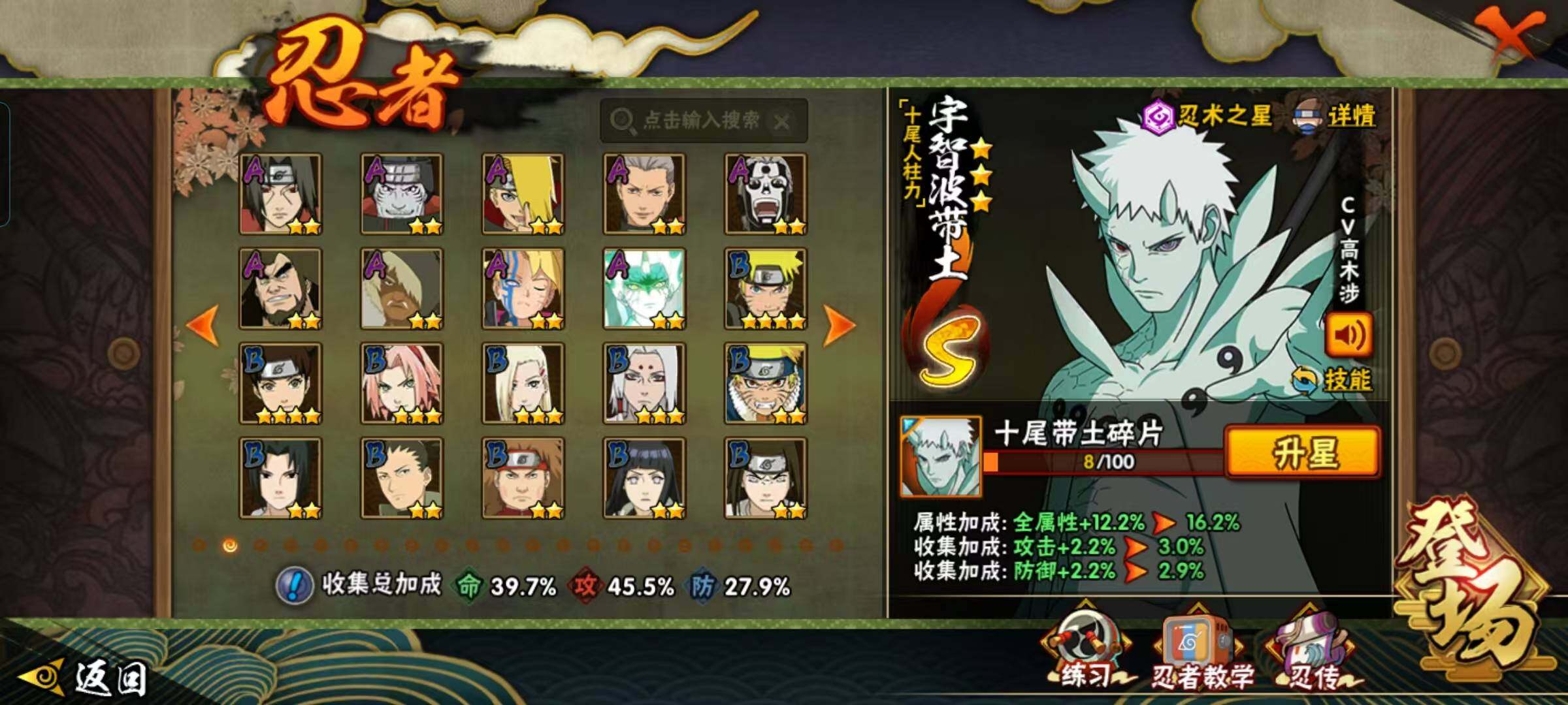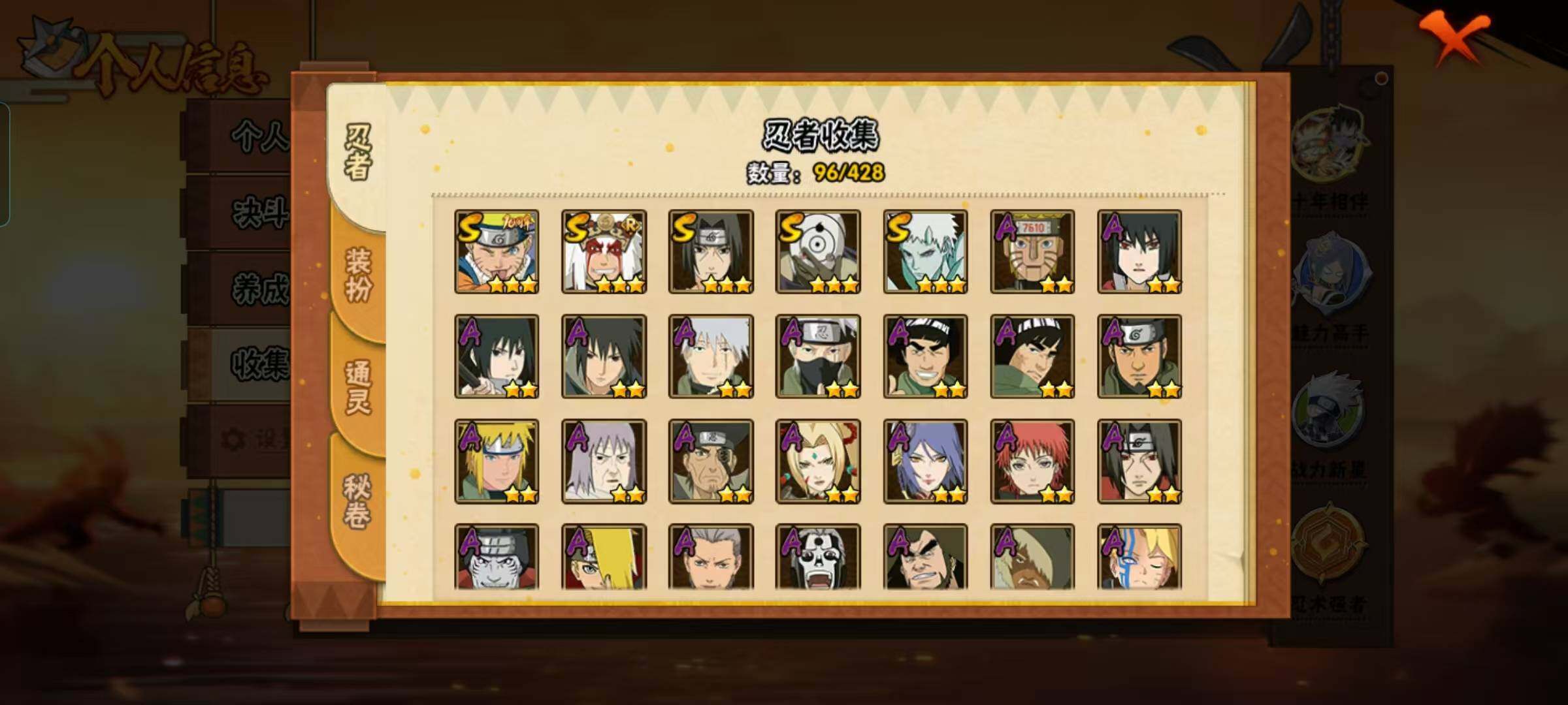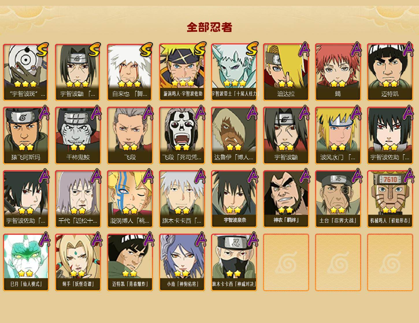 V4/战力460W/S忍5/A忍24/通灵兽14/3星宇智波