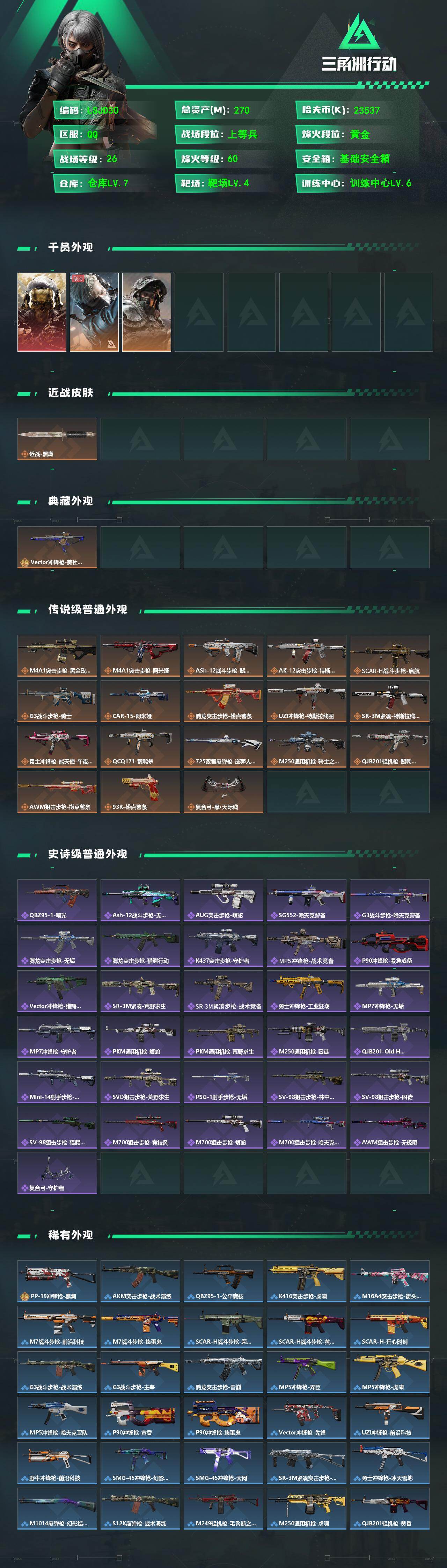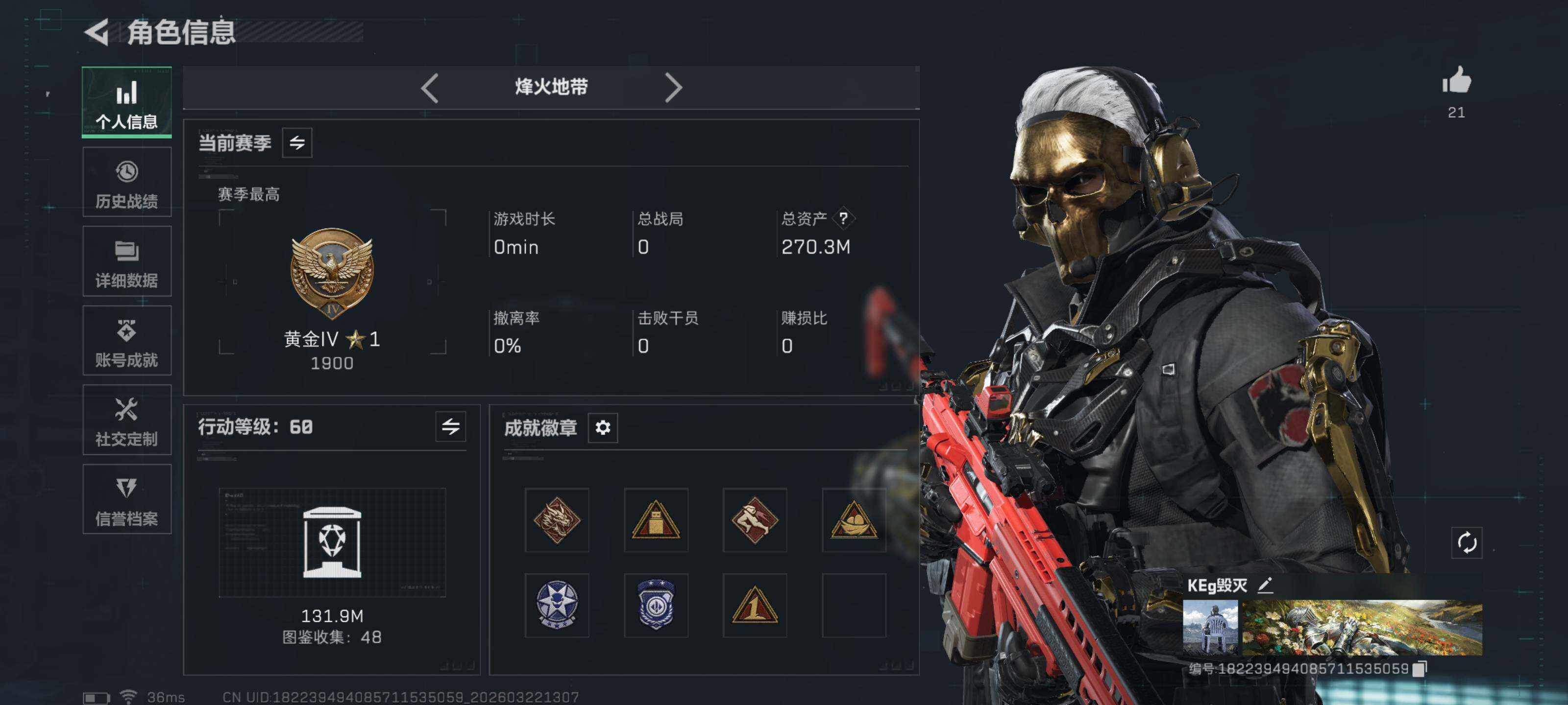 270m总资产-23537k哈夫币-60烽火等级-黄金-26战场等级-上等兵