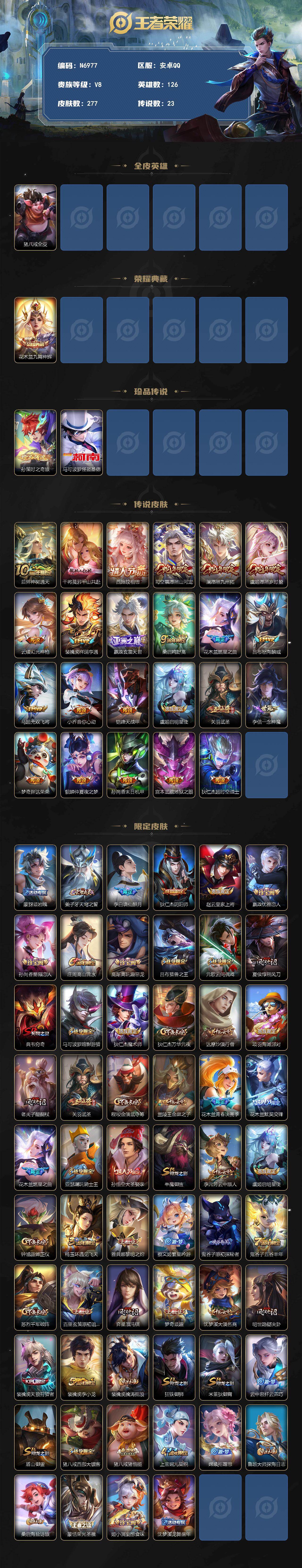 V8-最强王者段位-126英雄-277皮肤-1典藏皮肤-2珍品传说