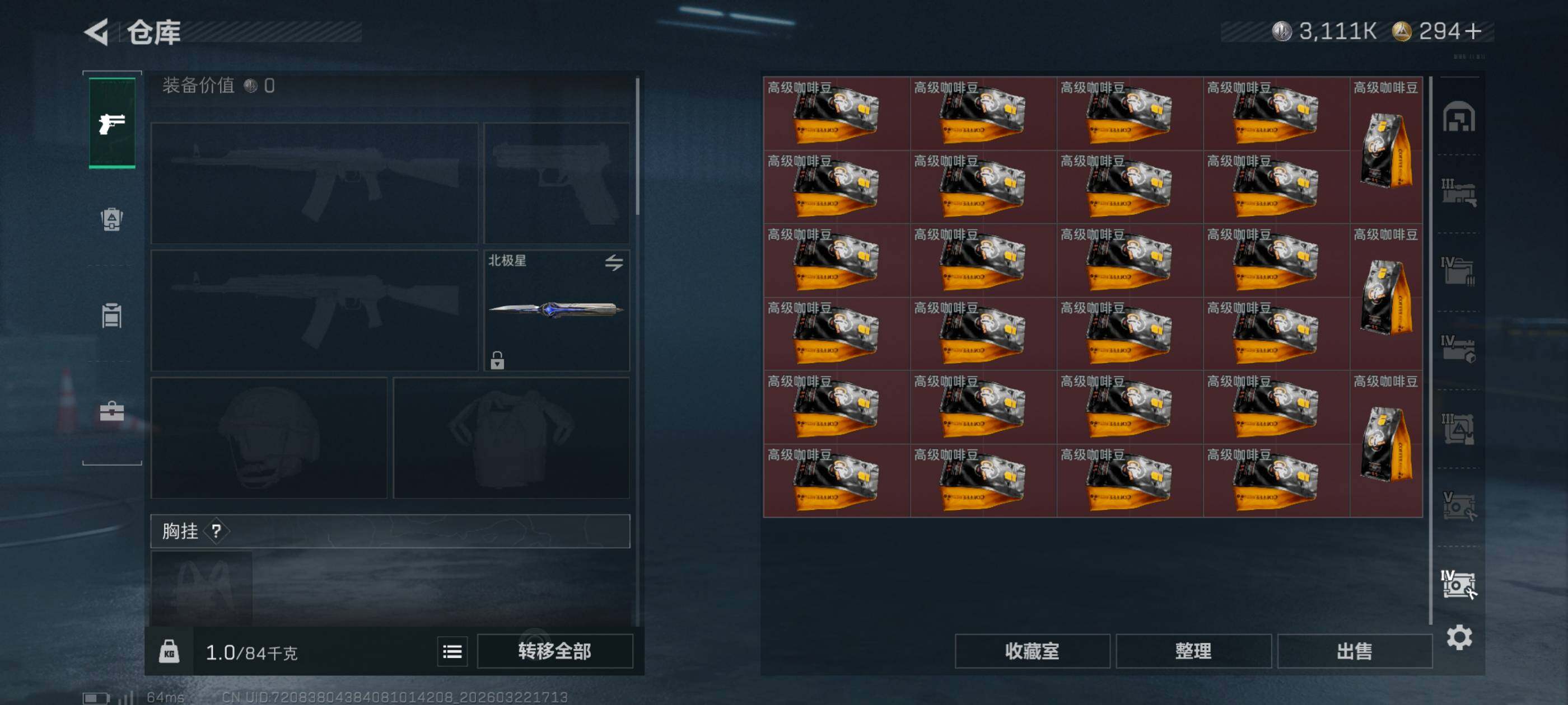 {特价出售}等级60 总资产326.5m 纯币3111k s8赛季 3*3 人物皮 天际线 刀皮 北极星特勤仓库9级 体力6级 负重6级