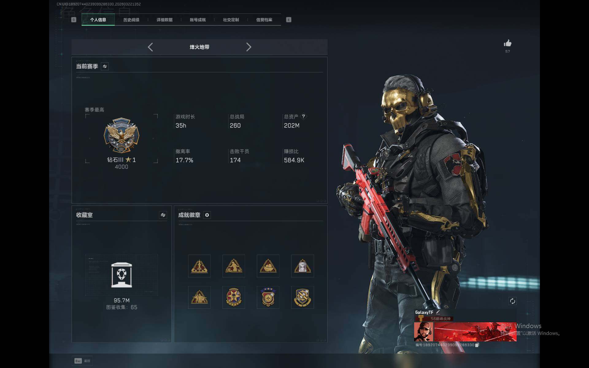 202m总资产-66k哈夫币-60烽火等级-钻石-47战场等级-军士长