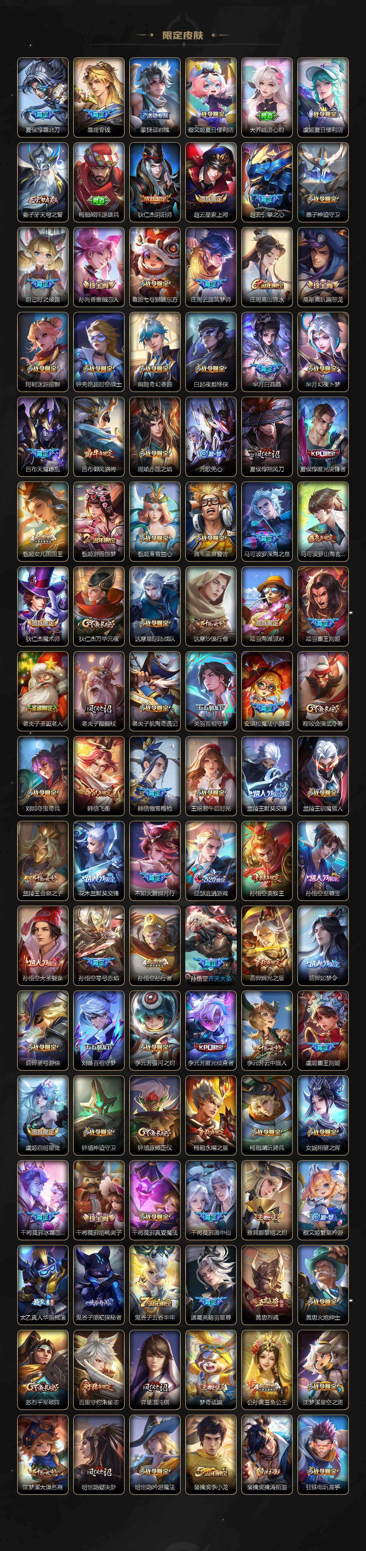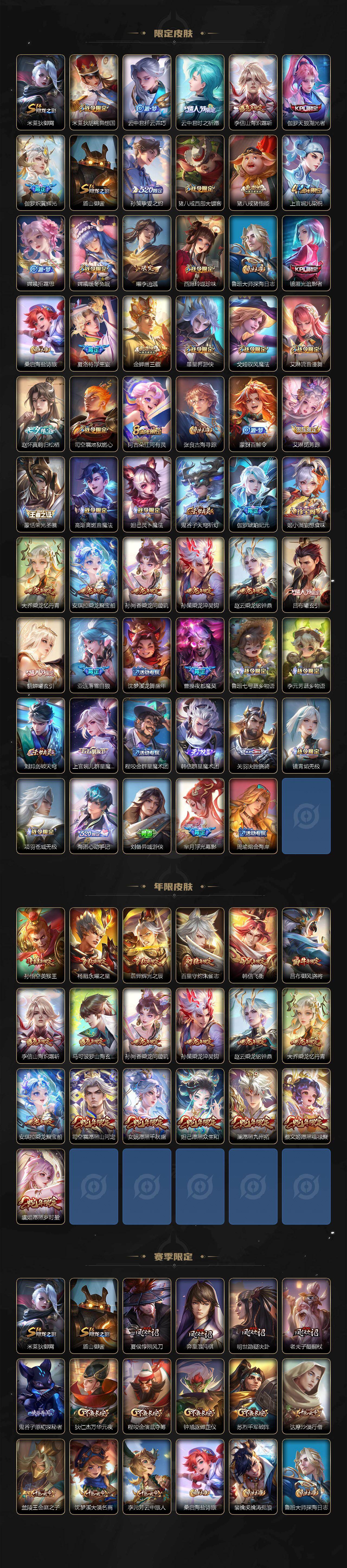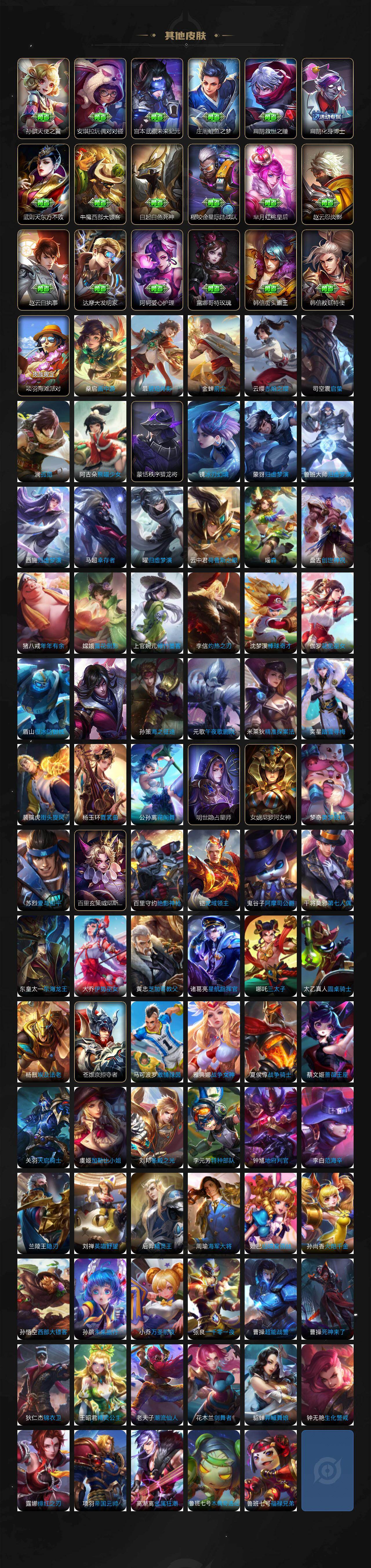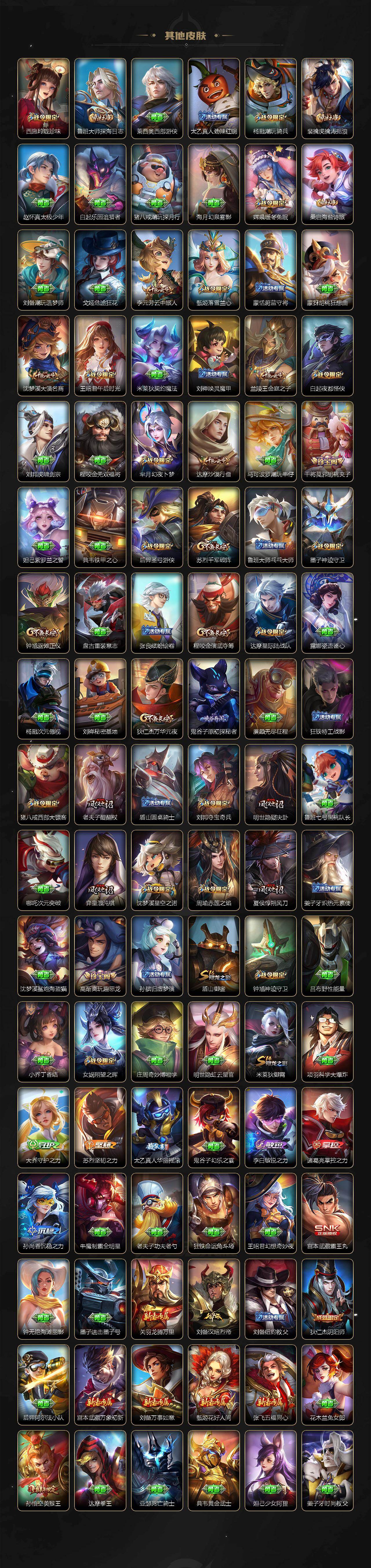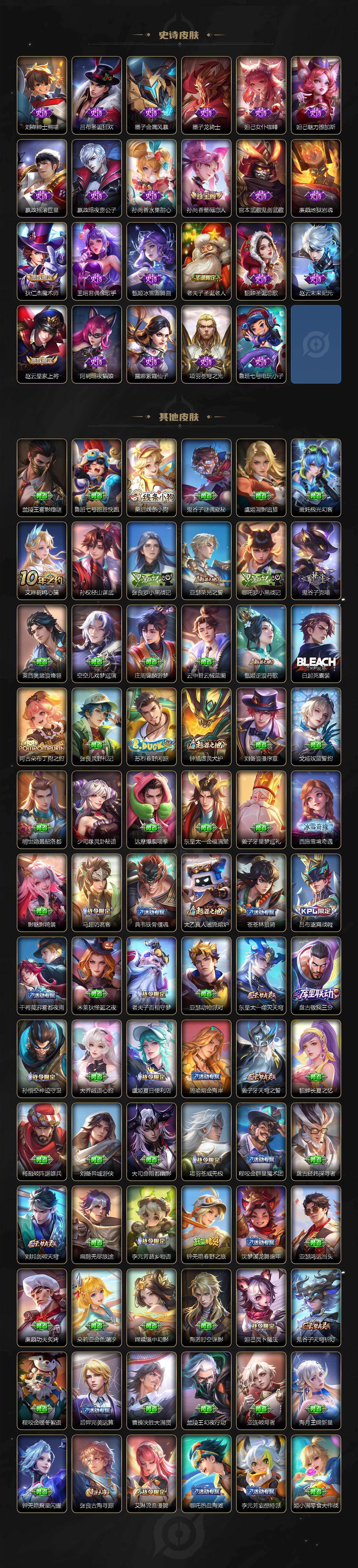 【英雄全皮】:刘邦全皮,孙权全皮,刘备全皮,鬼谷子全皮,黄忠全皮,猪八戒全皮,敖隐全皮,阿古朵全皮,夏洛特全皮,司空震全皮,金蝉全皮,赵怀真全皮,戈娅全皮,空空儿全皮,海诺全皮