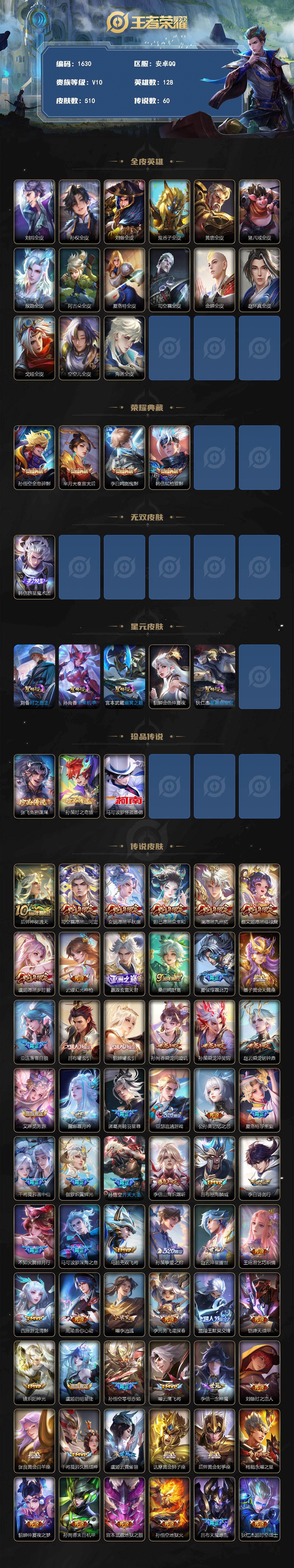 V10-最强王者段位-128英雄-510皮肤-4典藏皮肤-1无双-3珍品