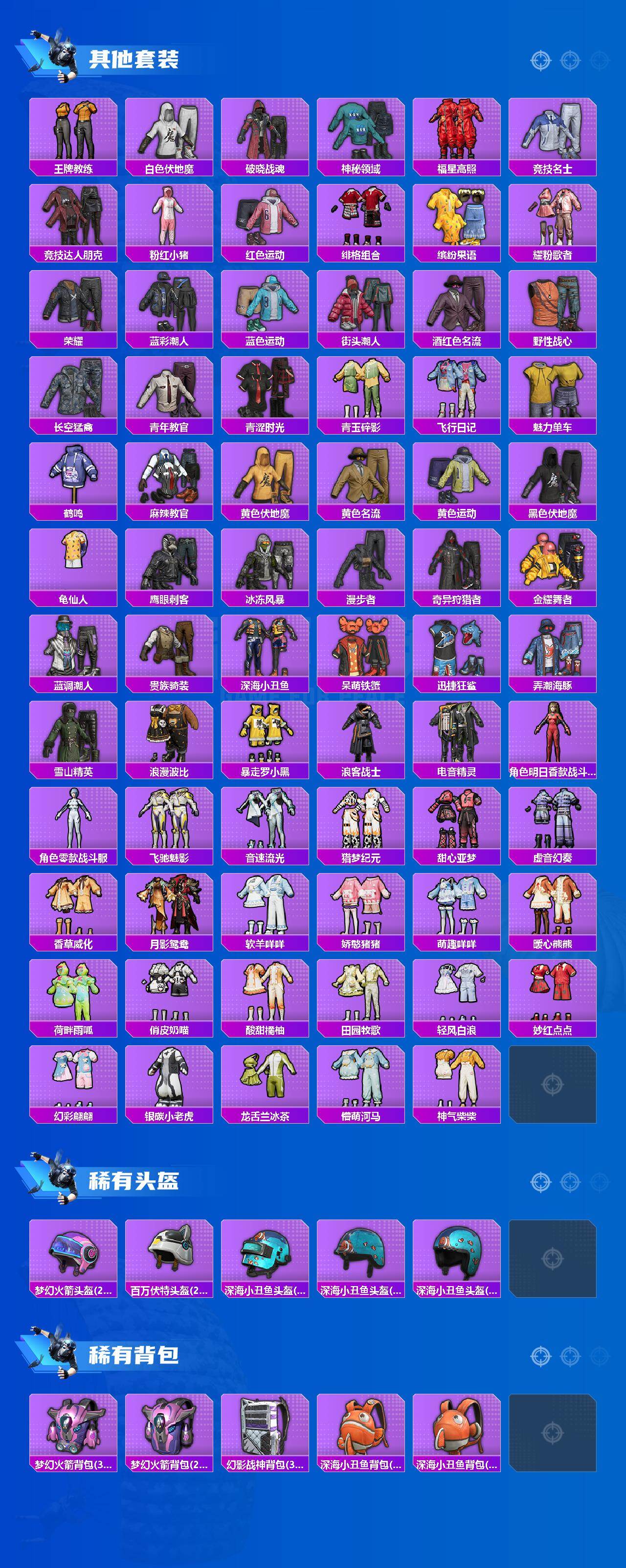 【热门品类】:粉装-梦幻火箭,粉装-音爆索尼克,套装-浪漫天命,套装-都市猎人,套装-深海小丑鱼,套装-小丑鱼,套装-奇异狩猎者,套装-暗夜行者,套装-浪客战士,套装-龟仙人,套装-暗影哥特,套装-浪漫波比,套装-粉红小猪