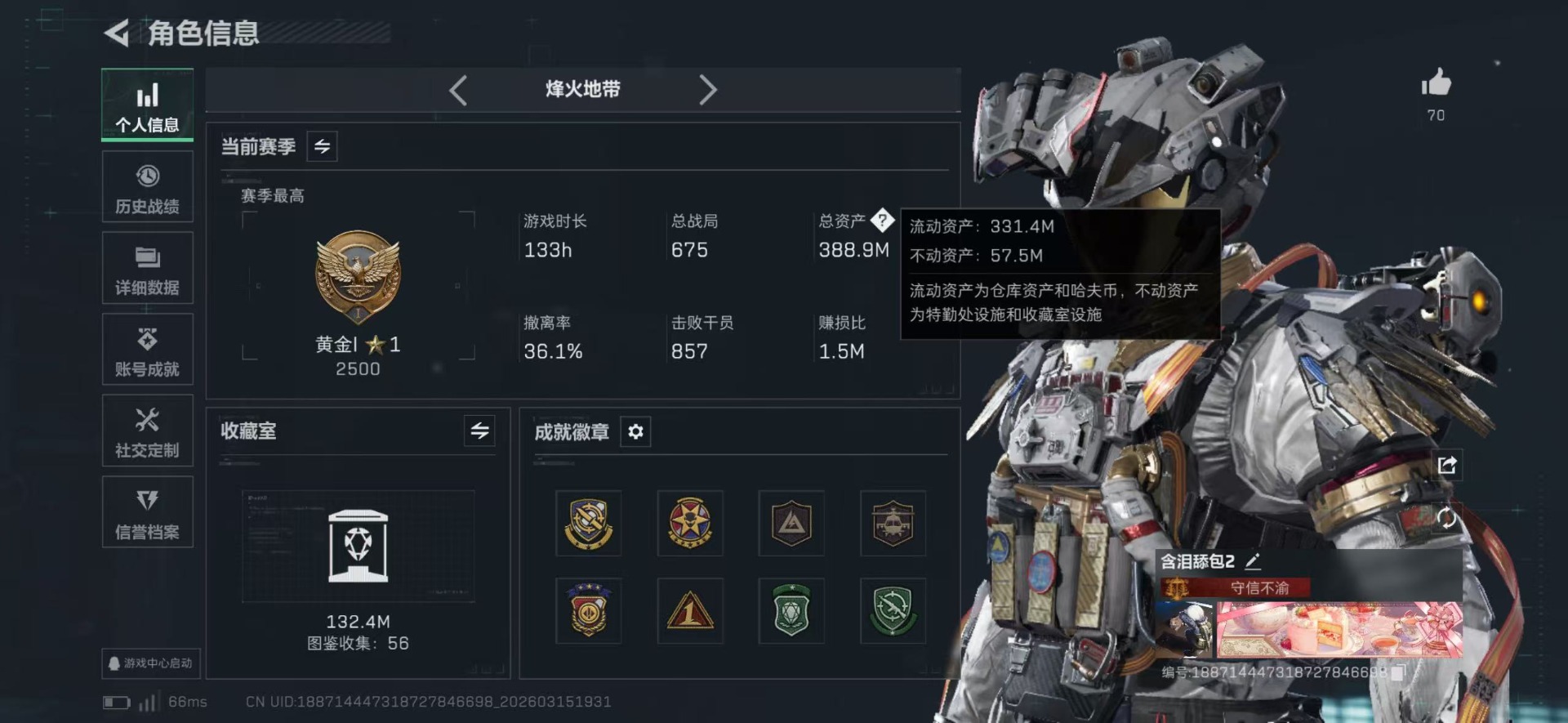 总资产:388.9M 2干员外观 2近战传说 22传说枪械