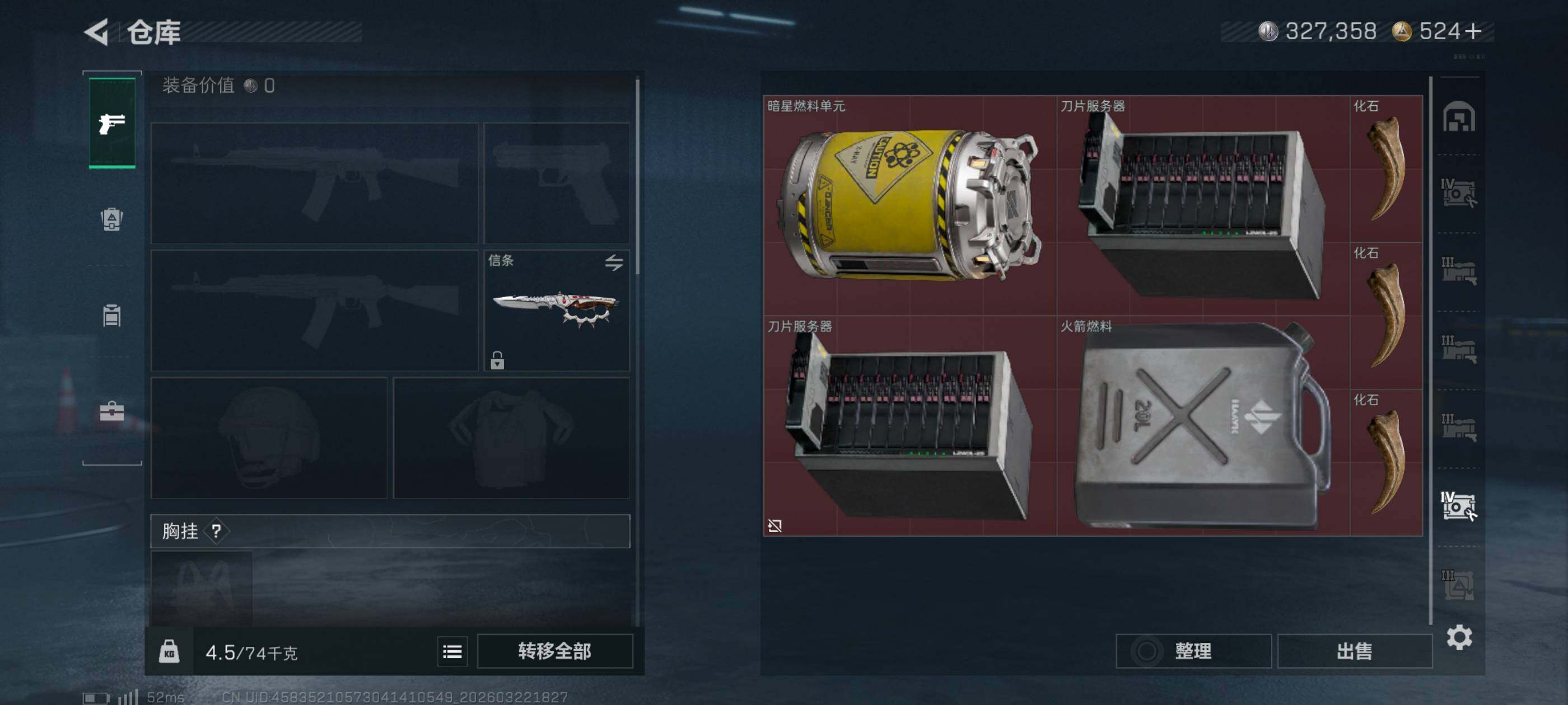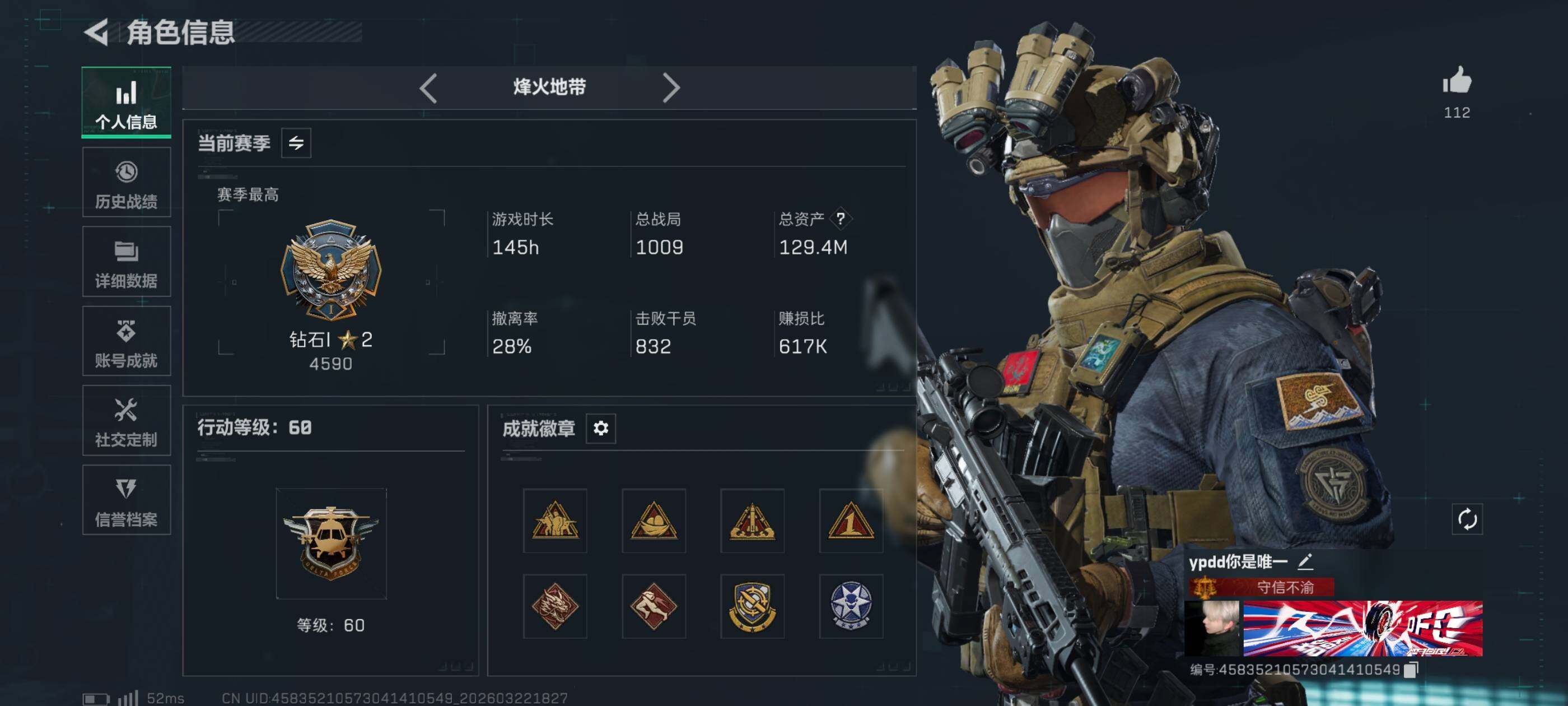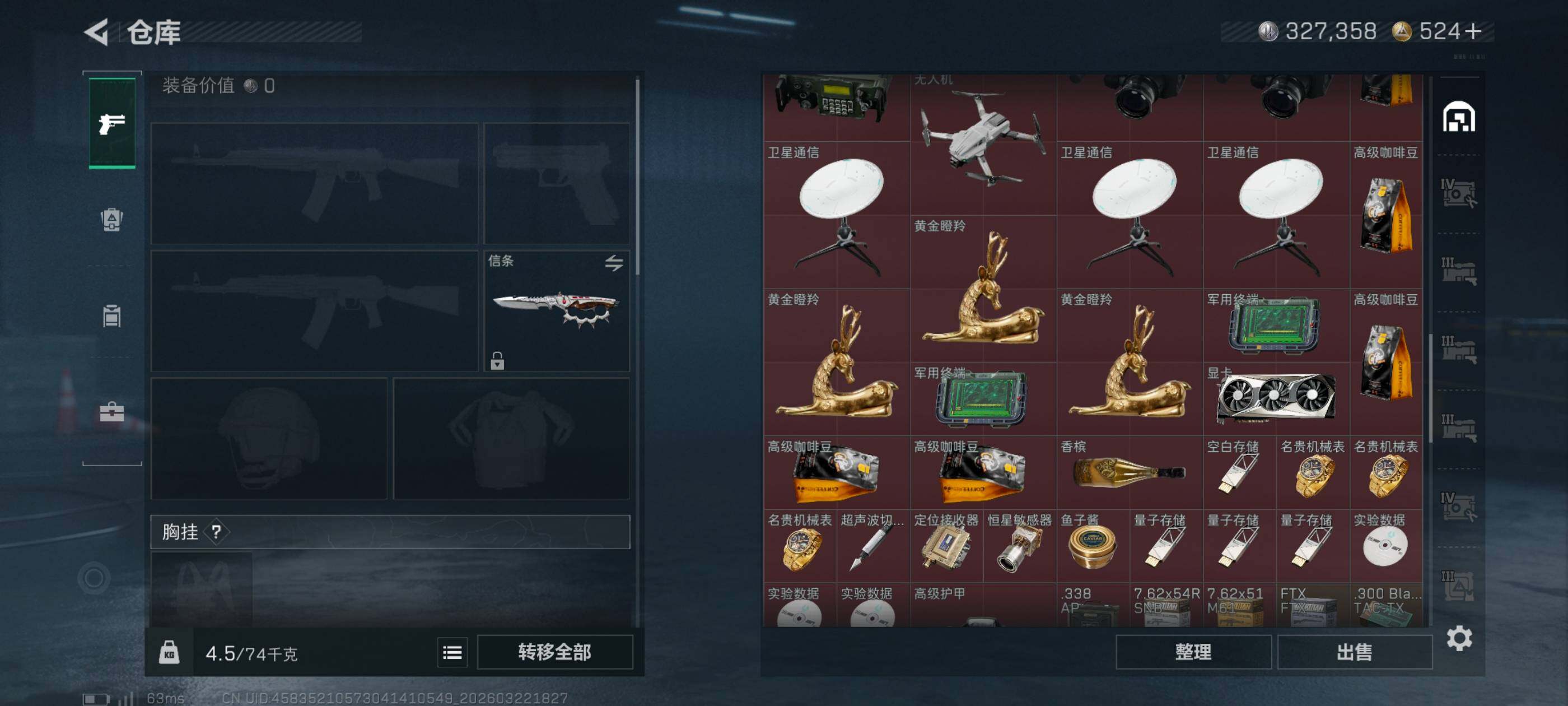 等级:60总资产:132.2M 纯币327358 刀皮 信条 特勤处:仓库7,训练2,靶场2
