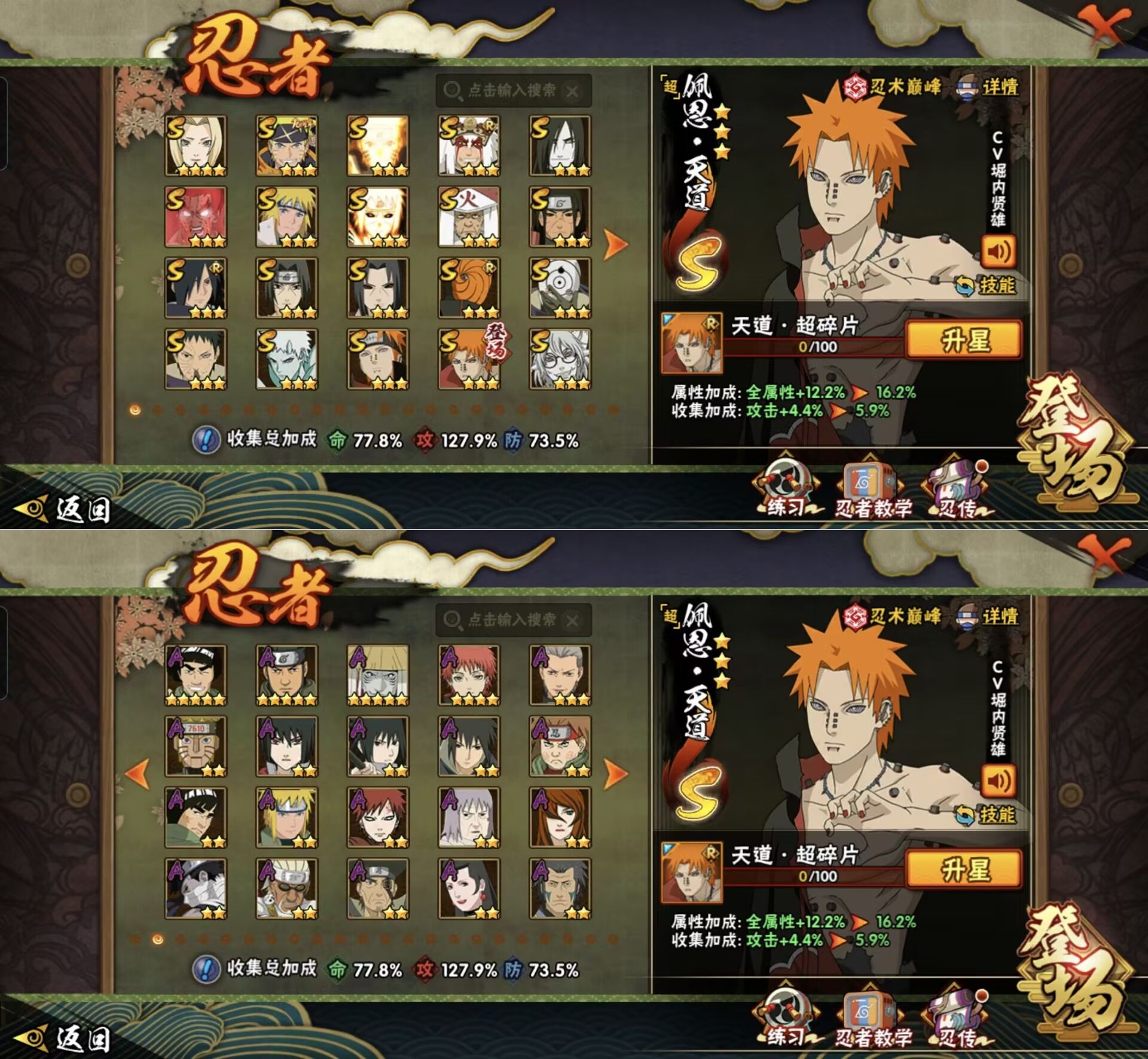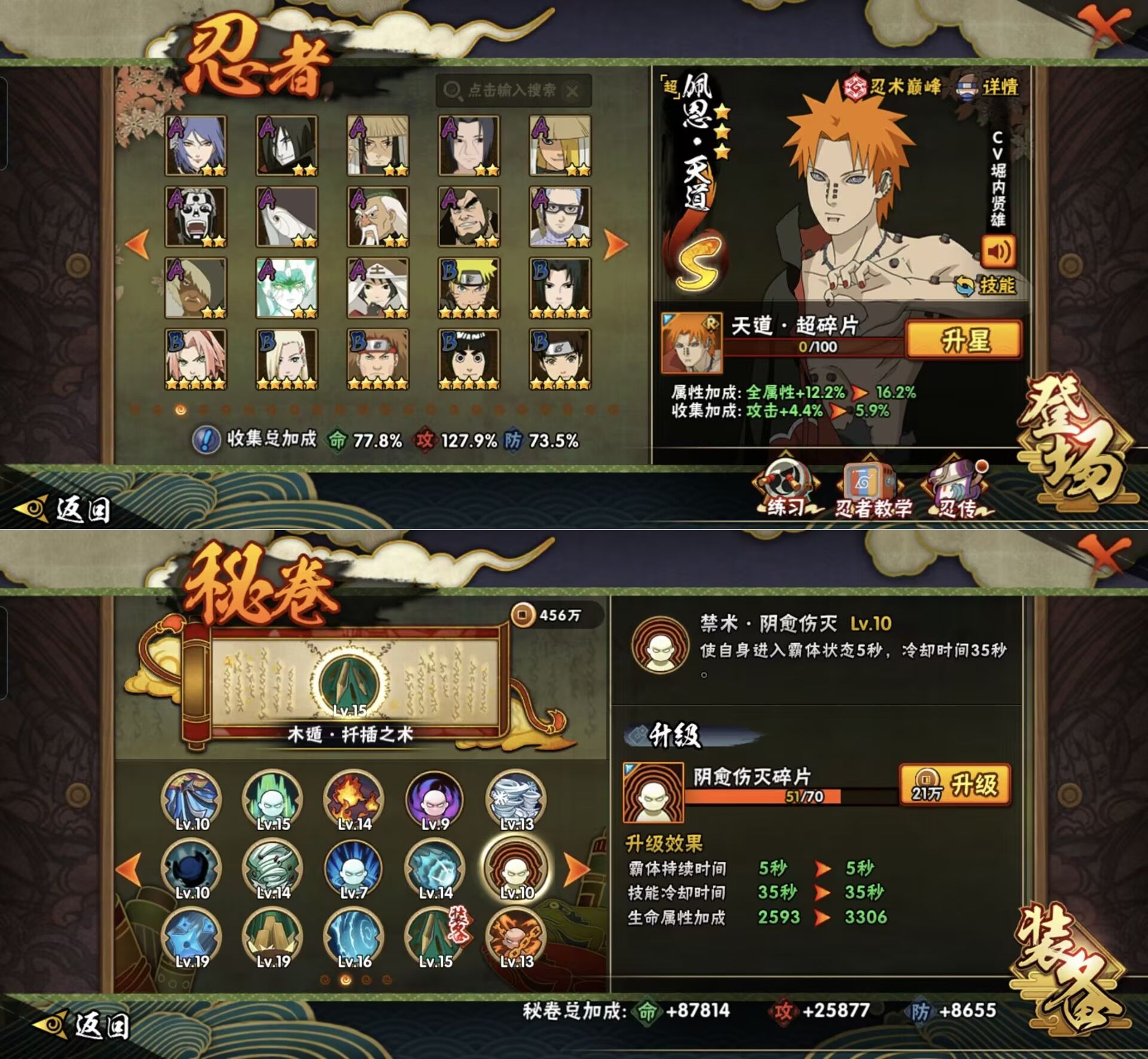 MHY4066【安卓Q 2320区 20S 33A VIP11 920w战力 天道超】【区服】2320【等级】148【S级数量】20【A级数量】33【B级数量】64【C级数量】57【S级】宇智波带土「忍界大战」 宇智波斑「木叶创立」 波风水门「九喇嘛连结」 宇智波斑「白面具」 药师兜「仙人模式」 佩恩·天道「超」 宇智波鼬「秽土转生」 漩涡鸣人「九喇嘛连结」 自来也「舞之豪杰」 漩涡鸣人·宇智波佐助 波风水门 猿飞日斩 大蛇丸 宇智波斑「五影会谈」 宇智波带土「十尾人柱力」 佩恩「天道」 纲手