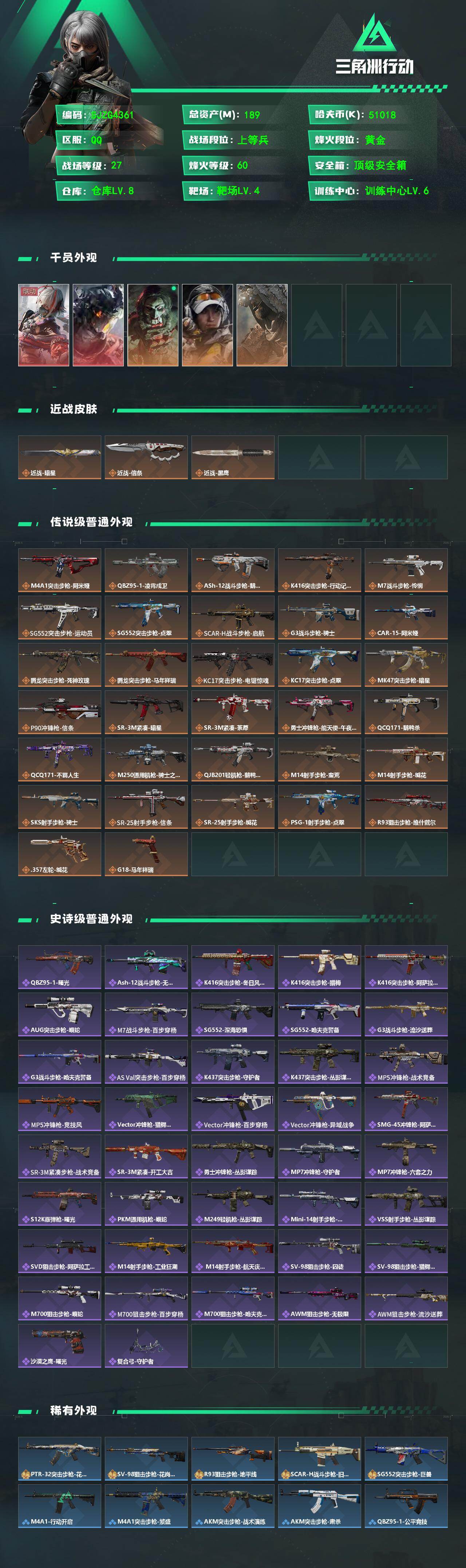 189m总资产-51018k哈夫币-60烽火等级-黄金-27战场等级-上等兵