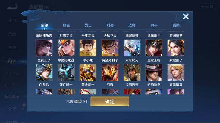 【限定皮肤】:白起狰,姜子牙天穹之誓,狄仁杰阴阳师,赵云皇家上将,嬴政白昼王子,芈月重明,吕布猎兽之王,周瑜赤莲之焰,夏侯惇朔风刀,甄姬游园惊梦,曹操烛龙,典韦穷奇,狄仁杰万华元夜,项羽海滩派对,老夫子醍醐杖,关羽冰